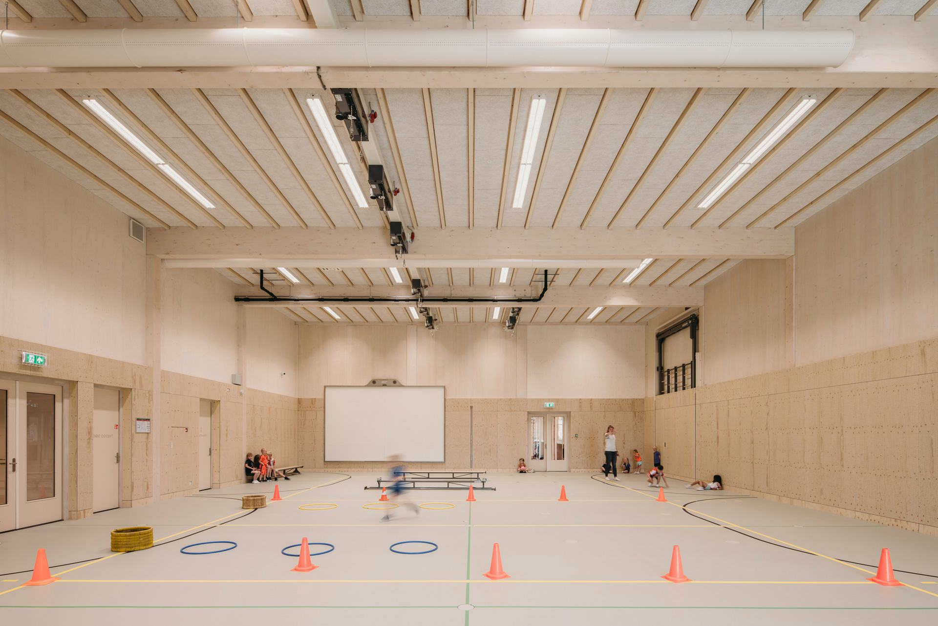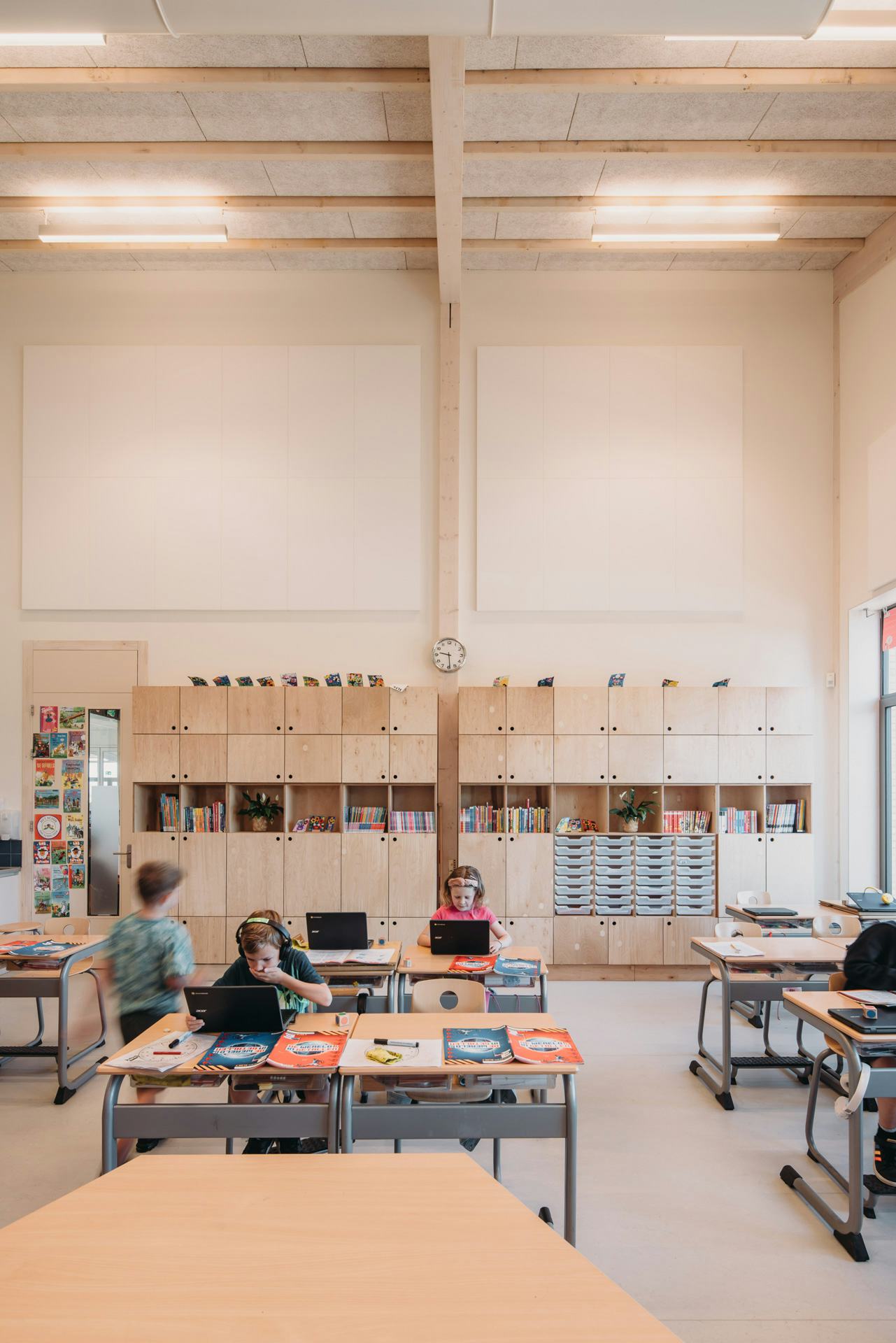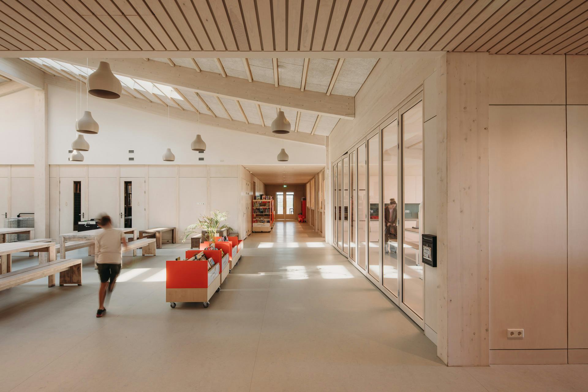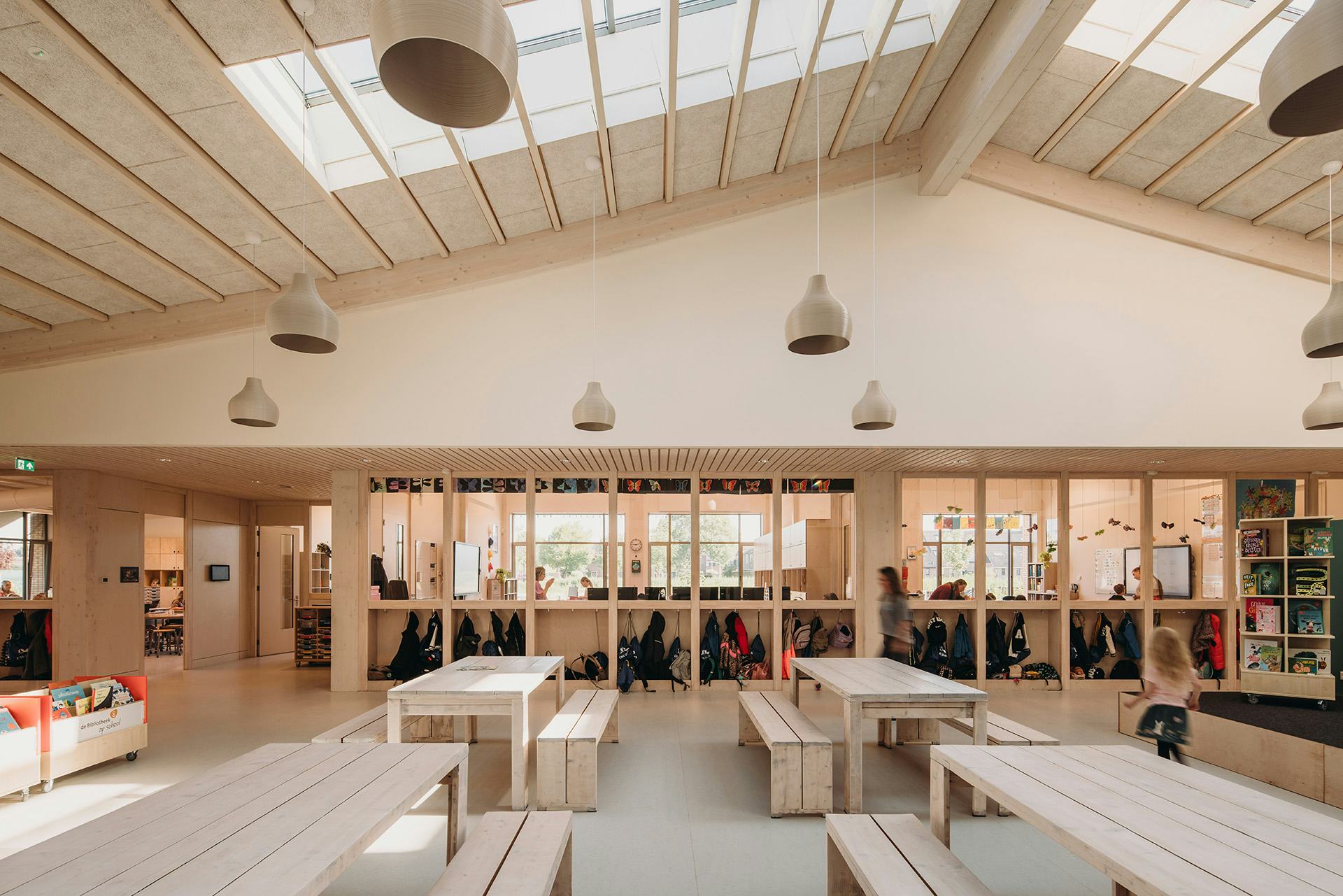 Alle lokalen grenzen aan een centrale ruimte die multifunctioneel gebruikt wordt voor onder meer lezen, werken en gezamenlijke activiteiten. Grote ramen zorgen voor licht en openheid. De gymzaal en een glazen schuifwand maken het mogelijk om het gebouw flexibel in te zetten voor dorpsactiviteiten. De school is gerealiseerd door de gemeente Bodegraven-Reeuwijk en KBC De Brug, in samenwerking met diverse advies- en bouwpartners.