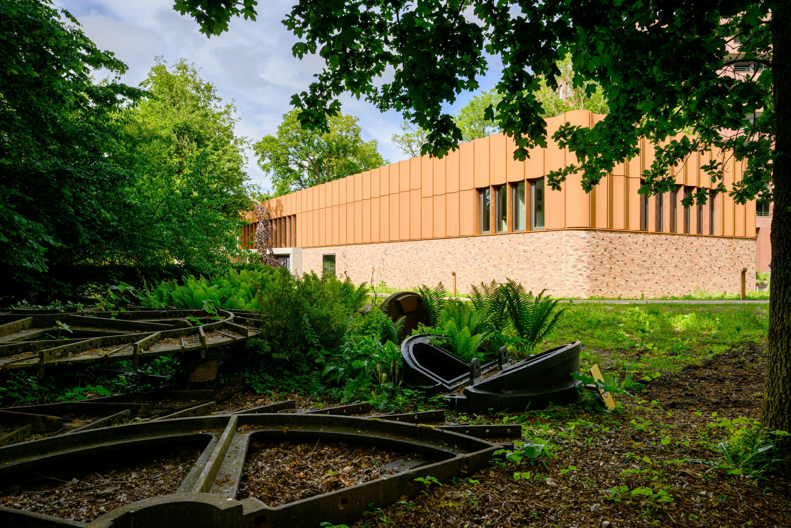 Het paviljoen is ontworpen met oog voor de historische context, met sobere materialen en een horizontale opbouw die contrasteert met de verticale structuur van het gemaal. Hoewel het gebouw al in gebruik is, staat de realisatie van een verbindingsgang tussen het paviljoen en het gemaal nog gepland voor een latere fase. Deze doorgang moet de fysieke en inhoudelijke verbinding tussen beide gebouwen verder versterken.
