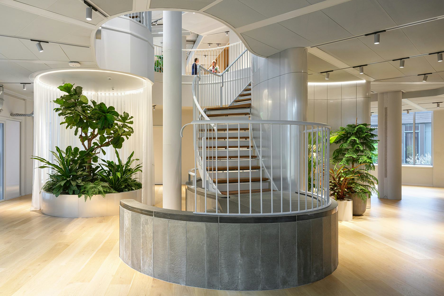 Het interieur is ontworpen met het oog op het welzijn van de gebruiker. Natuurlijk daglicht, goede akoestiek, uitzicht naar buiten en veel groen zorgen voor een gezonde werkomgeving. WELL Platinum-certificering onderstreept dit. Extra trappen stimuleren beweging, terwijl ruimtes voor yoga en meditatie mentale rust bieden. Kunst is tot slot een integraal onderdeel van het interieur: speciaal ontworpen wanden tonen wisselende en permanente werken die inspireren en verbinden.