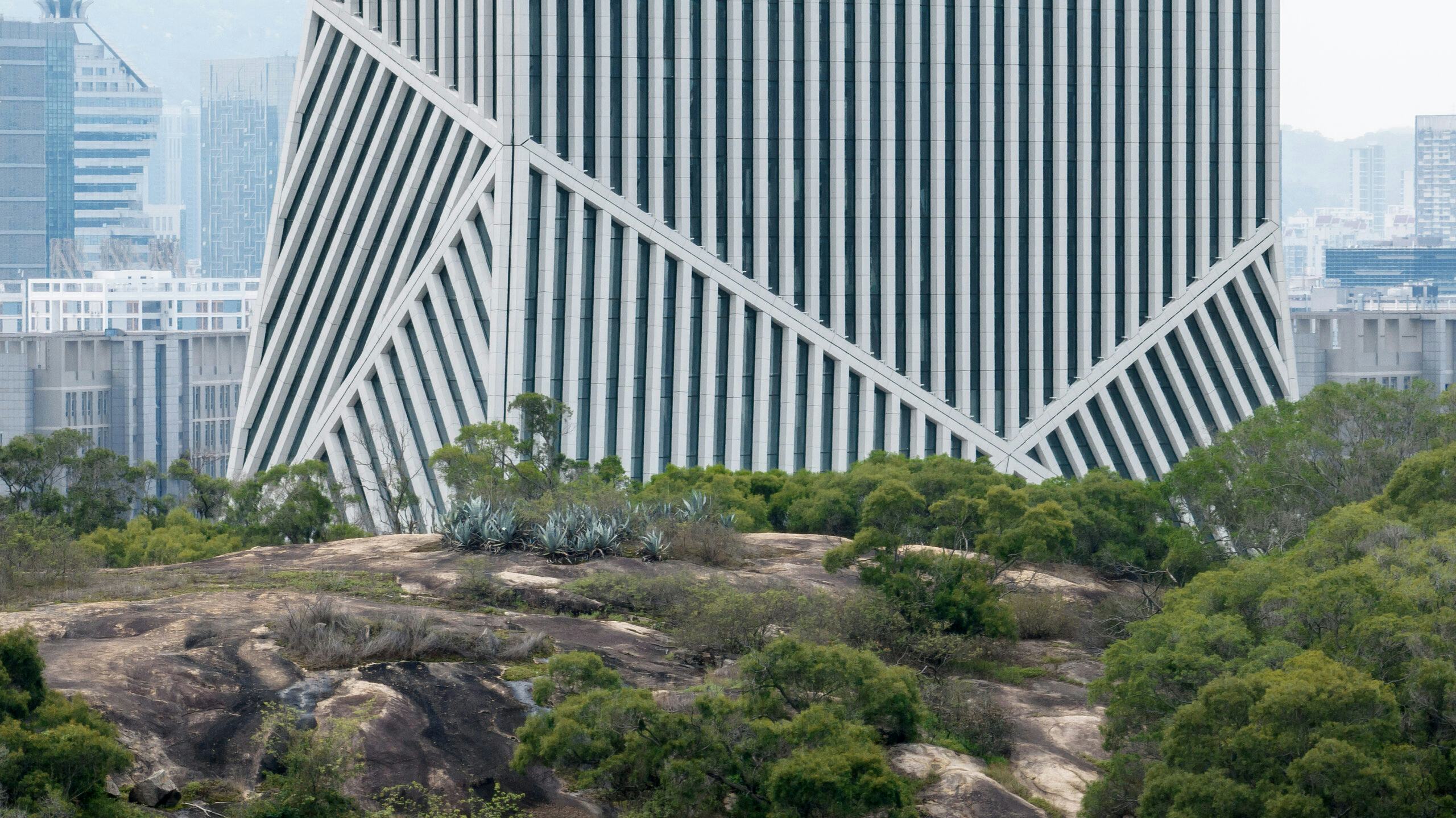 Het ontwerp combineert twee verschillende omgevingen: de stedelijke hoogbouw aan de ene kant en de beboste heuvels aan de andere kant. Het gebouw heeft een vloeiend, sculpturaal ontwerp dat de basis en de toren naadloos met elkaar verbindt, waardoor het traditionele kantoorgebouw opnieuw wordt geïnterpreteerd.
