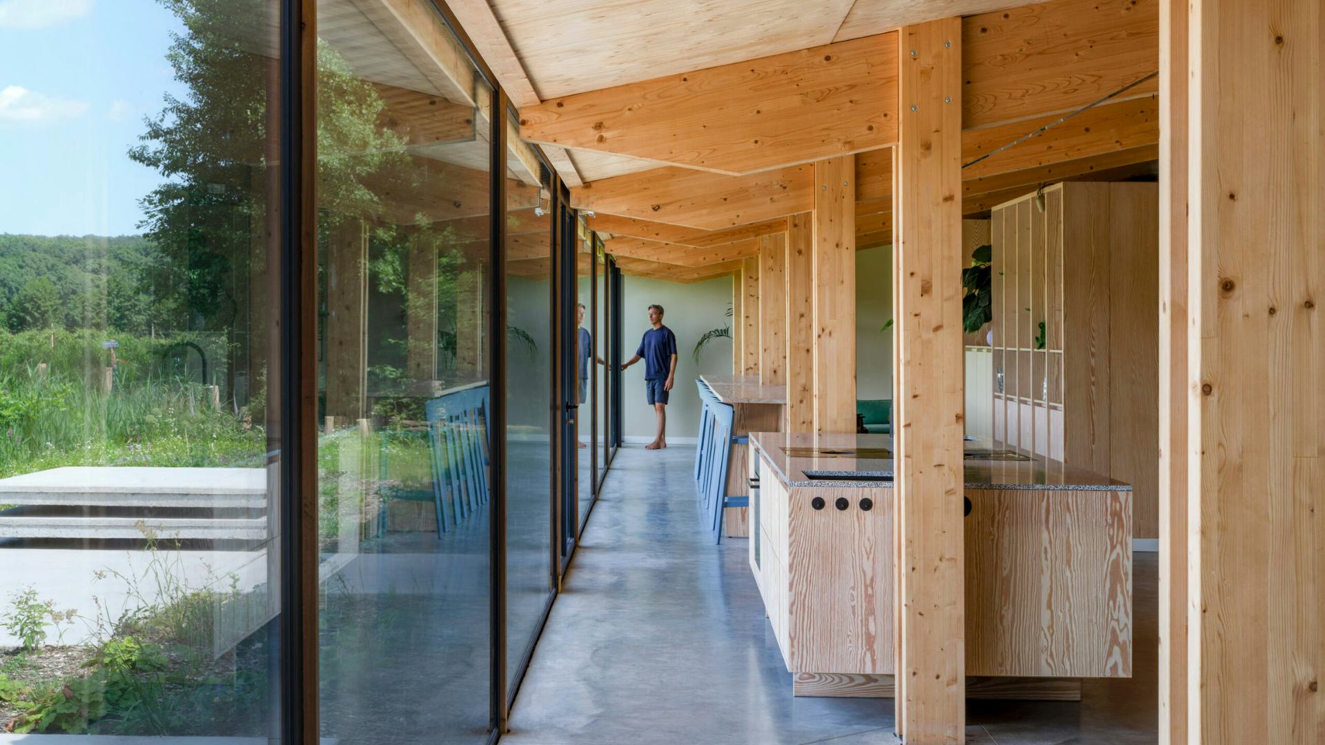 En dat terwijl de bouw ervan niet zonder slag of stoot ging. ‘Elke aannemer zei dat er te veel glas in het ontwerp zit, waardoor de bouw te duur is en het gebouw te snel opwarmt in de zomer’, vertelde Smits. Maar niks is minder waar. Want door een goede oriëntatie en grote dakoverstekken heeft het boshuis niks te vrezen van de zon. De ruwbouw is bovendien gelijk aan de afbouw waardoor kosten zijn bespaard. Ook zijn geen dure installaties toegepast.