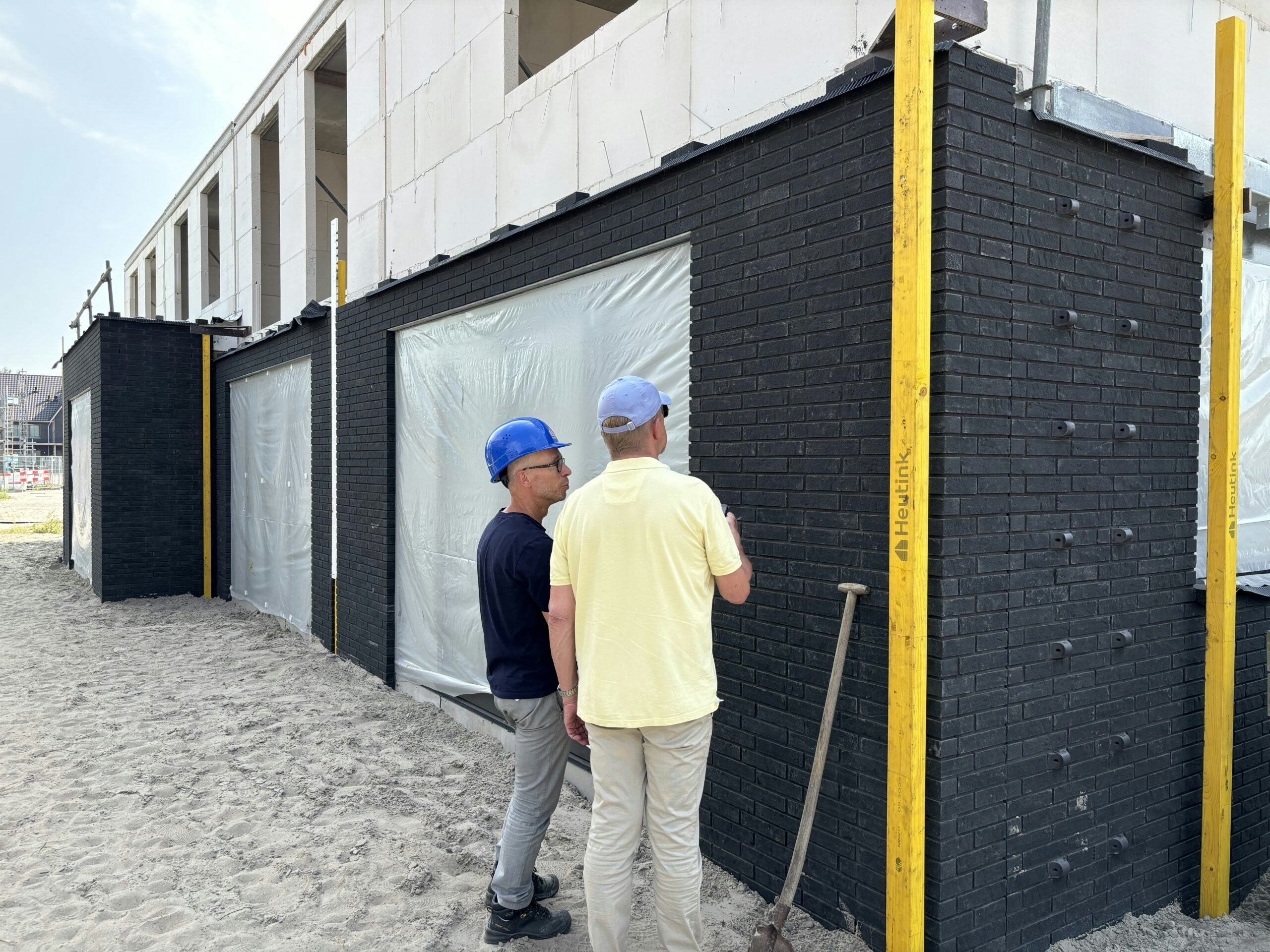 Ook bij project Groen Nobelhorst in Almere is samenwerking de sleutel voor succes. Het resultaat is meer dan alleen een bouwproject: Het is een stap richting een duurzame toekomst. ‘Ik geloof dat dit de toekomst van metselwerk is’, zegt Arjan van Herk, Directeur Bouw van Heutink Groep. ‘We verwerken de Pirrouet stenen met een doorstrijkmortel, zoals bij gewone metselstenen’, legt Arjan uit. ‘Het enige verschil is dat de stenen eenvoudig losmaakbaar moeten zijn. Dat draagt bij aan circulariteit in de bouw. Daar is de mortel op aangepast, maar verder werkt het zoals elke andere metselsteen.’
