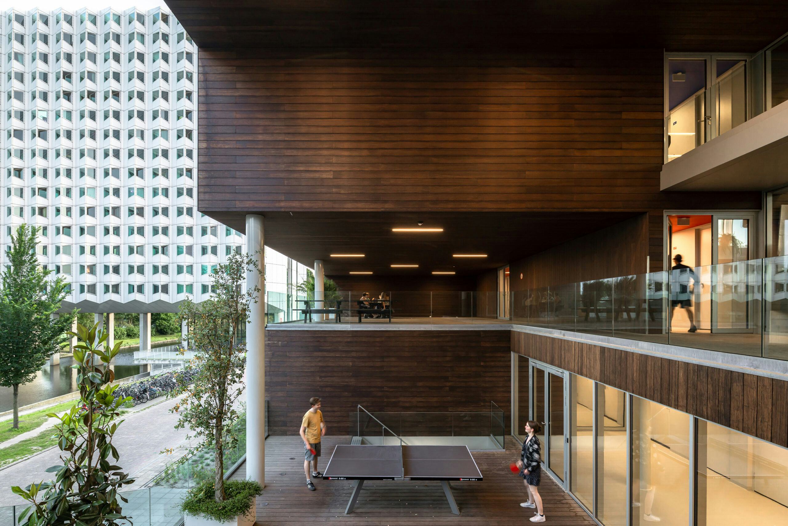Het Hart fungeert als centrale ontmoetingsplek. Hier kan buiten gestudeerd worden maar kunnen ook evenementen georganiseerd worden. Rondom deze ruimte bevinden zich gedeelde voorzieningen zoals een woonkamer met keuken, studieplekken, een tv-lounge en wasruimte. De aflopende platforms in het Hart kunnen gebruikt worden als zitplaatsen, terrassen of podia. De collectieve ruimten zijn zo ingericht dat ze spontane interactie stimuleren. De woonlagen en fietsenstalling zijn alle met het Hart verbonden.