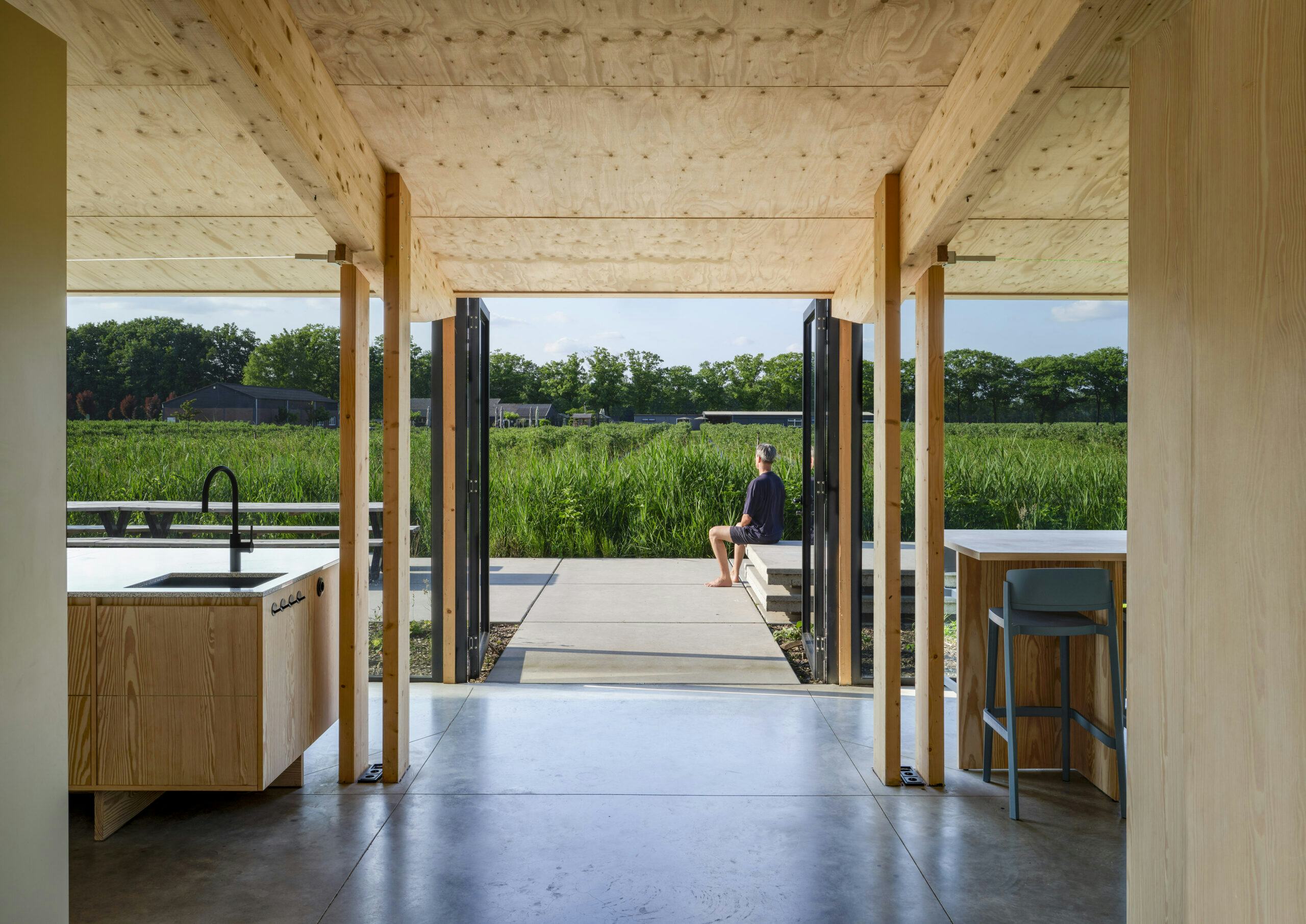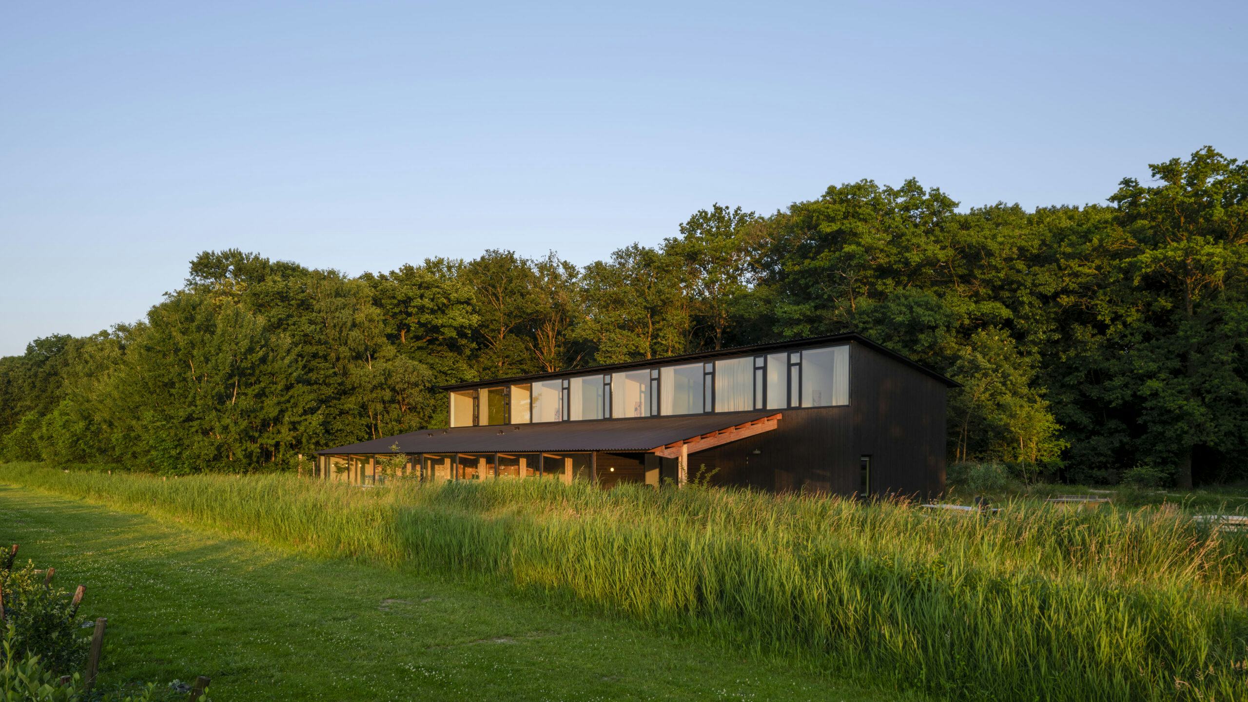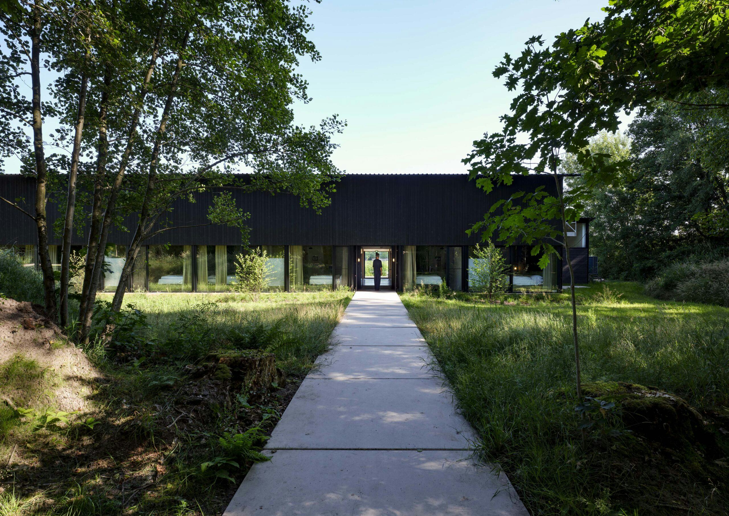 Voor de bouw is gewerkt met een beperkt budget. Het casco werd volledig geprefabriceerd in hout. De zwarte gevel en het stalen dak zijn eenvoudig uitgevoerd; regenwater stroomt direct de natuur in. Met deze keuzes is een duurzaam en ingetogen gebouw gerealiseerd dat past in het landschap en de plantage een nieuwe voorziening biedt.