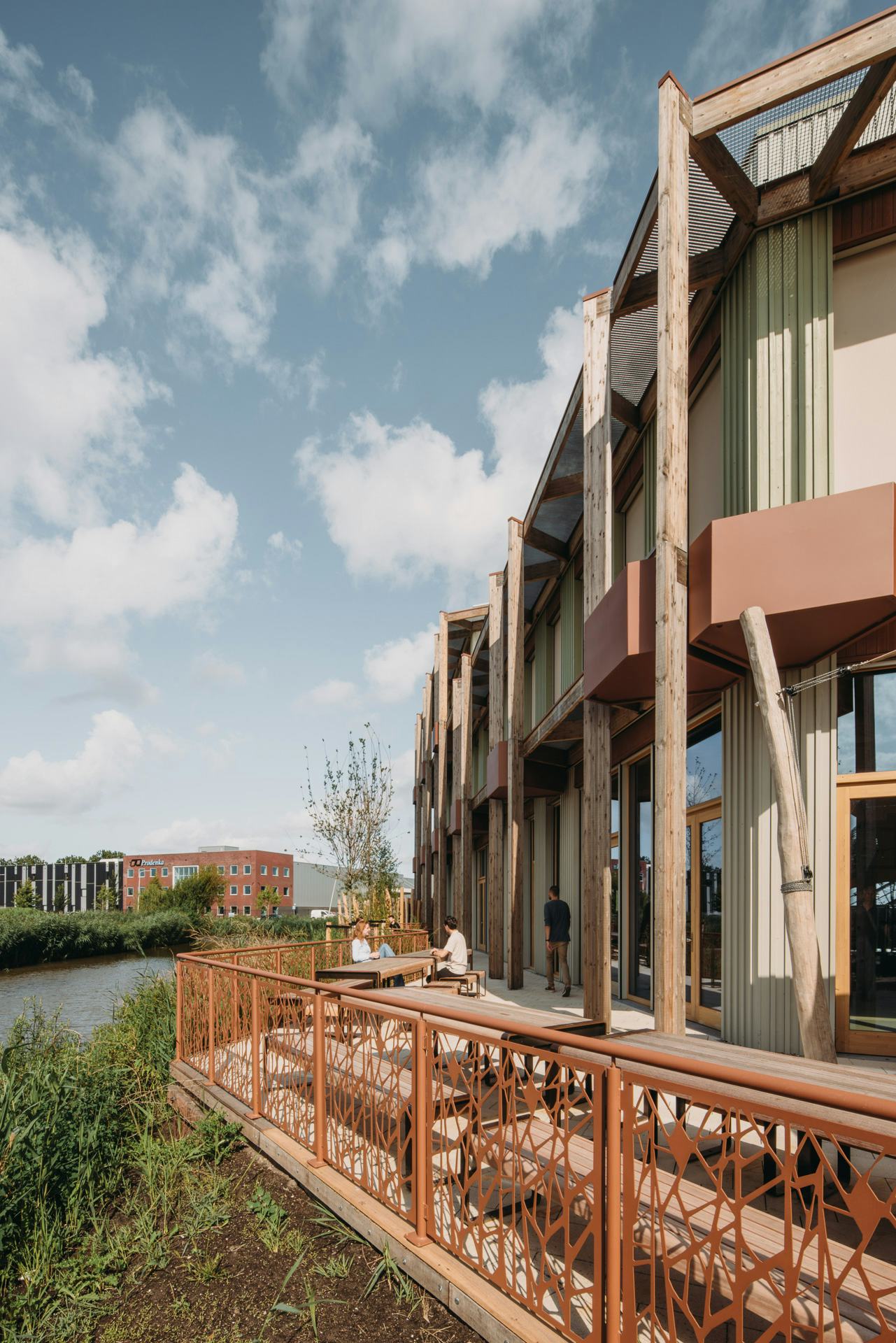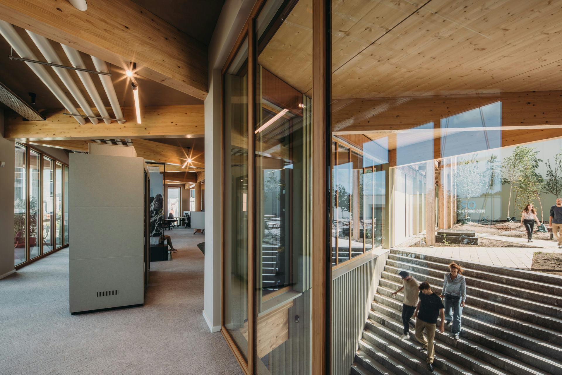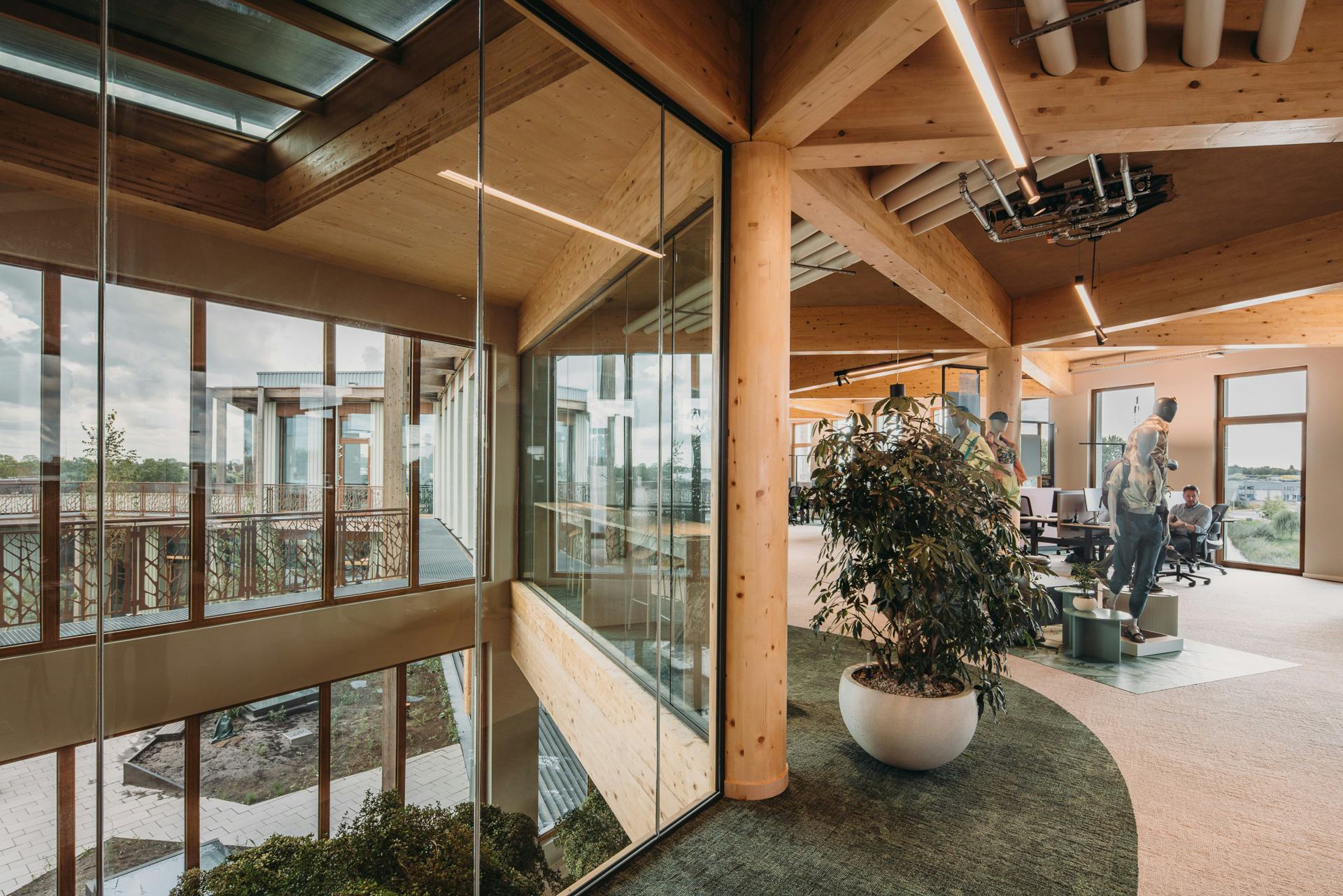Het ontwerp legt de nadruk op de relatie tussen binnen en buiten. Het gebouw is rond een ruime patio met daktuin ontworpen, zodat alle werkruimtes uitzicht hebben op groen en daglicht. Grote ramen en deuren kunnen open, waardoor binnen en buiten in elkaar overlopen. Landschapsontwerpers van Smartland zorgden voor daktuinen, terrassen en buitenwerkplekken die via buitentrappen met elkaar zijn verbonden. Zo kunnen medewerkers ook buiten werken of samen activiteiten ondernemen.