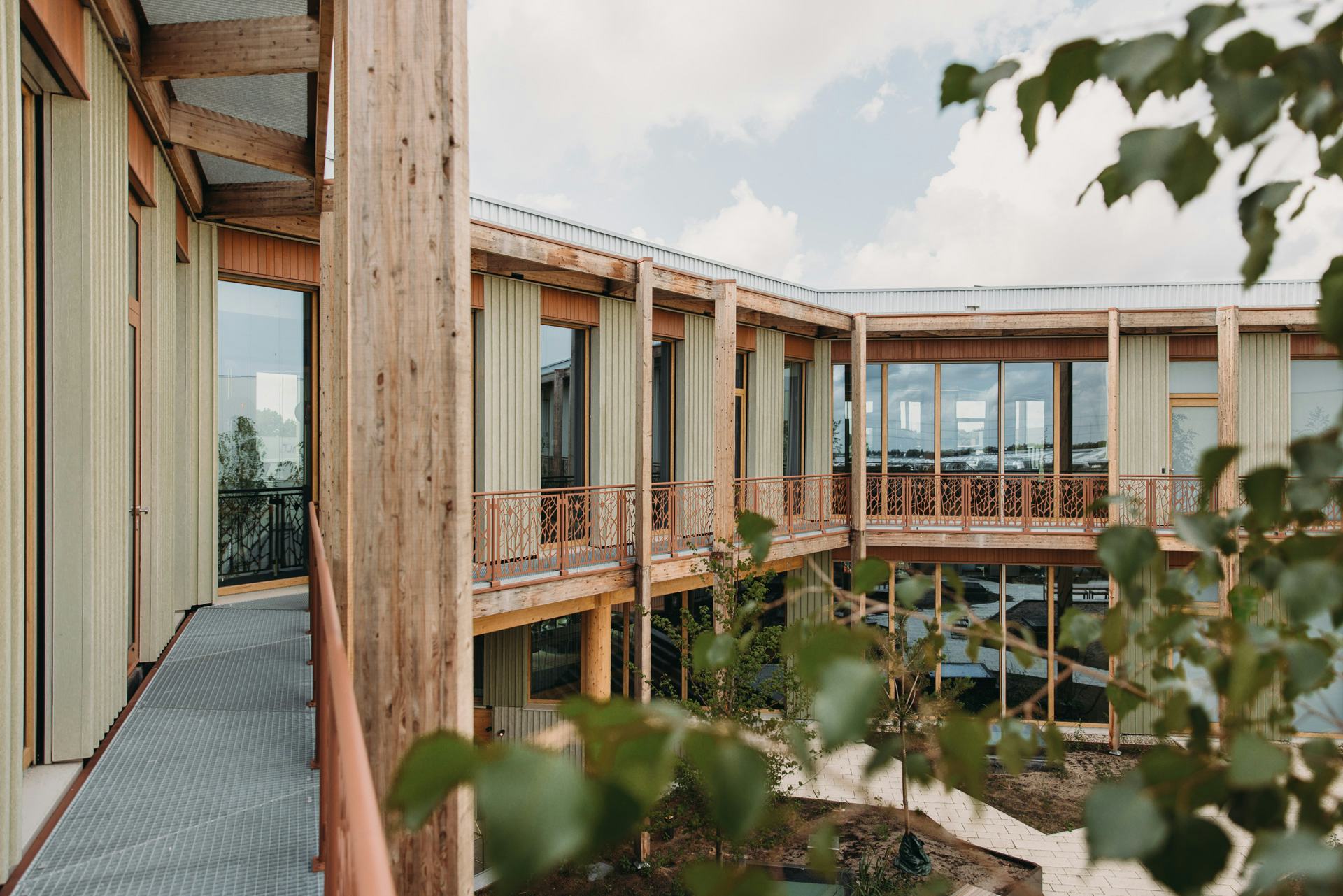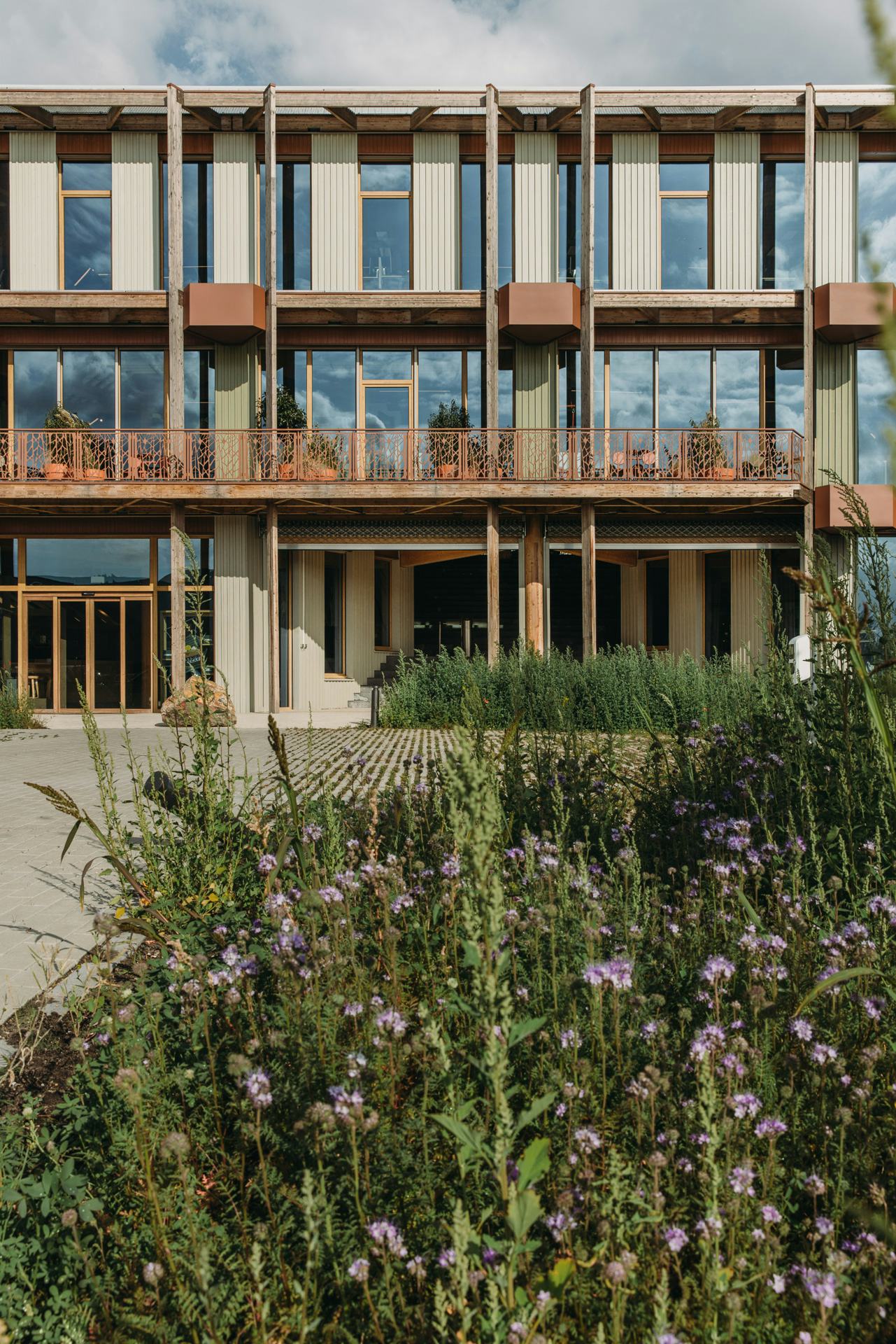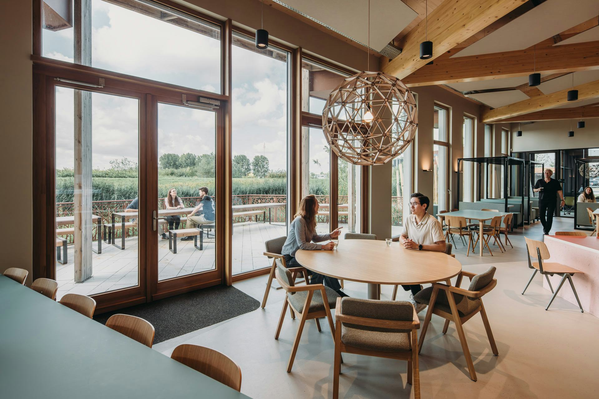 Het ontwerp legt de nadruk op de relatie tussen binnen en buiten. Het gebouw is rond een ruime patio met daktuin ontworpen, zodat alle werkruimtes uitzicht hebben op groen en daglicht. Grote ramen en deuren kunnen open, waardoor binnen en buiten in elkaar overlopen. Landschapsontwerpers van Smartland zorgden voor daktuinen, terrassen en buitenwerkplekken die via buitentrappen met elkaar zijn verbonden. Zo kunnen medewerkers ook buiten werken of samen activiteiten ondernemen.