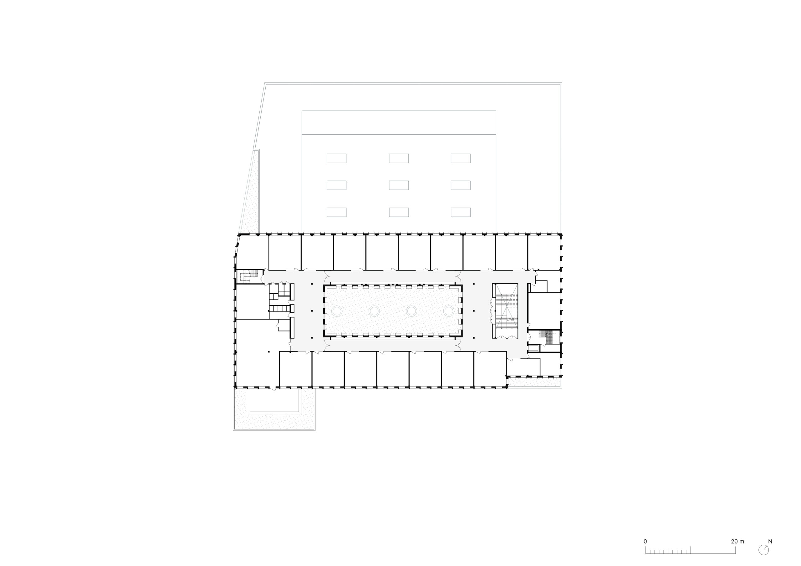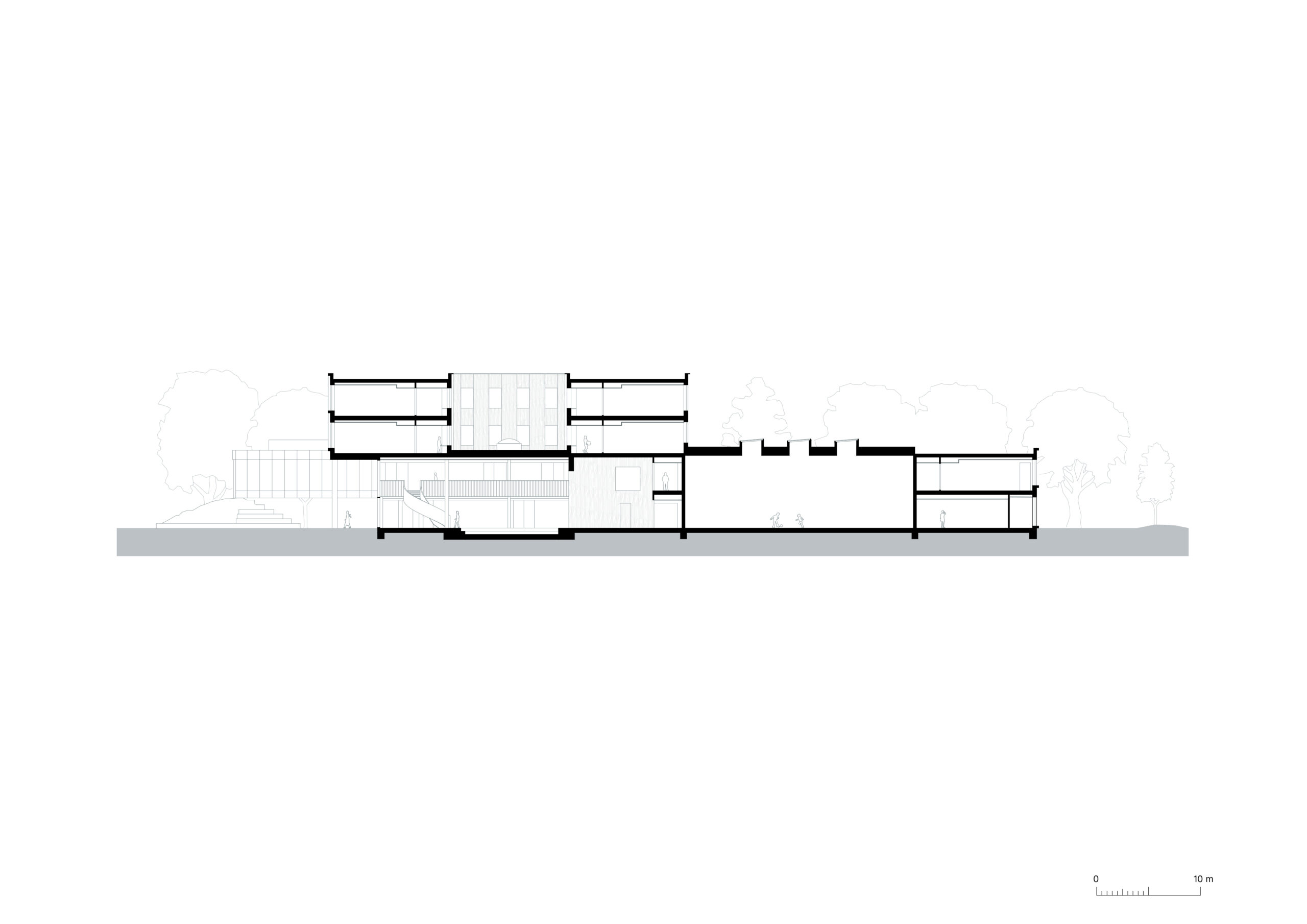 De aula wordt ook buiten schooltijd gebruikt voor buurtactiviteiten zoals kerkdiensten en sportevenementen. Grote ramen maken de school toegankelijk en zichtbaar voor de omgeving. Door vakken als kunst zichtbaar aan de straatzijde te positioneren, sluit de school aan bij haar publieke rol in de wijk. Bovenin bevinden zich lokalen en leerlingpleinen rond een patio, wat zorgt voor extra daglicht.