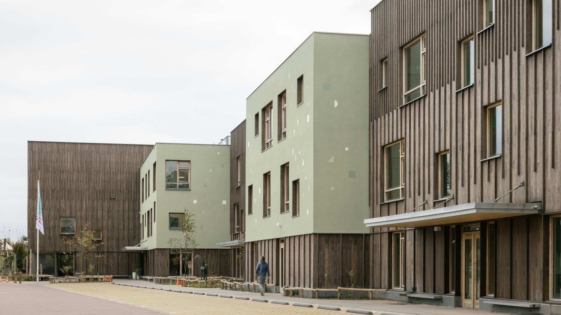 Voor de school in Hoorn ontwierp KRFT een houten constructie en dampopen gevels met een bekleding van bamboe. Vos besloot om in navolging van een onderzoek van SGS Search te rekenen met 30 procent van de biogene koolstofopslag in de houten constructie. Een zelf opgelegde rekensom die, in combinatie met het bamboe, de houten kozijnen en houtvezelisolatie uiteindelijk leidde tot een Paris Proof ontwerp, met – om helemaal volledig te zijn – 230 kilogram CO2-equivalent per vierkante meter bruto vloeroppervlak.