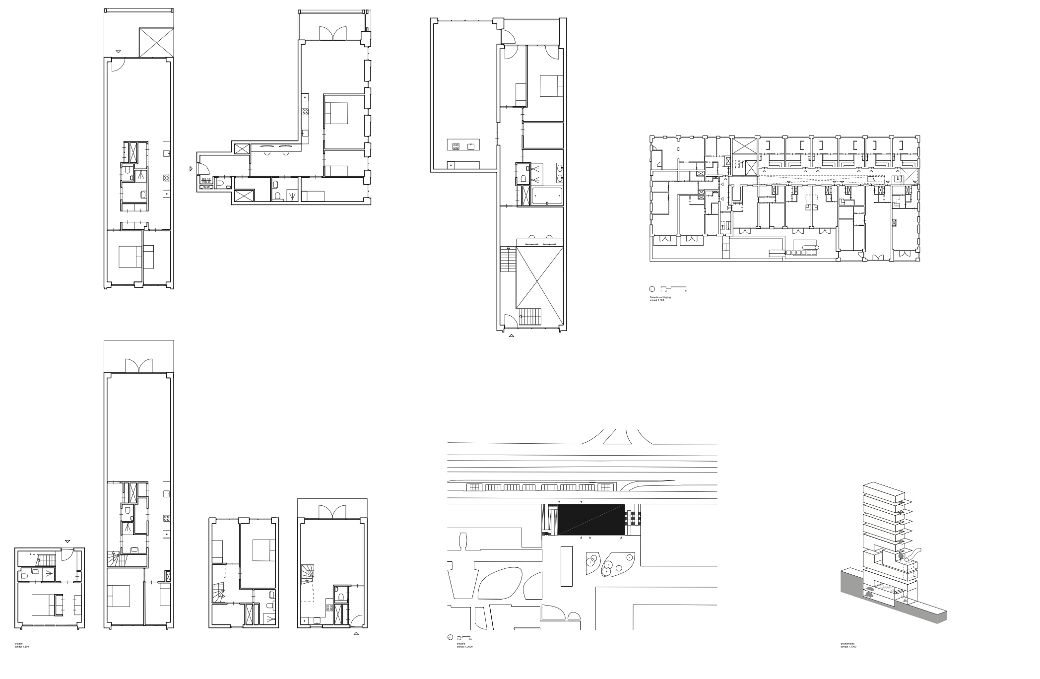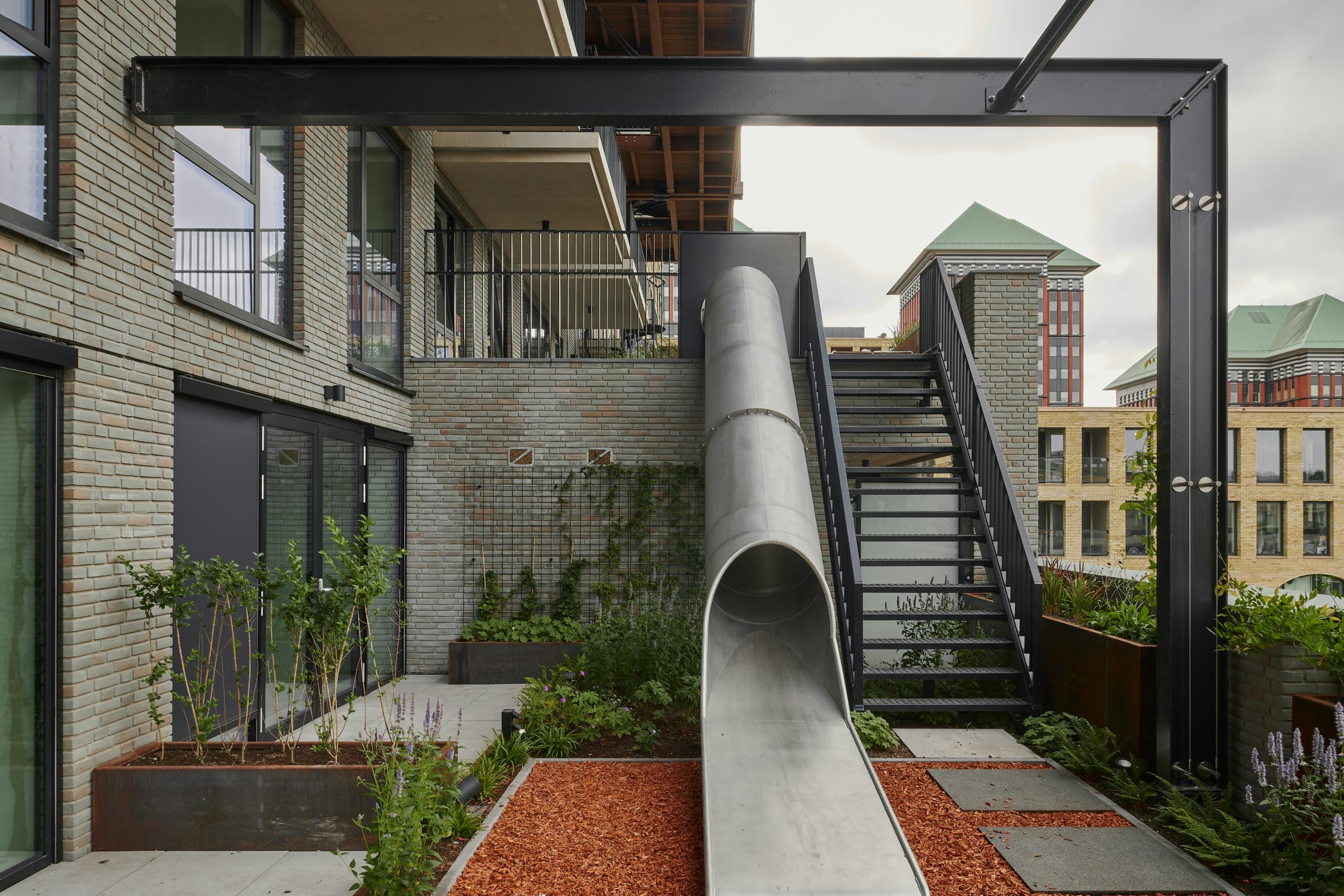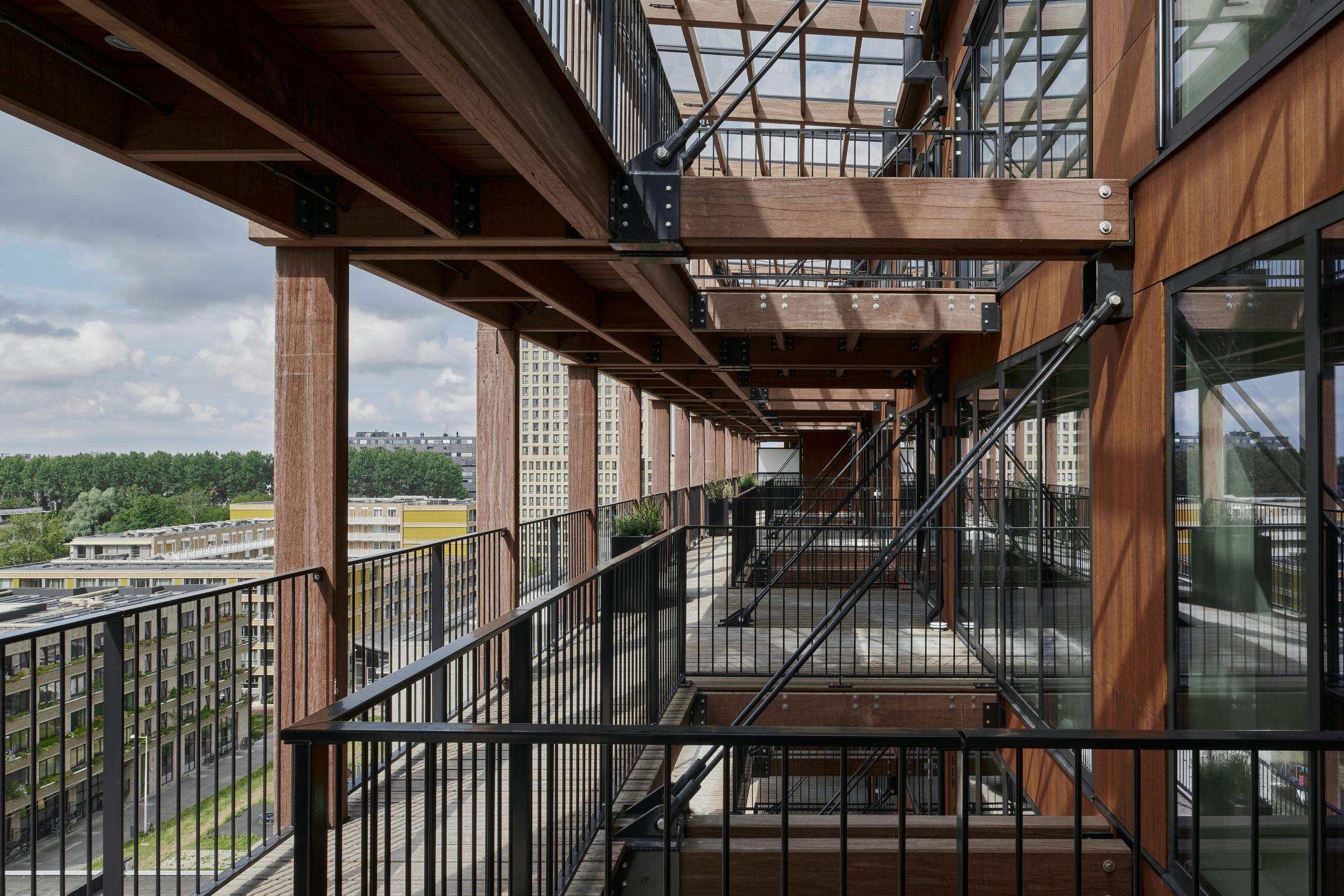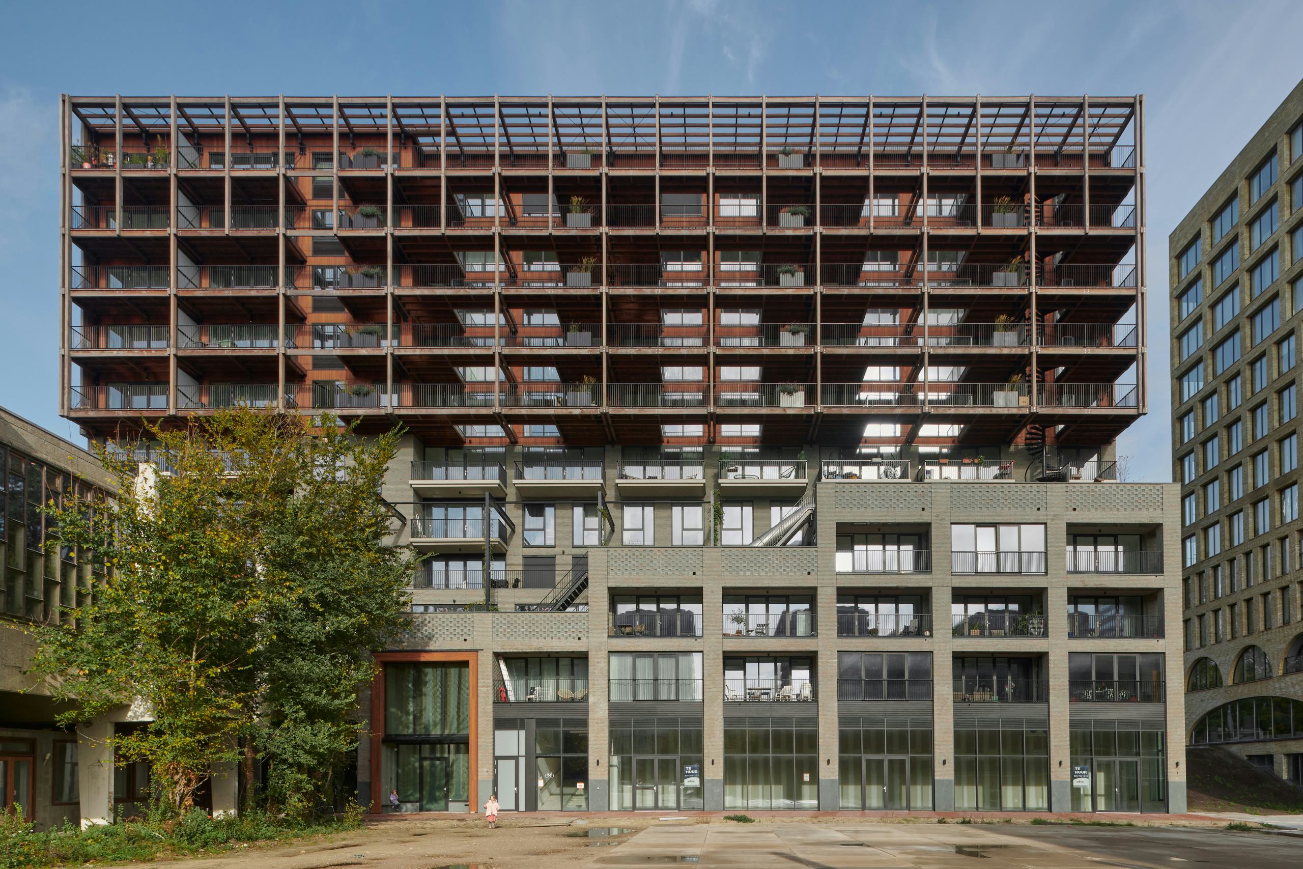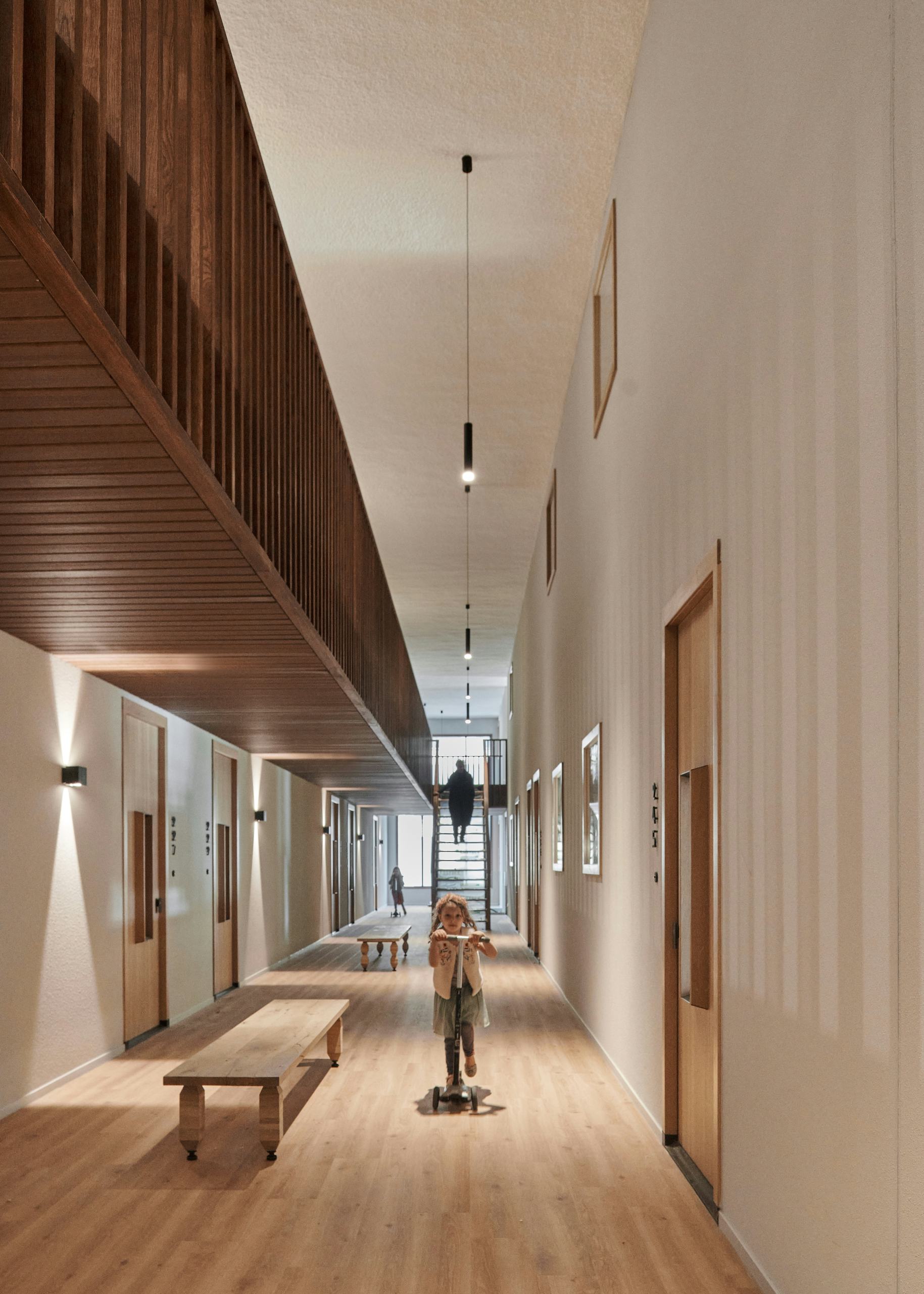 Het complex biedt koop- en huurwoningen van 60 tot 170 m², elk met een buitenruimte op het zuiden. De woningen variëren van compacte appartementen tot ruime gezinswoningen, bedoeld voor uiteenlopende huishoudens. Binnen- en buitenruimtes lopen in elkaar over via hallen, trappen en collectieve plekken die ontmoeting stimuleren. De centrale entreehal vormt het hart van het gebouw en leidt naar een groene traptuin, waar bewoners elkaar kunnen ontmoeten. Kunstwerken van Marjet Wessels Boer brengen extra licht en kleur in het gebouw.