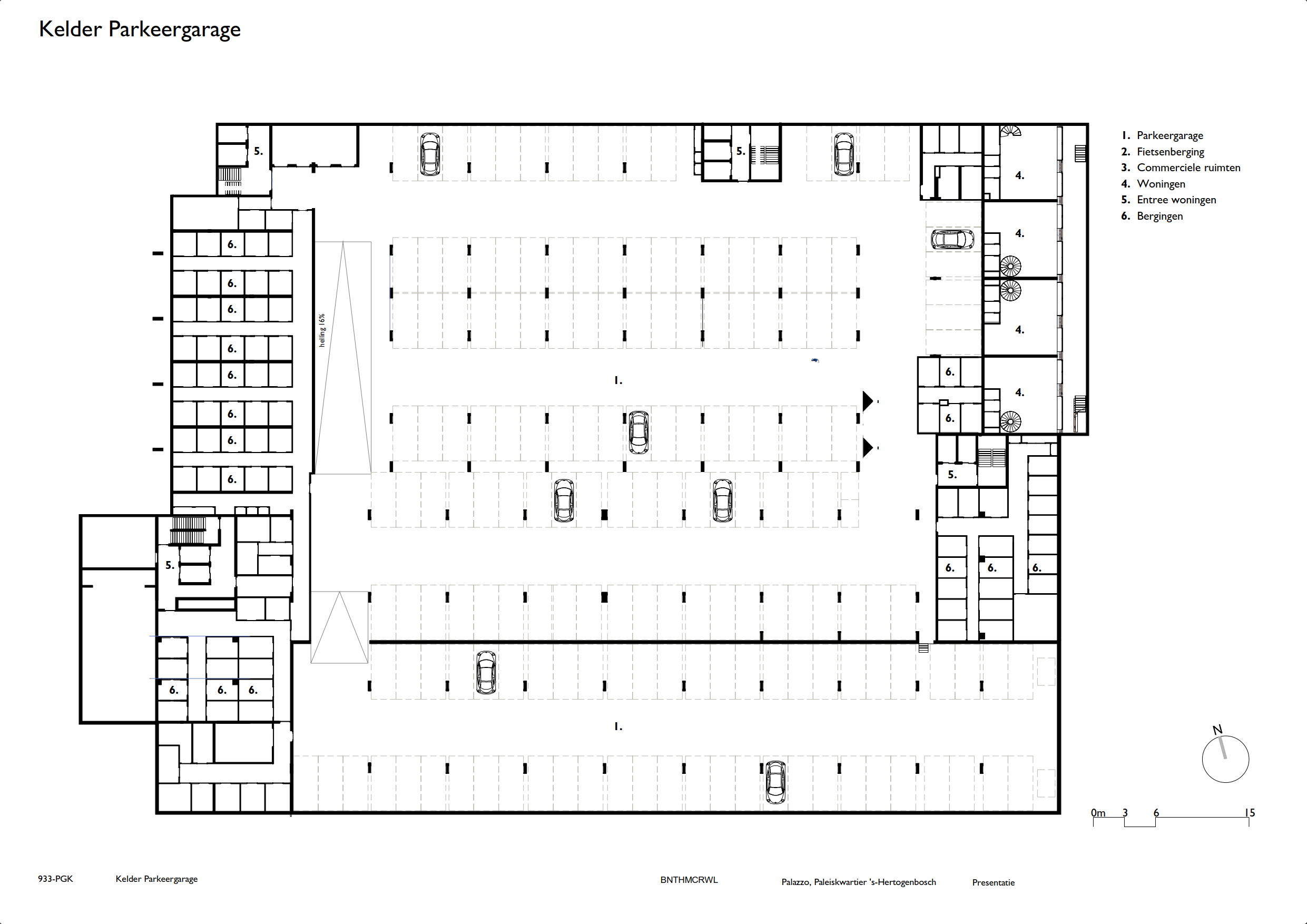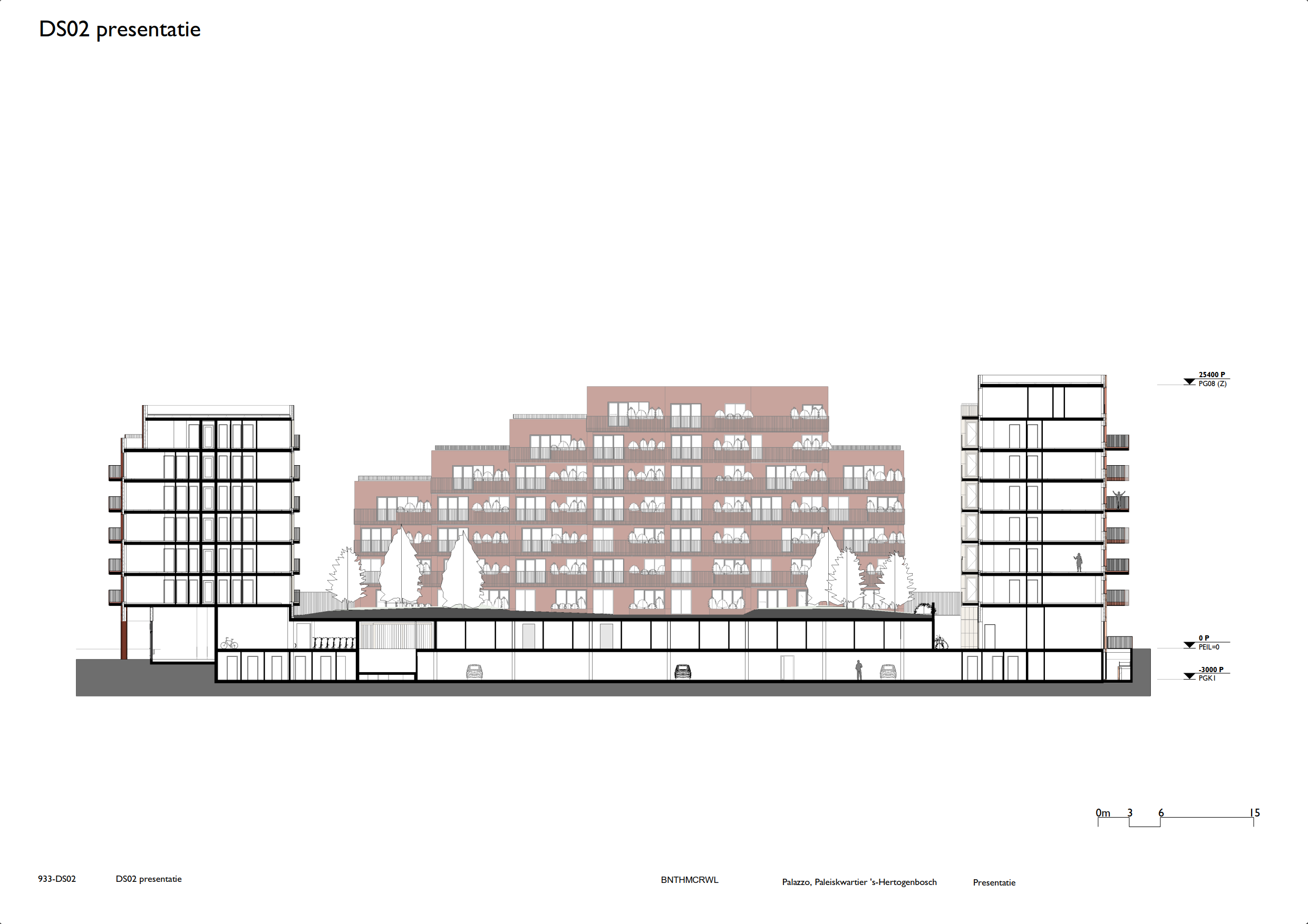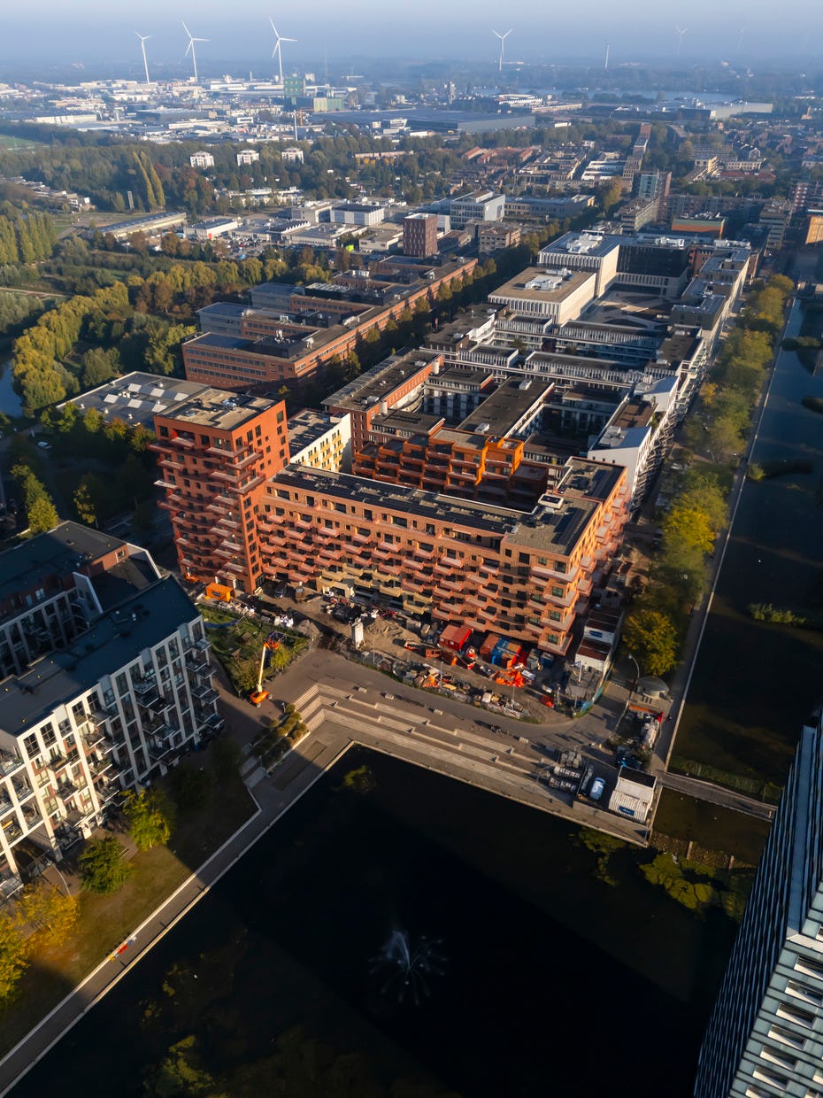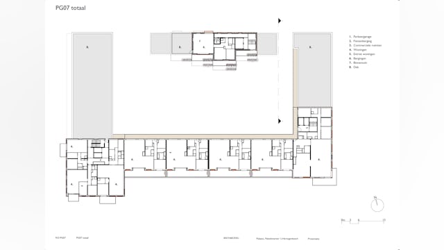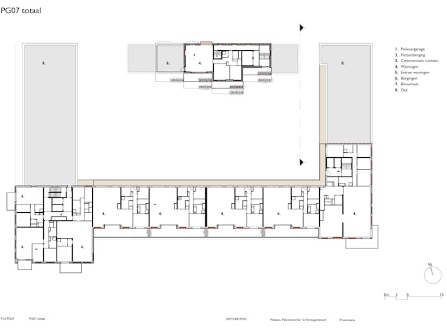 In het midden van het blok ligt een binnentuin die is ingericht als een open, groene ruimte. Door het noordblok los te maken van het carré valt er meer daglicht binnen en ontstaat een lichte binnentuin die toegankelijk is voor bewoners. Het groen loopt via terrassen en geïntegreerde plantenbakken door naar de hogere verdiepingen, waardoor een visuele verbinding ontstaat tussen binnen en buiten. De tuin fungeert als gezamenlijke buitenruimte waar bewoners kunnen verblijven of wandelen.