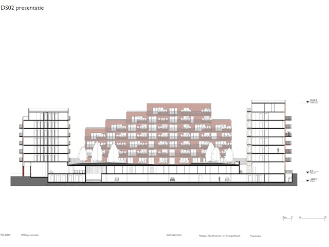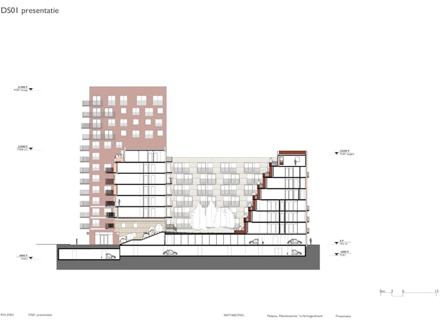 Palazzo telt 233 huur- en koopwoningen, variërend van studio’s tot grotere lofts. Het gebouw is opgezet als één geheel waarin alle bewoners vergelijkbare licht- en uitzichtkwaliteit hebben. De gevel bestaat uit metselwerk in drie kleuren, afgewisseld met keramische elementen op plekken waar het gebouw direct aan de stad grenst. Zo krijgt vooral de noordzijde een opvallende uitstraling. Met Palazzo komt het Paleiskwartier tot voltooiing, waarbij het ontwerp volgens de architecten zowel aansluit bij het bestaande ensemble als een nieuwe impuls aan het gebied geeft.