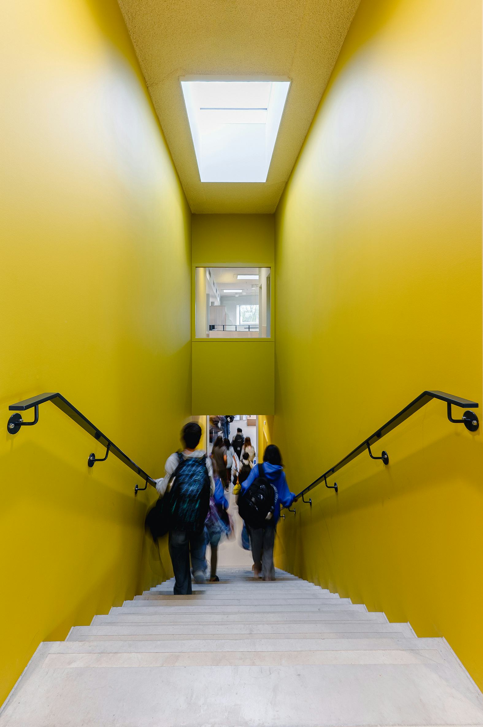 Op de rand van de TU Delft-campus realiseerde atelier PRO de nieuwe International School Delft Secondary: een natuurinclusief en innovatief onderwijsgebouw dat zich zorgvuldig voegt in zijn academische context. Op de locatie van het voormalige Kramers Laboratorium wordt de markante toren opnieuw ingezet, waardoor een bekend Delfts landmark behouden blijft en een vanzelfsprekende entree tot het schoolplein vormt. Deze combinatie van hergebruik, toekomstgericht onderwijs en ecologische ambitie vormt de kern van het ontwerp.