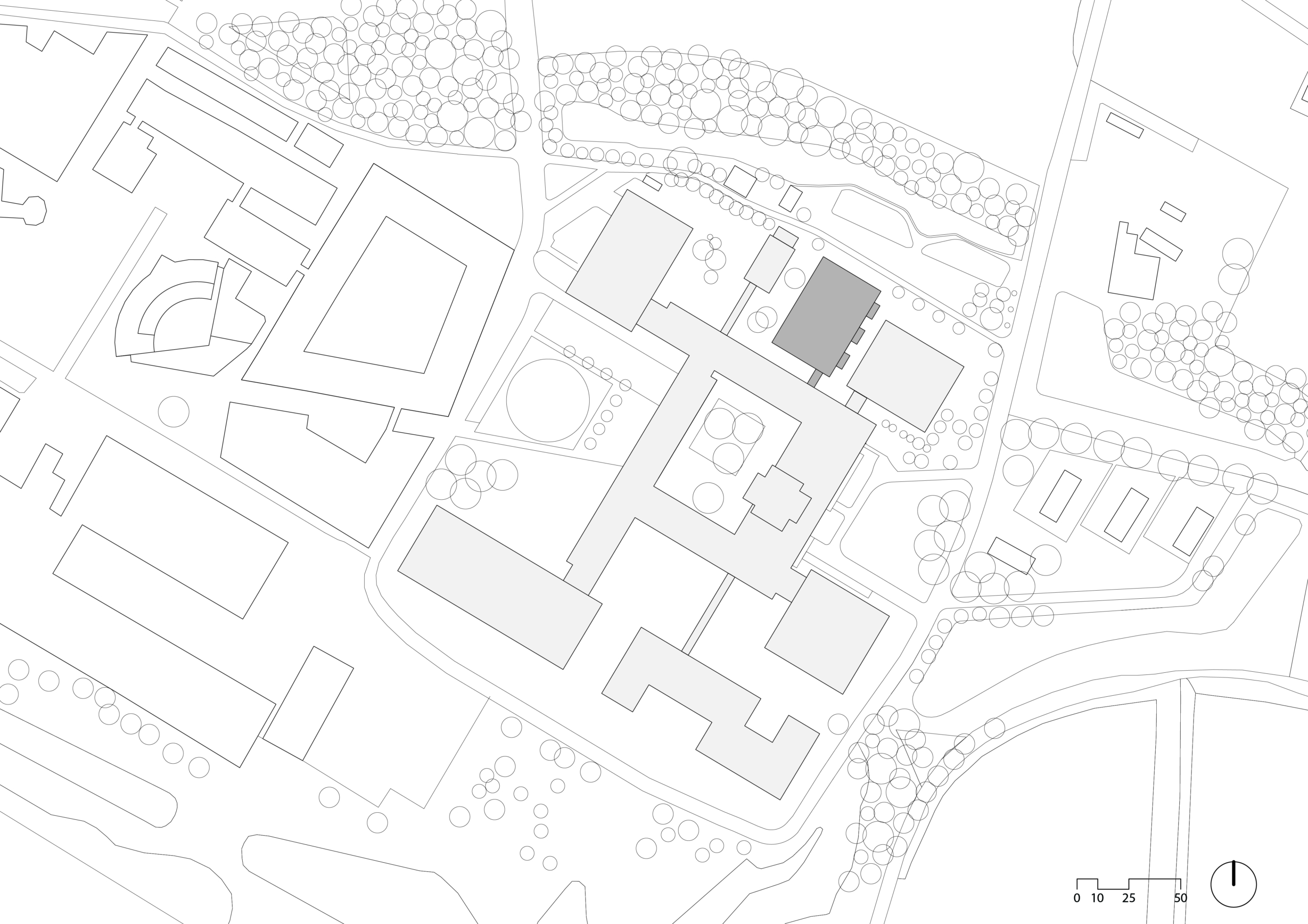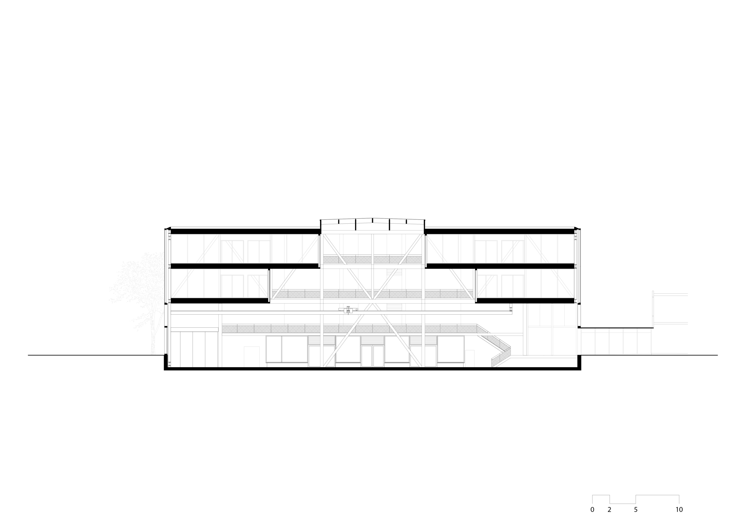 CUBE voegt zich in het modernistische Horstensemble uit de jaren zestig, maar reageert op actuele klimaat- en gebruikseisen. Het gebouw is opgezet als een compacte satelliet met een extra verdieping, zodat het oorspronkelijke ensemble leesbaar blijft. De gevels verschillen per orientatie: transparant aan de noordwestzijde voor daglicht en zicht, gesloten aan de zuid- en westzijde om opwarming te beperken.