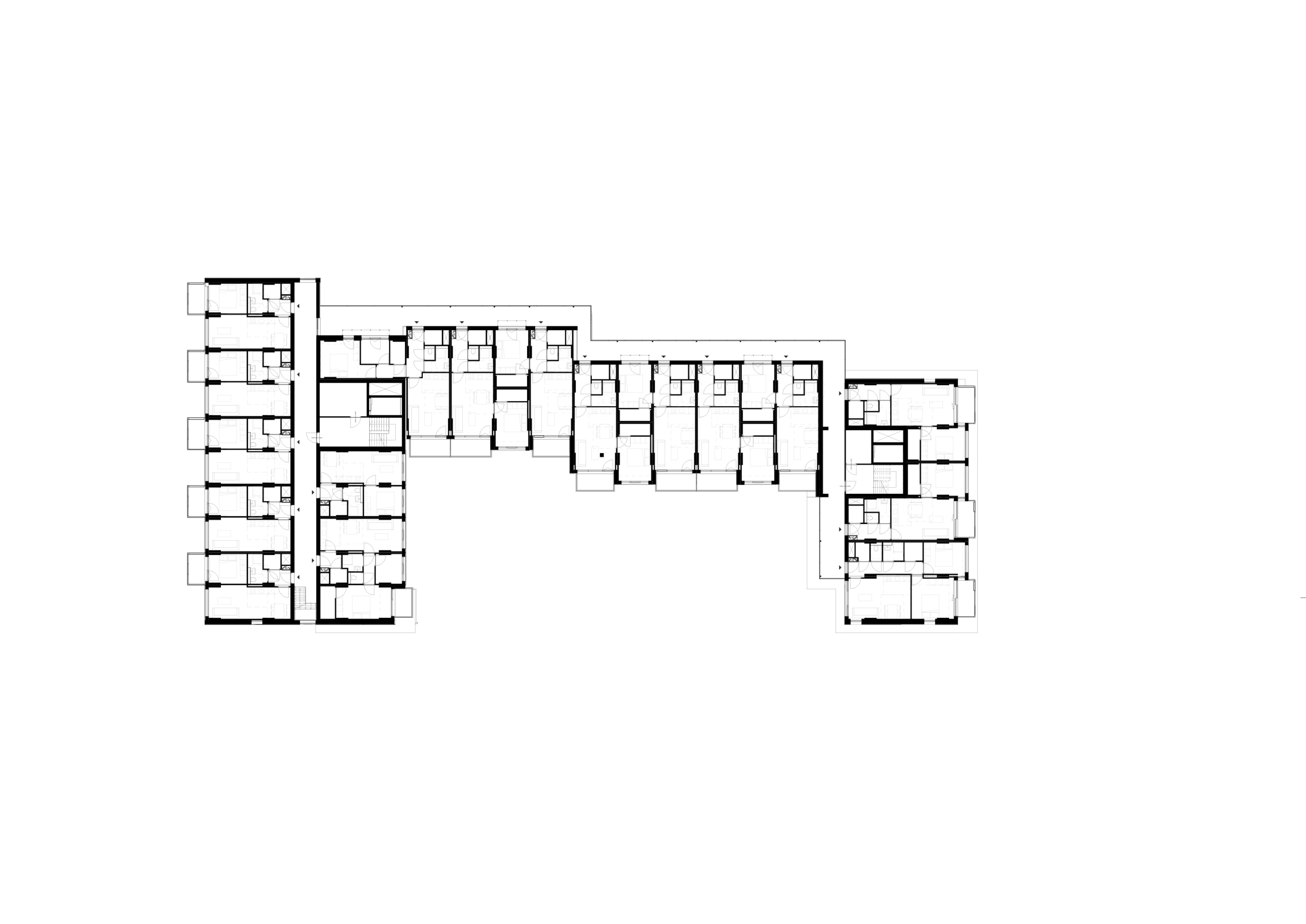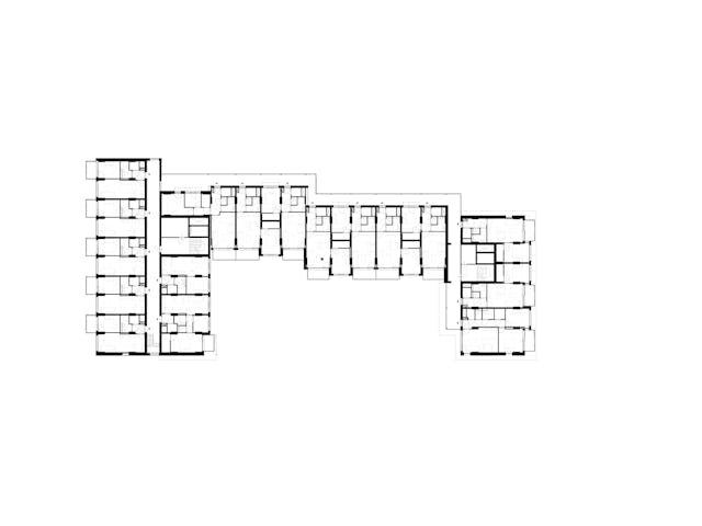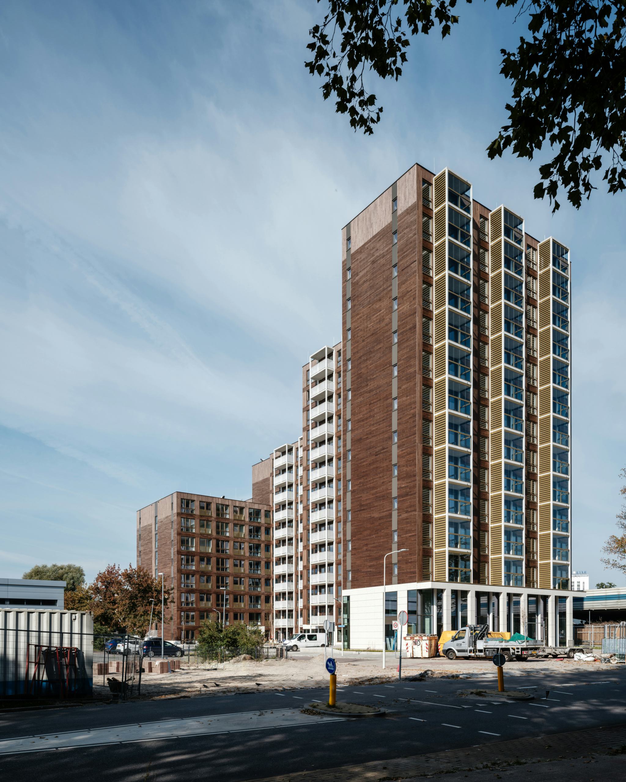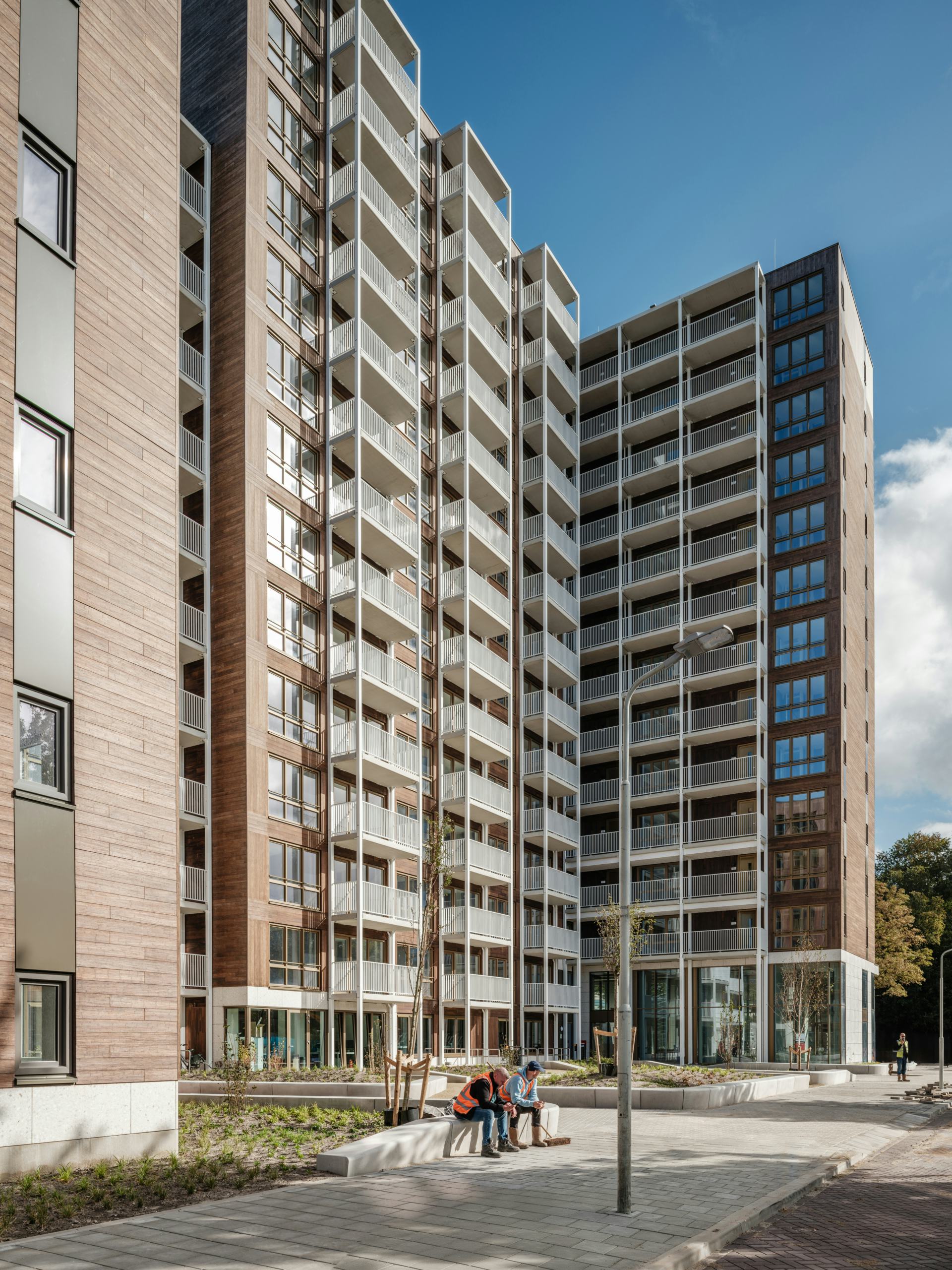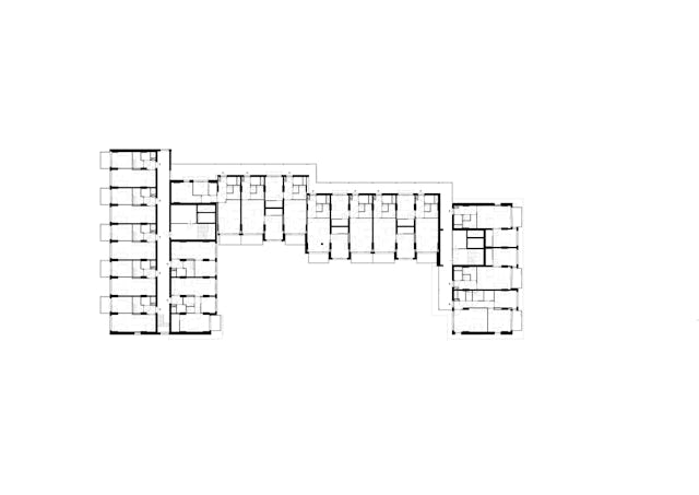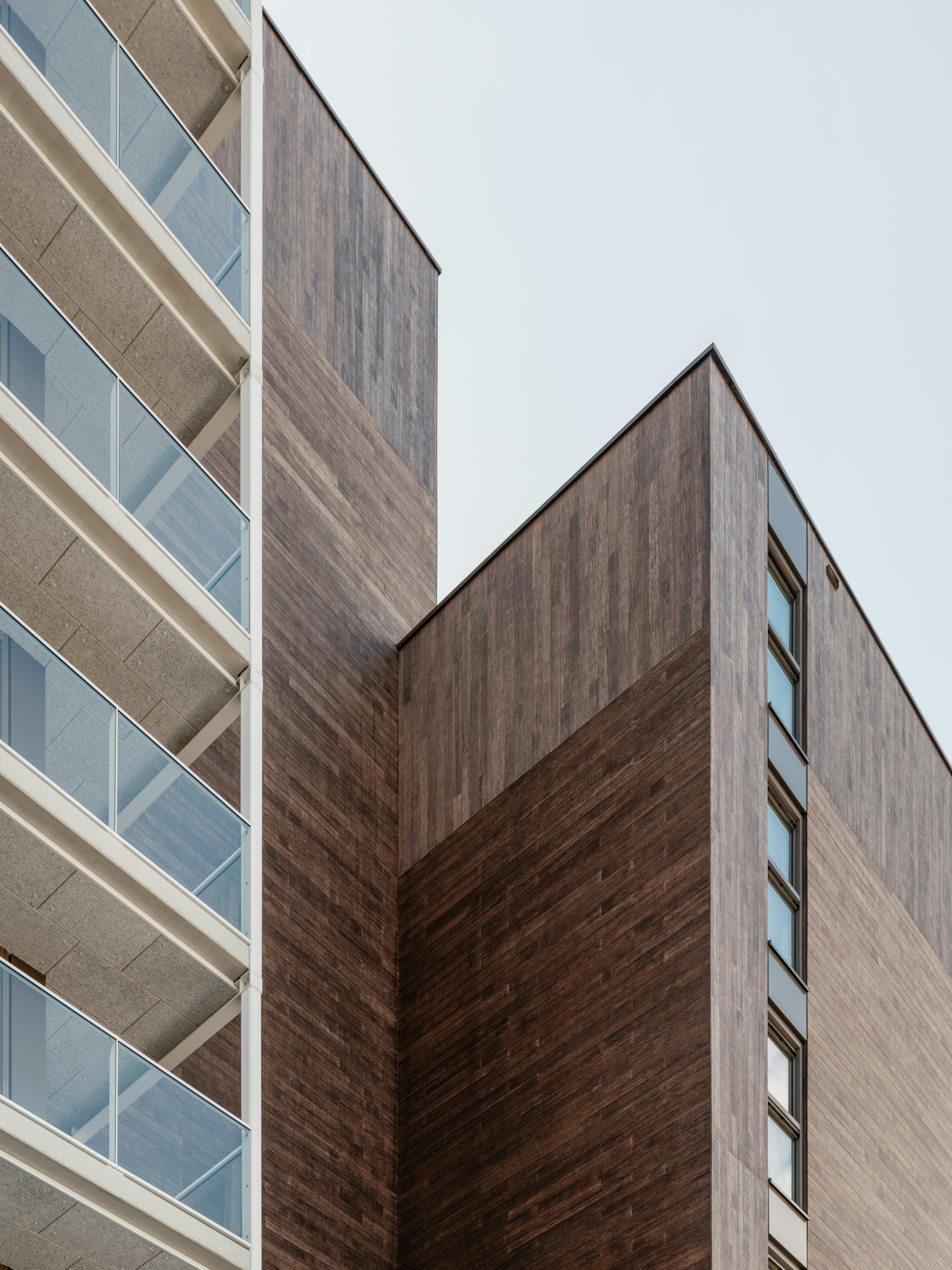 Het woningbouw is modulair opgezet en uitgevoerd in een hybride constructie van hout en beton. De plint aan de noord- en oostzijde is traditioneel gebouwd, waarna in de fabriek geproduceerde modules zijn geplaatst. In totaal zijn 318 modules gemaakt, volledig voorzien van afwerking en installaties. Deze aanpak verkortte de bouwtijd en ondersteunde een efficiënte uitvoering. De bamboegevel bestaat uit bijna twintigduizend planken.
