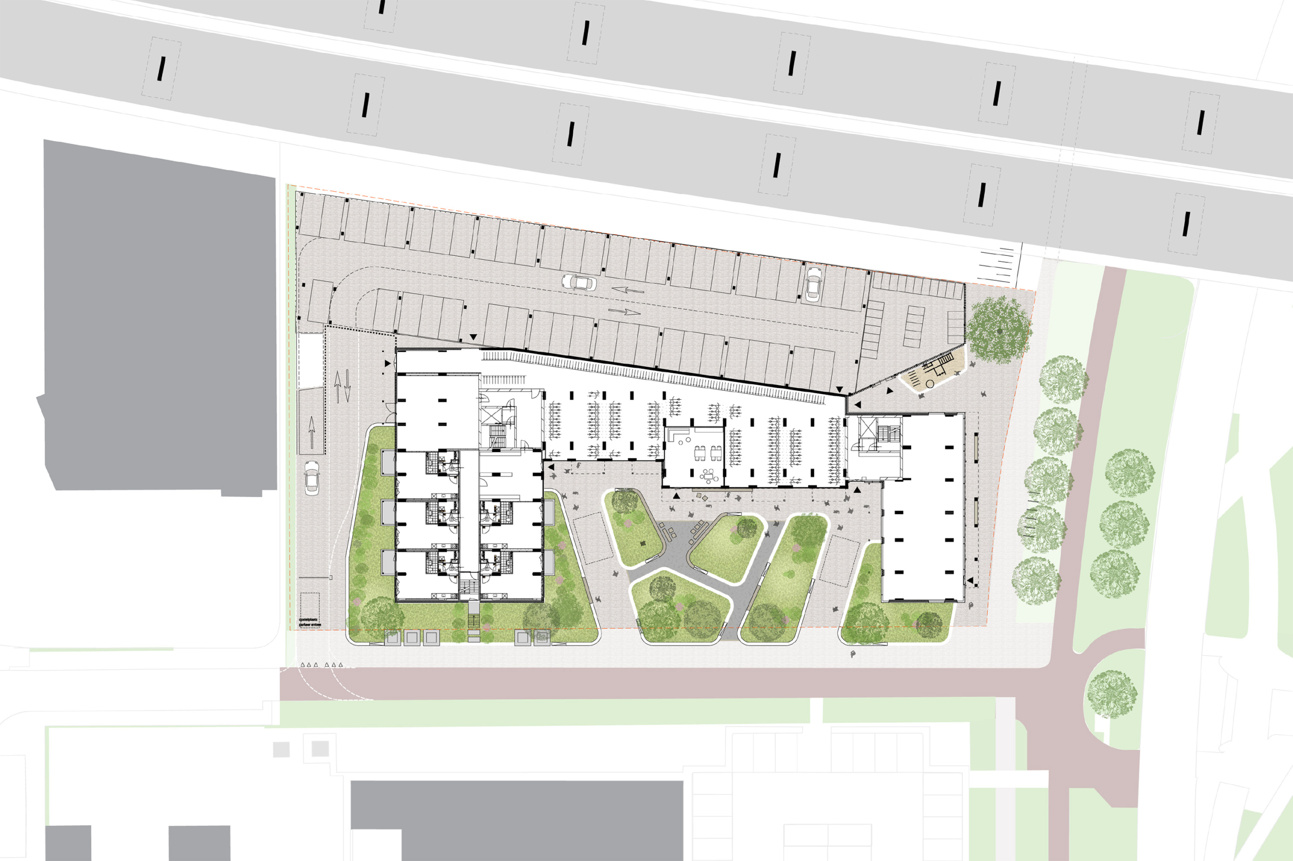 Het woongebouw biedt verschillende woningtypes en een flexibele plint met twee entrees. In de plint liggen maisonnettes die aansluiten op de tuin. Daarnaast zijn in het ontwerp maatregelen voor biodiversiteit opgenomen, zoals nestkasten voor vogels en vleermuizen. Door het gebruik van natuurlijke materialen en aandacht voor natuurinclusiviteit wil het ontwerp een prettige en veilige woonomgeving bieden voor zowel huidige bewoners van de wijk als nieuwkomers.
