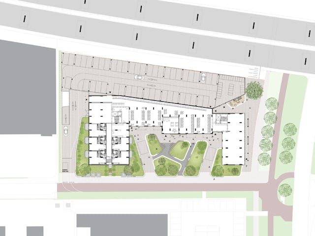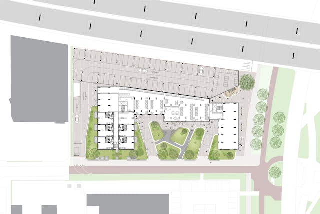 Het gebouw fungeert als een overgang tussen de nieuwe woonomgeving en de snelweg A8. Door de getrapte vorm en de groene inrichting ontstaat een beschutte ruimte voor bewoners en wordt extra groen aan de wijk toegevoegd. Het ontwerp sluit aan bij de ambitie om de leefkwaliteit in het gebied te vergroten en een samenhangend woonmilieu te creëren.
