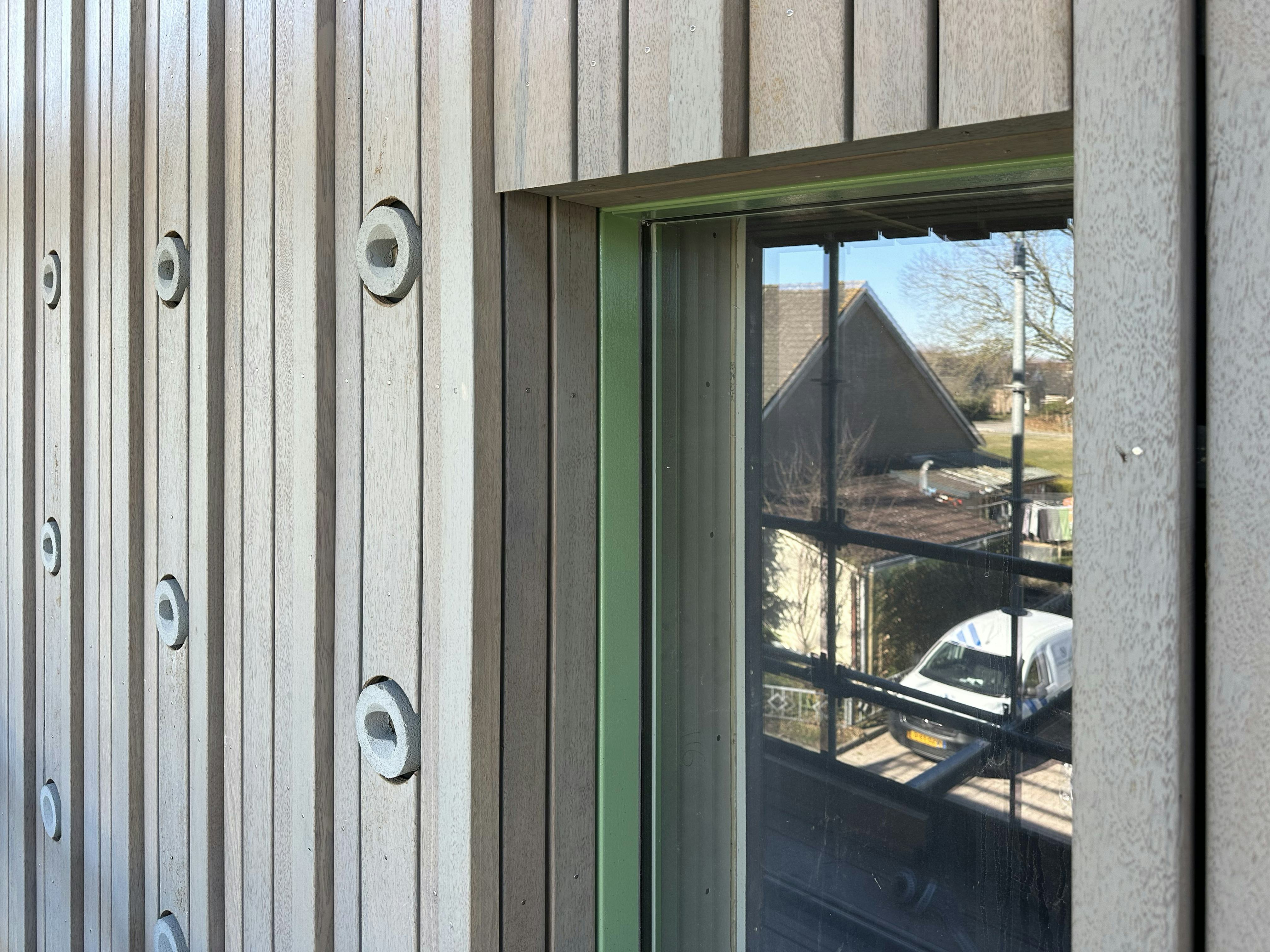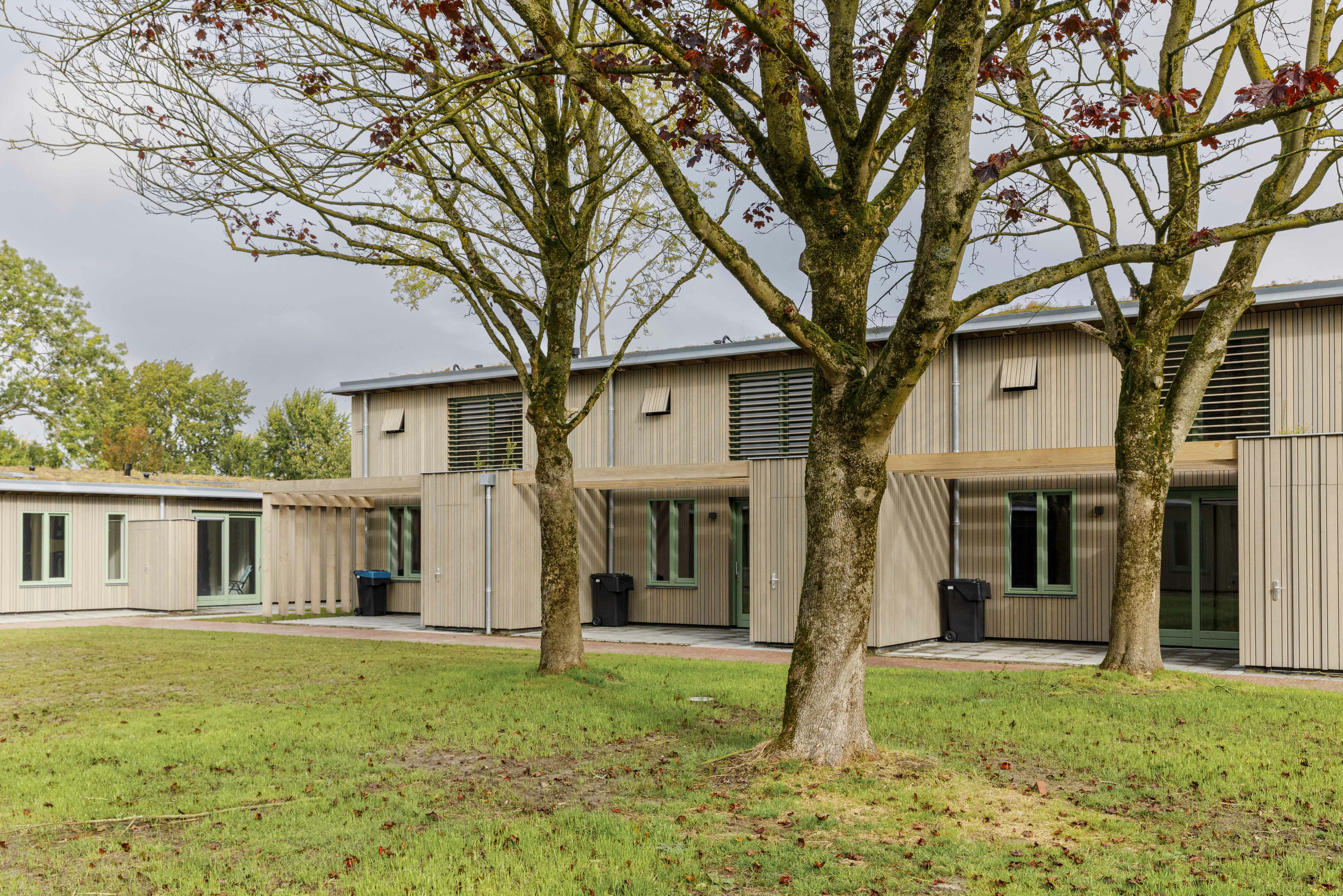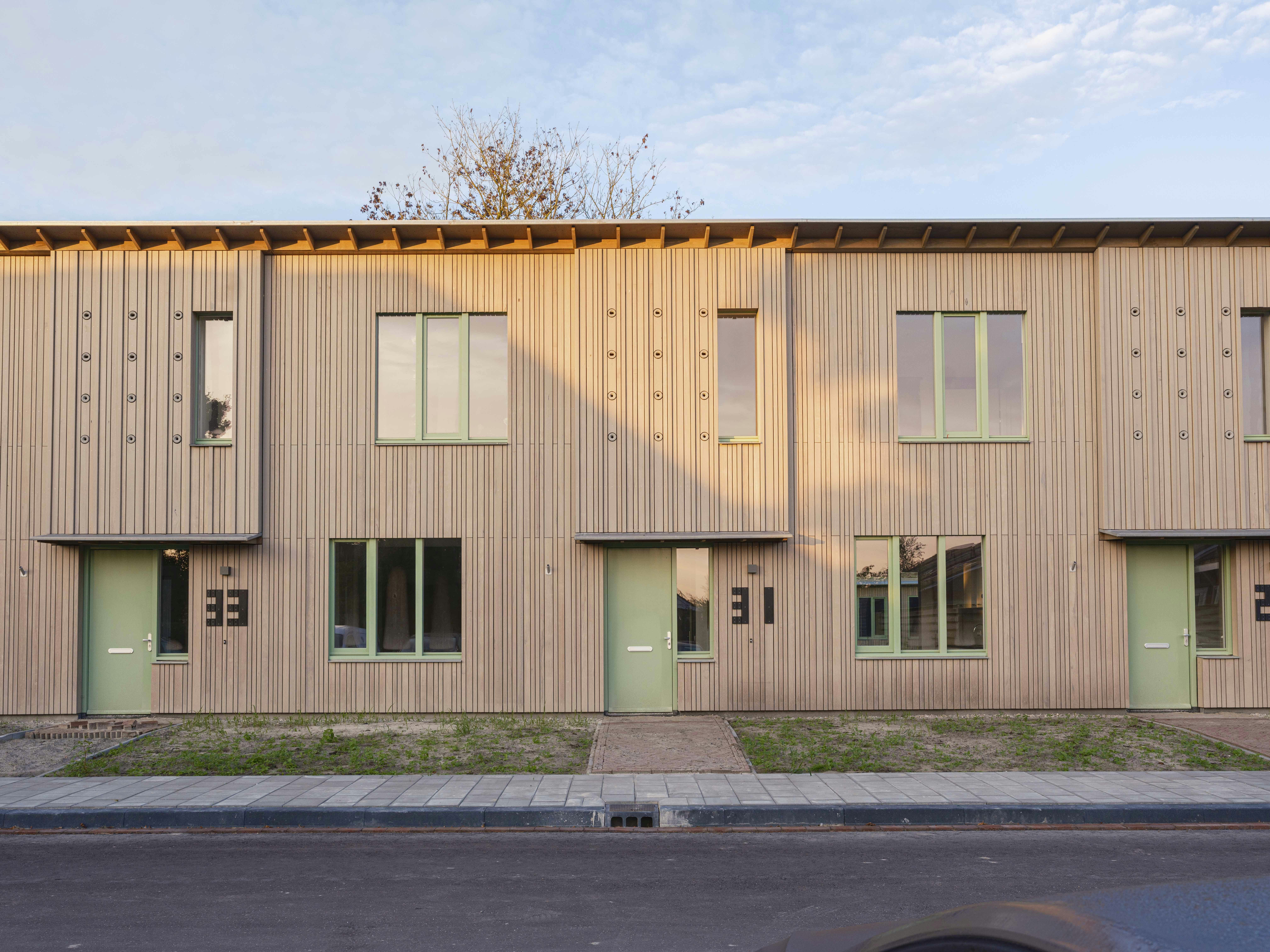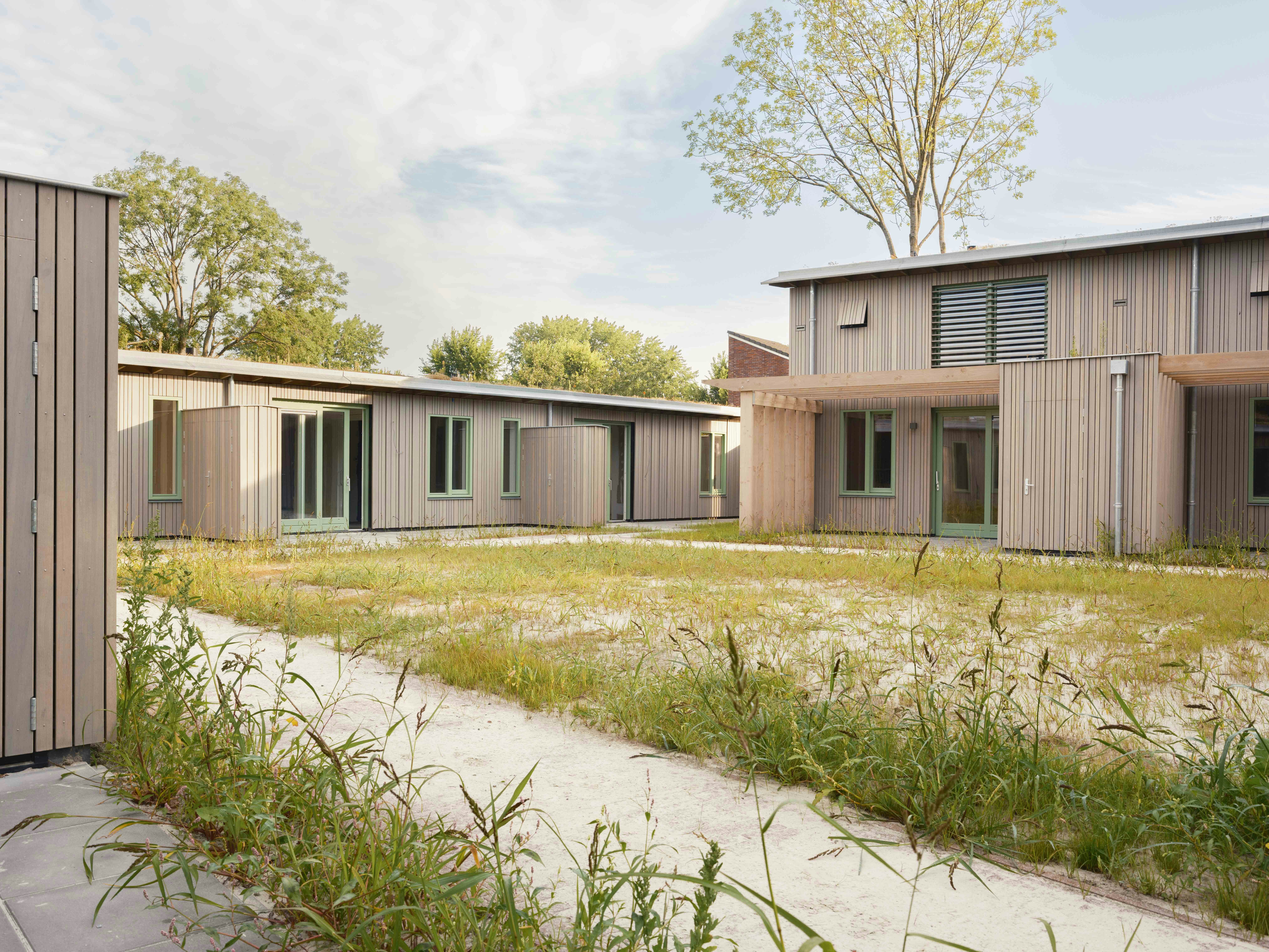 Het plan bestaat uit een hofjesstructuur met groenvoorzieningen, waaronder bomen, tuinen en sedumdaken. De woningen zijn uitgevoerd in houtskeletbouw en afgewerkt met fraké noir, een houtsoort uit duurzaam beheerde bossen. Het hout is voorvergrijsd en behoudt daardoor zijn kleur. De verticale nerfrichting bevordert de afvoer van regenwater en een gelijkmatige veroudering van het materiaal.