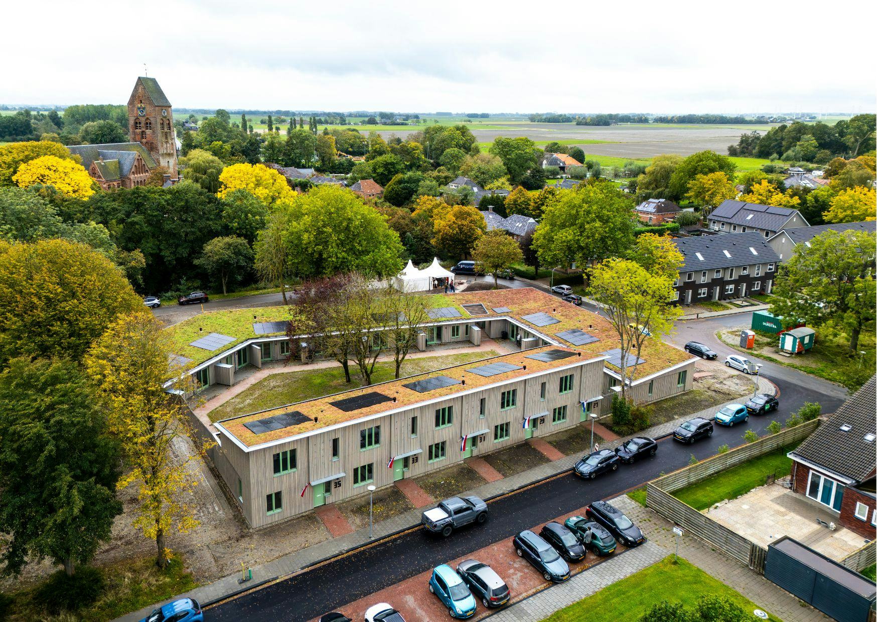 Het project omvat negen gelijkvloerse woningen met één slaapkamer en vijf gezinswoningen met twee slaapkamers. Elke woning heeft een eigen terras met een variërende mate van beschutting. Na de oplevering gaat Specht architecten met bewoners in gesprek over de invulling van het collectieve gebruik van het hof. Eerder stelde het bureau in opdracht van de gemeente Eemsdelta al een stedenbouwkundige visie op, waarin de verbinding tussen verschillende delen van het dorp en de aansluiting van groenstructuren centraal staat.