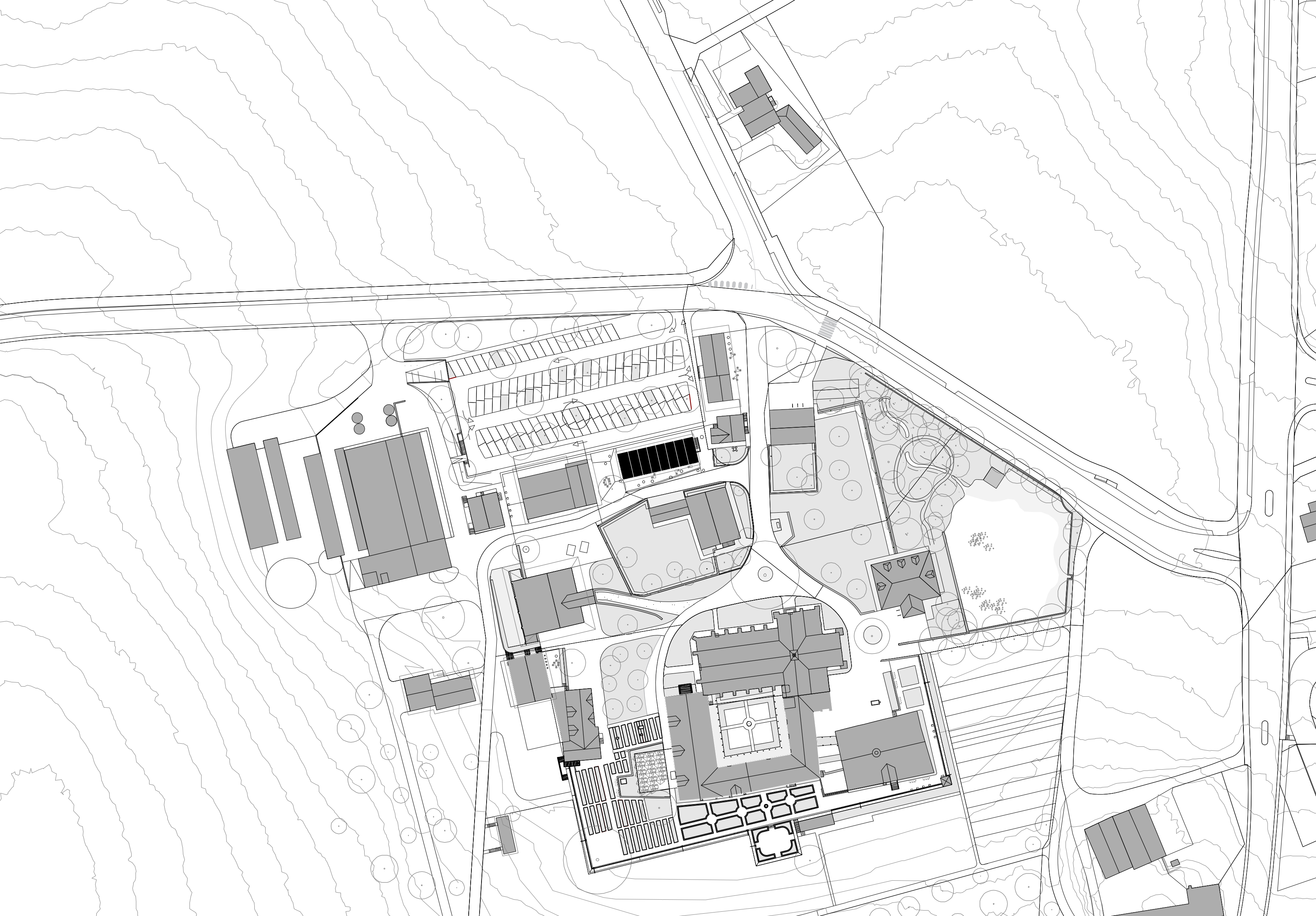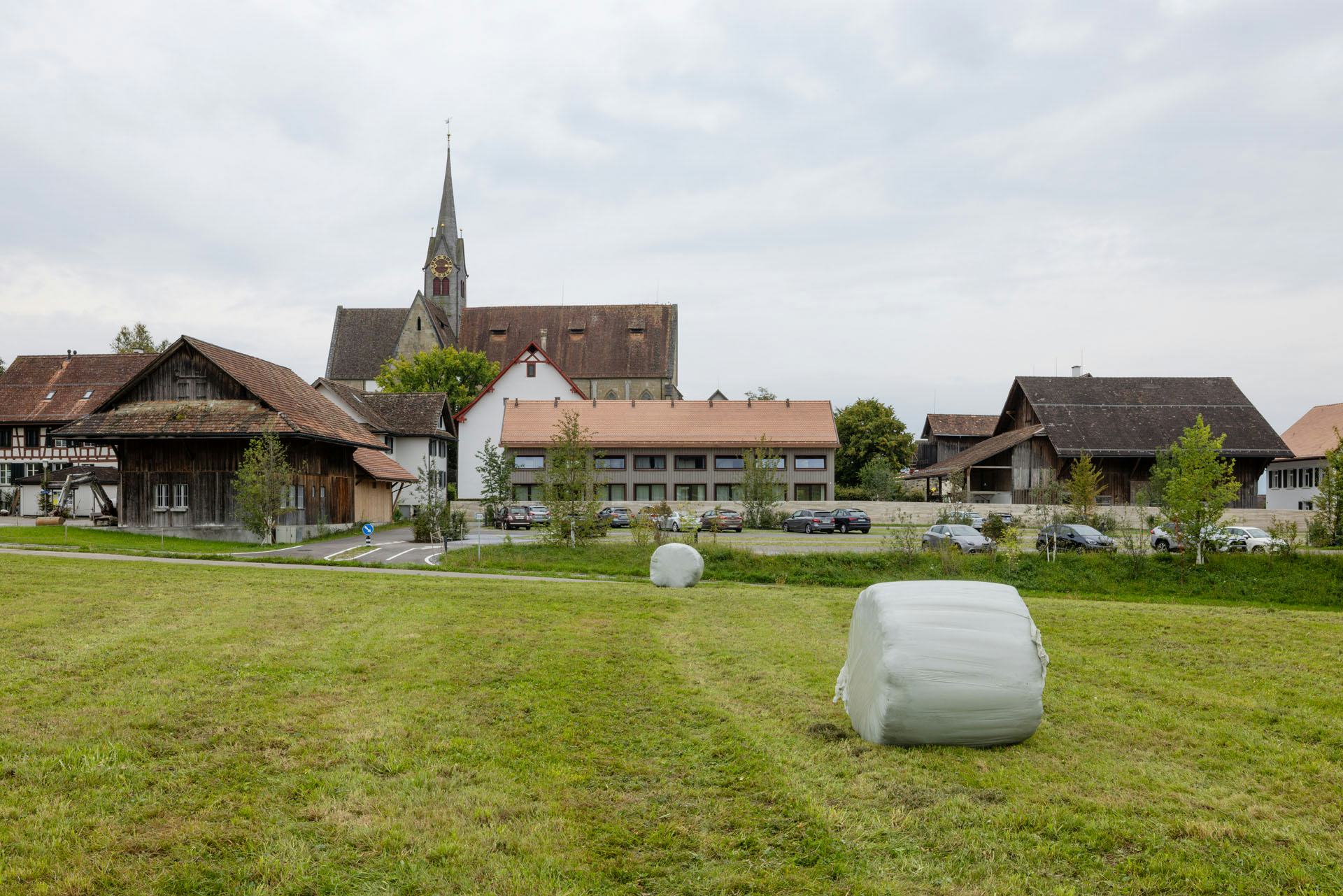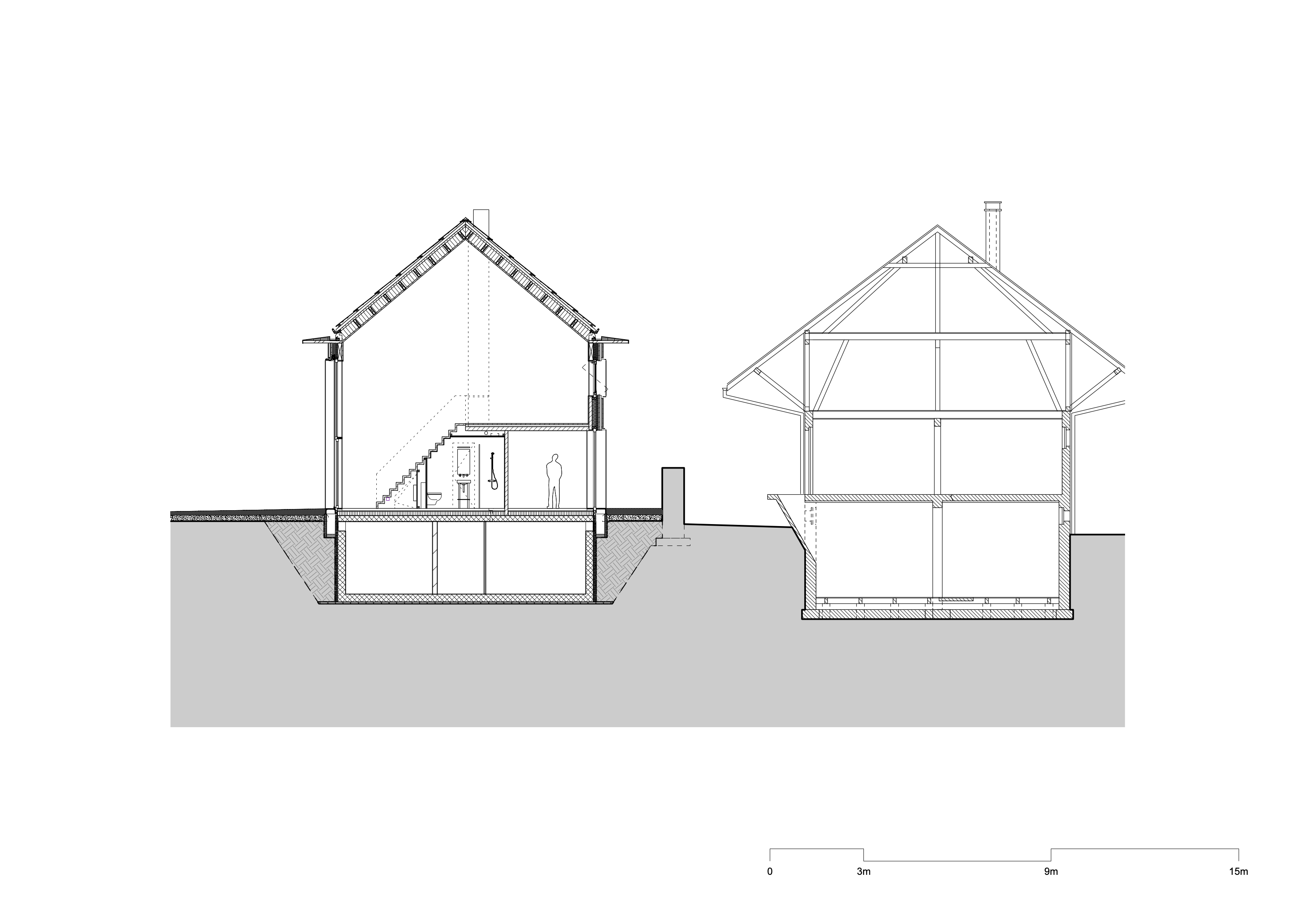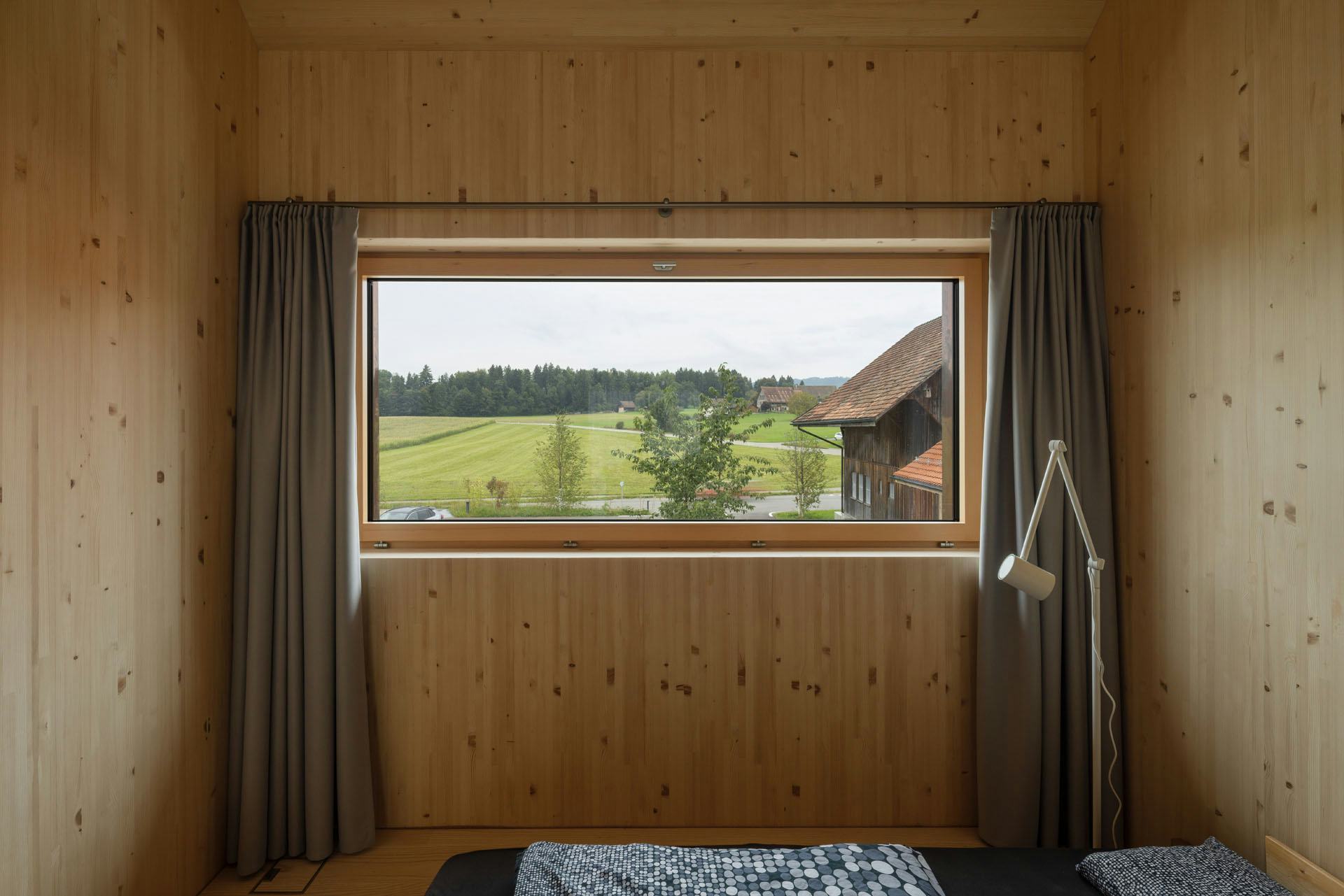 De woningen zijn uitgevoerd in houtskeletbouw met CLT-panelen, die ook het interieur bepalen. Wanden, plafonds en balustrades zijn van hetzelfde materiaal, aangevuld met ingebouwde kasten en planken. Alleen de begane grond en de kelder zijn van beton, afgewerkt met terrazzo. De gevels bestaan deels uit glas en deels uit houten latten. Koperen details markeren dakranden en raamopeningen; het dak is gedekt met rode pannen. Zo sluit het nieuwe gebouw aan bij de schaal en materialiteit van het kloostercomplex.