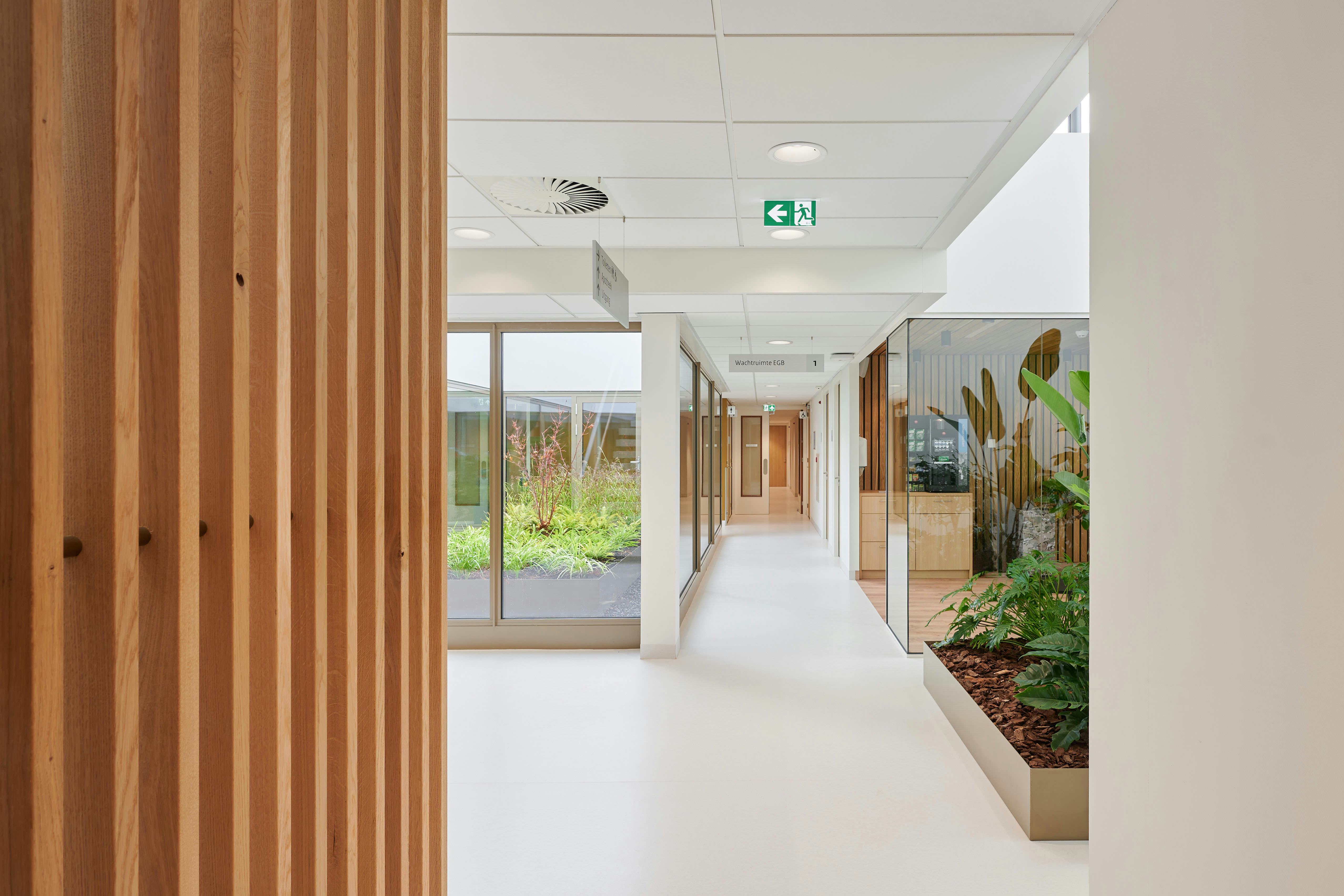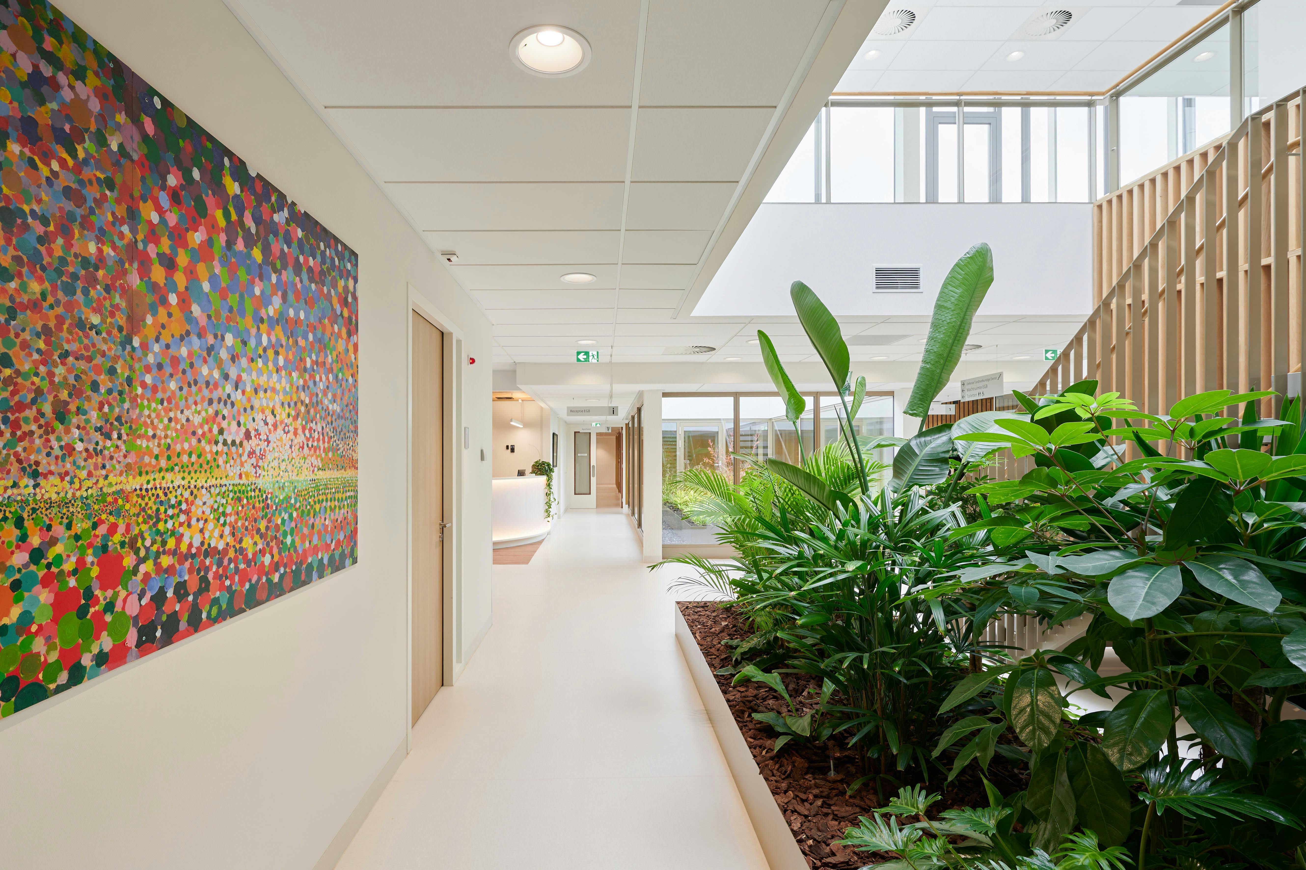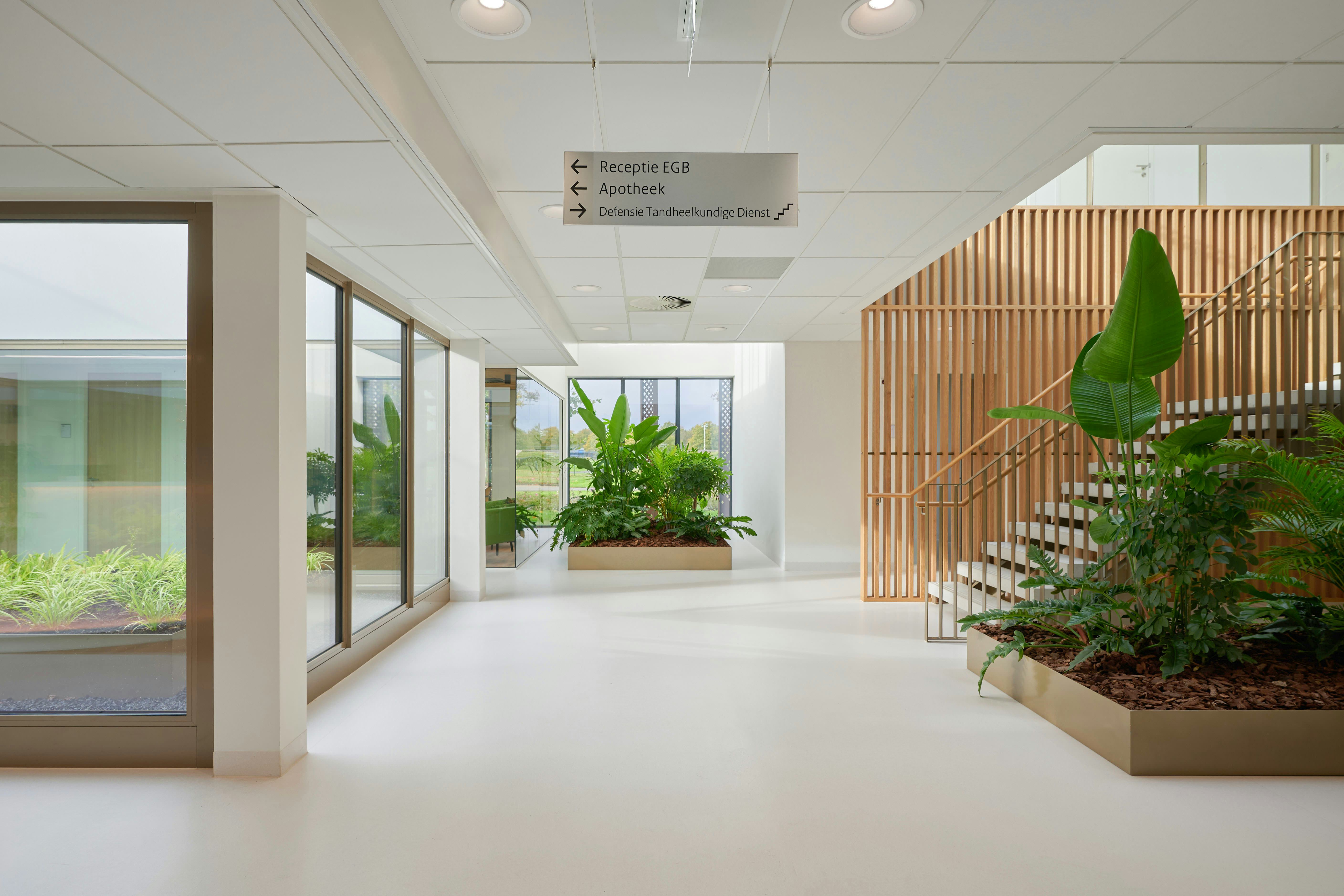 De binnenruimte kenmerkt zich door glaspuien en doorkijkjes tussen verdiepingen. De hydrocultuurtuinen in het atrium en de patio zorgen voor groen. Materialen zoals hout en steen zijn toegepast. Het gebouw biedt een werkomgeving voor zorgmedewerkers en ondersteunt het herstel van militairen.