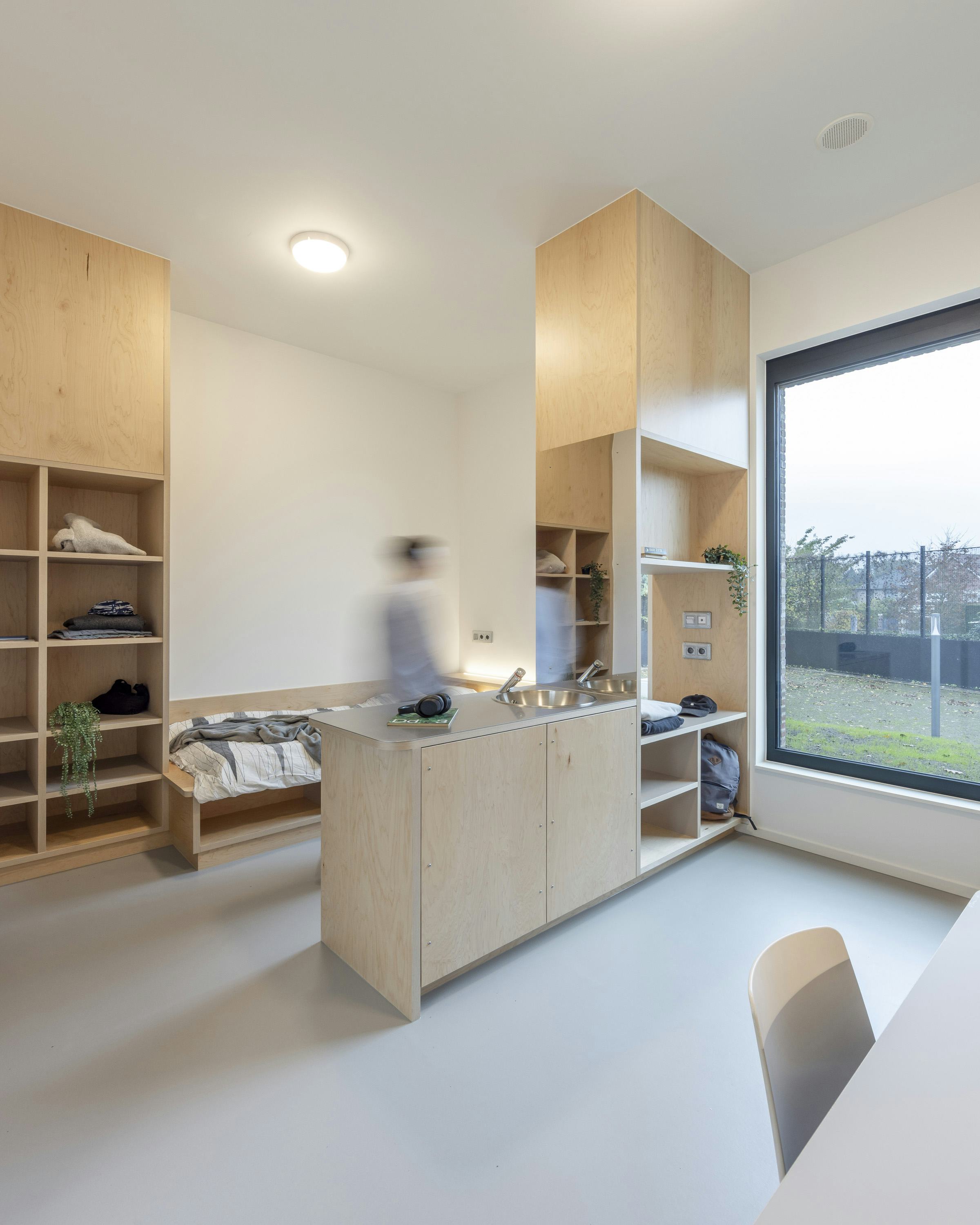Het ontwerp zorgt voor een omgeving waarin jongeren zich op hun gemak voelen. Het woongebouw heeft leefruimtes voor activiteiten en plekken om zich terug te trekken. Elke jongere heeft een eigen kamer die als studio is ingericht. Het gebouw heeft veel licht, ruimte en zicht op groen.