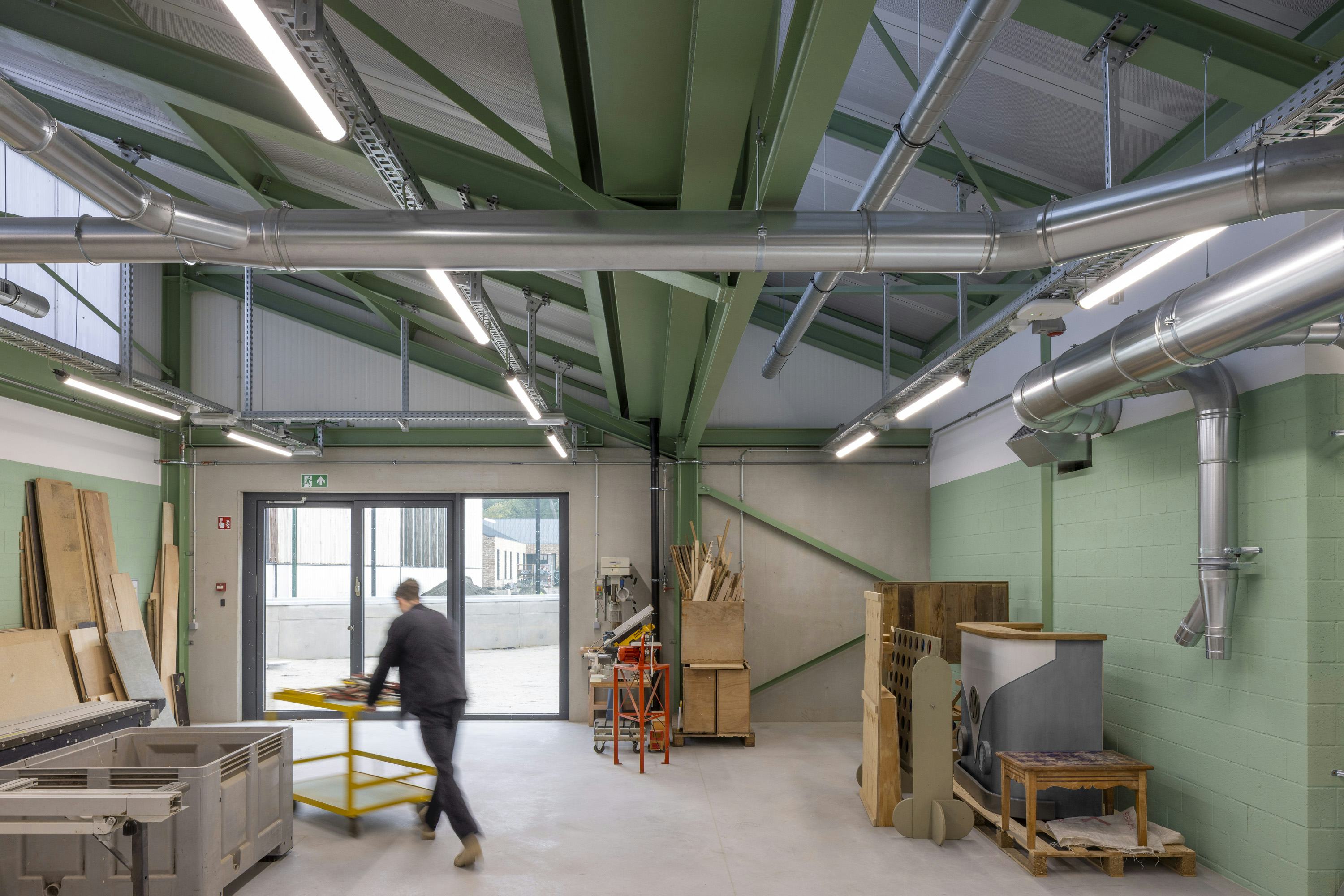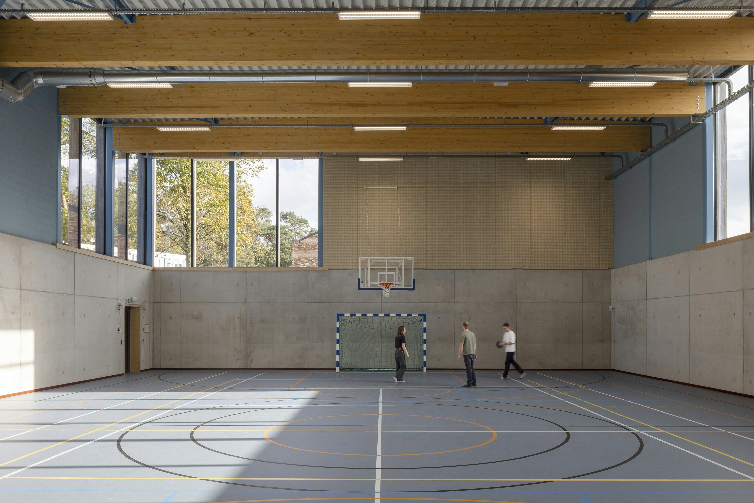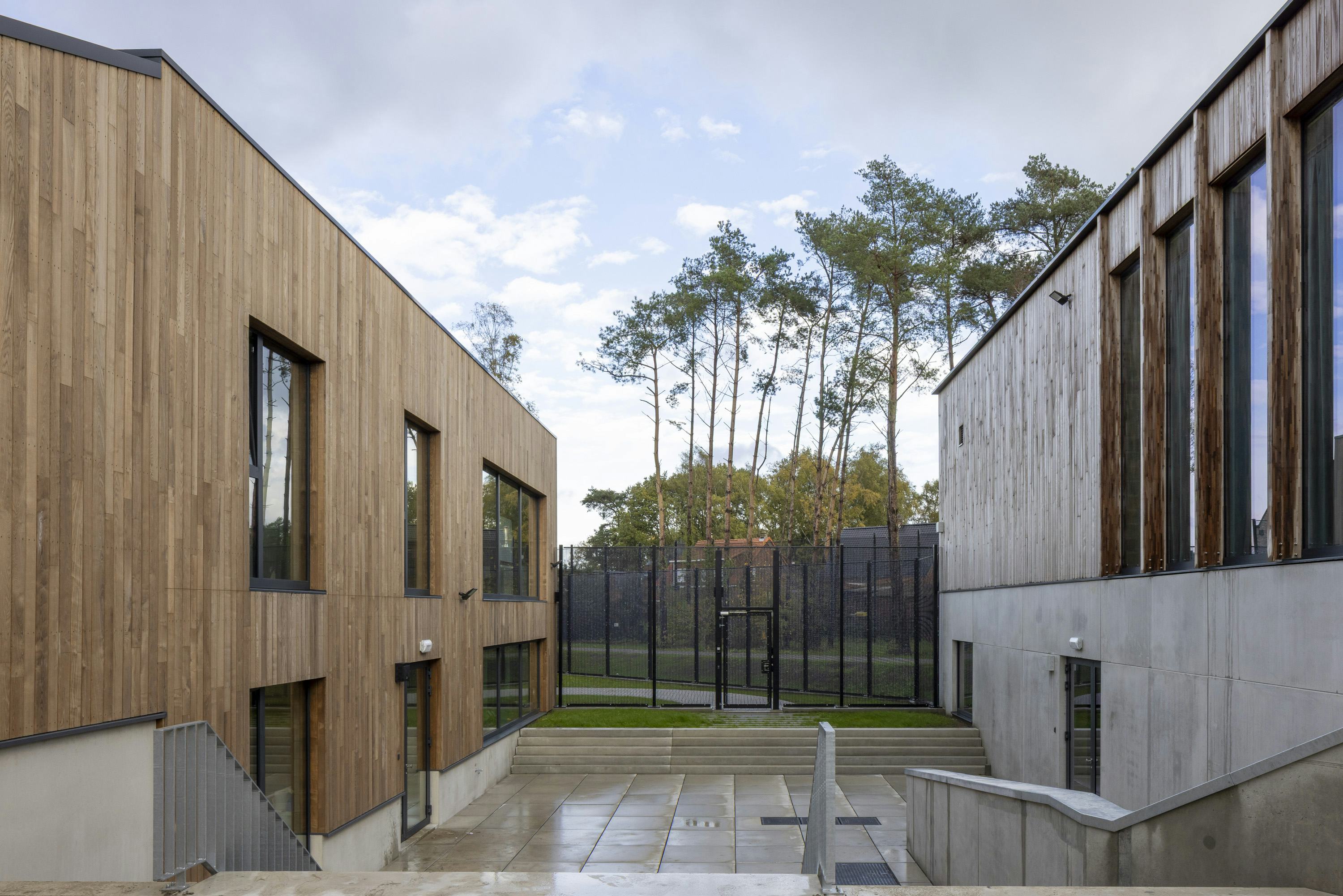 Het sportgebouw heeft een sporthal, fitnessruimte en dojo. Het onderwijsgebouw bevat ateliers voor hout- en metaalbewerking, een horecaklas en theorielokalen. Beide gebouwen zijn bereikbaar vanaf het centrale plein. De woongebouwen zijn afgewerkt met baksteen, de sport- en onderwijsgebouwen hebben houten geveldelen. Warmtepompen voorzien de campus van energie.