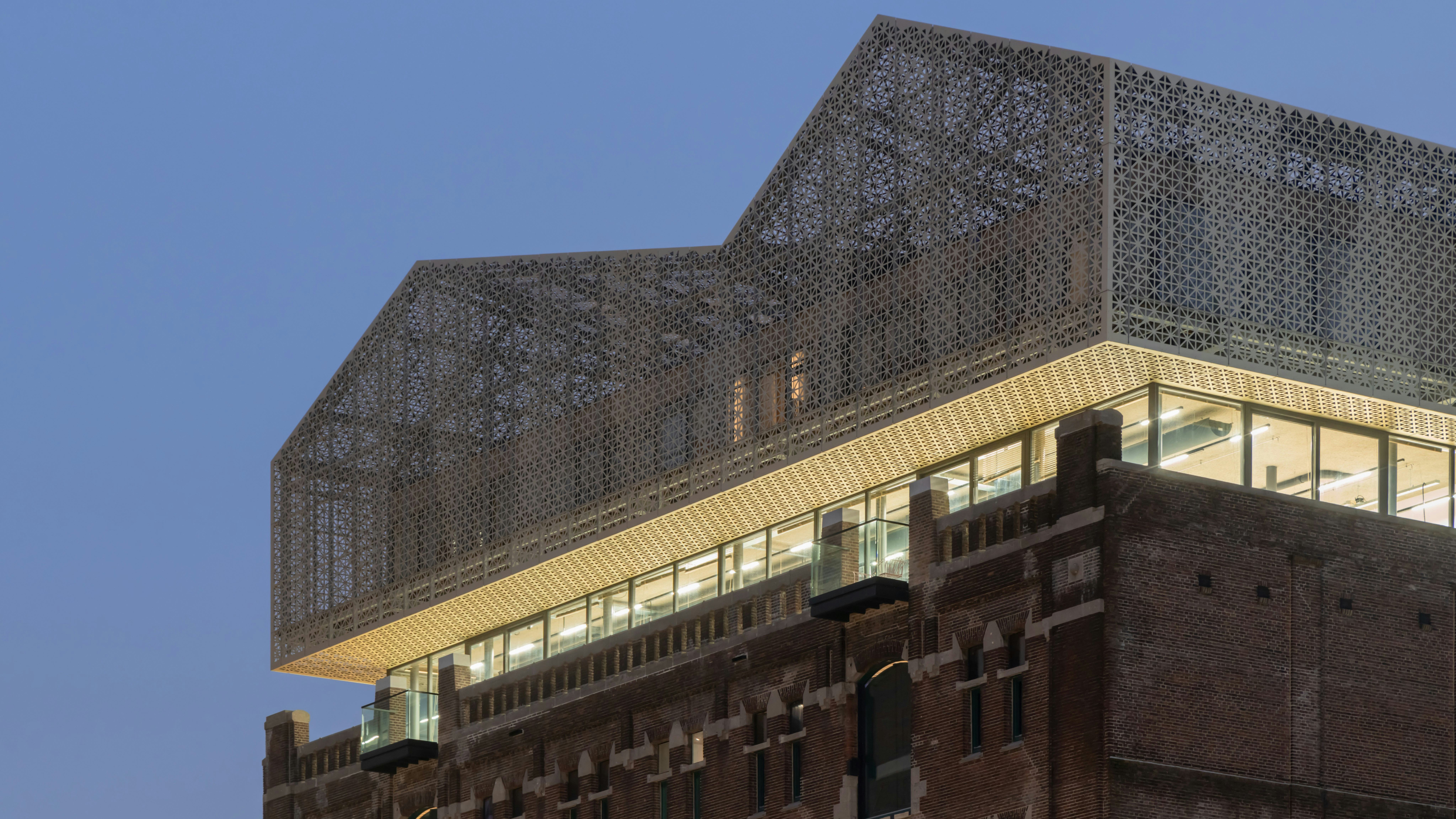 Natuurlijk zijn er vides en indrukwekkende trappartijen, maar vooral de kap van gevouwen en geperforeerde aluminium met asymmetrische punten trekt mijn aandacht. Maar daar zal ik wellicht niet komen. Daaronder bevinden zich dure short-stay appartementen, zo las ik in de review van Tracy Metz.