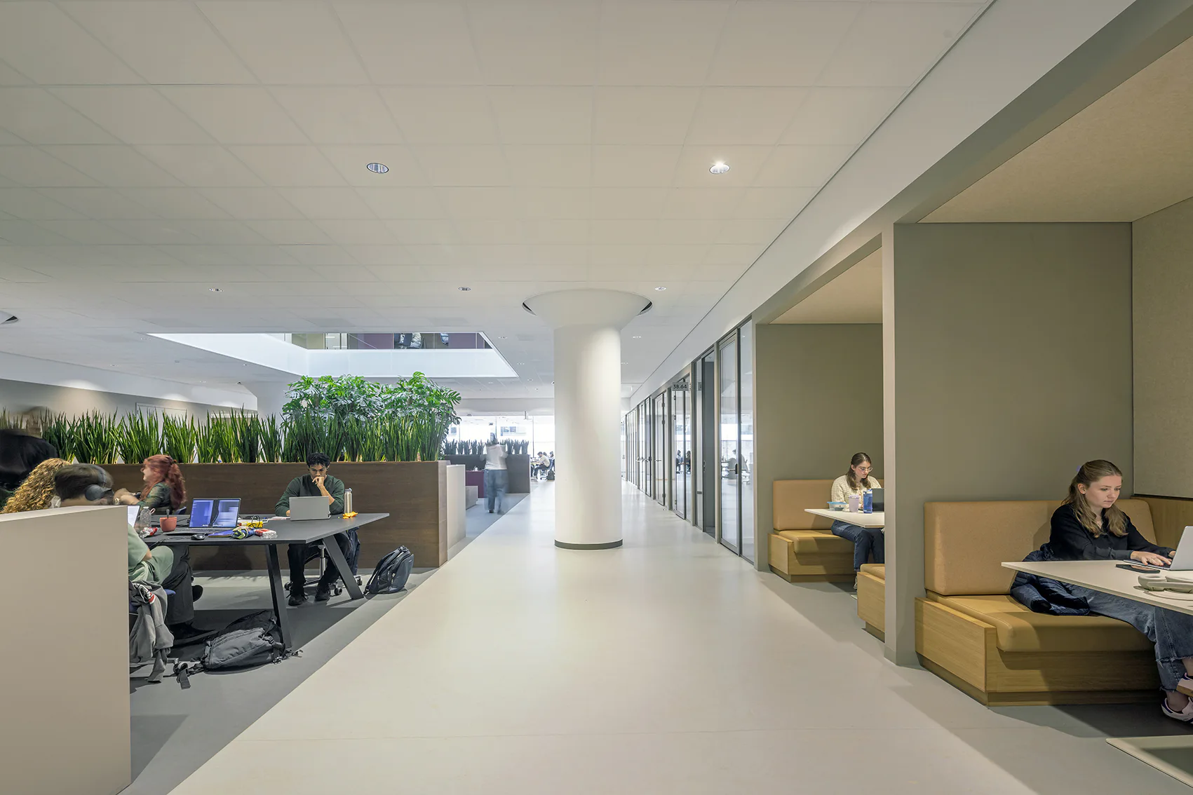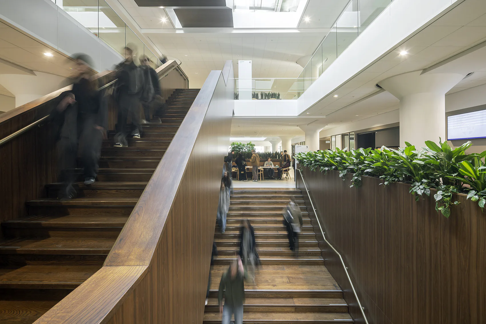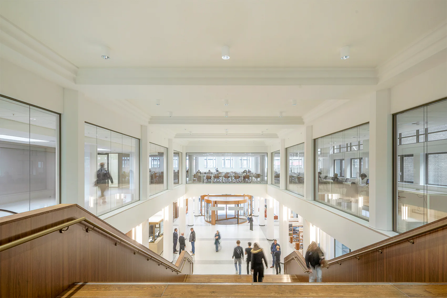 Het materialisatieconcept sluit aan op de karakteristieken van het gebouw als verbindend element voor alle instellingen. De hoofdroute is uitgevoerd in donker hout, geïnspireerd op de lambriseringen van het monumentale bouwdeel. De zones van de afzonderlijke instellingen zijn herkenbaar gemaakt door kleuraccenten en tegeltableaus - met als leidend principe: 'geen winkelcentrum, maar een warenhuis.' Het project is in 2026 opgeleverd.