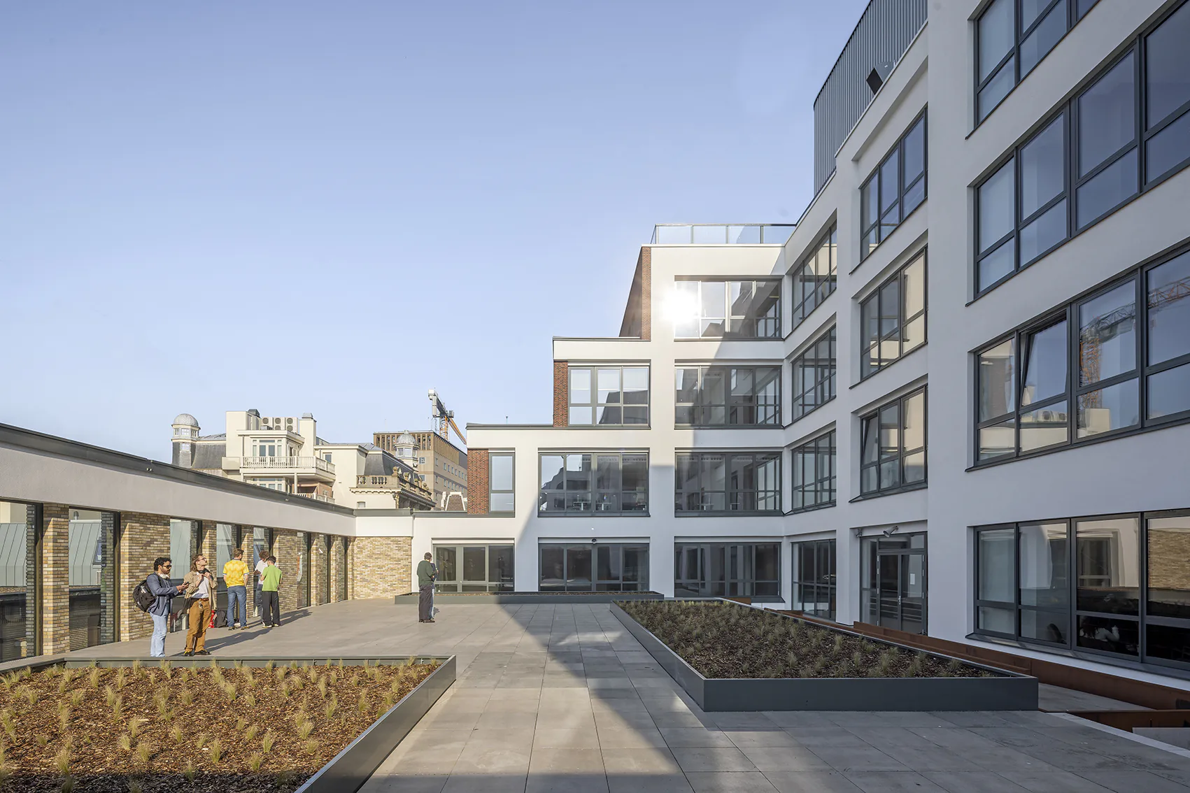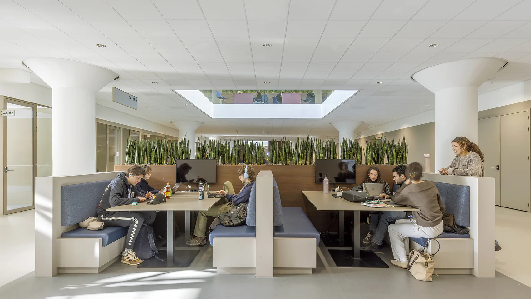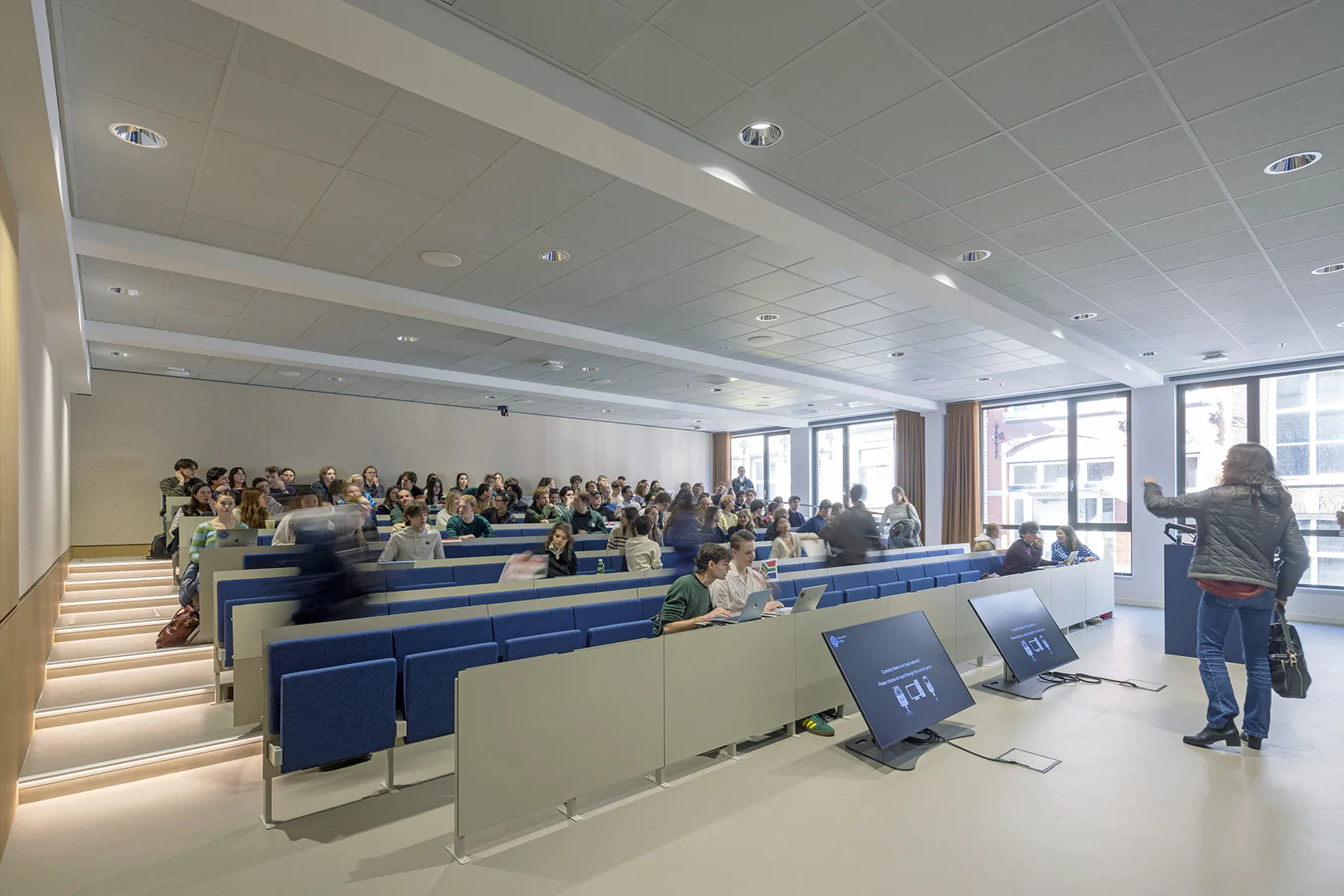 De renovatie richtte zich op het geschikt maken van het gebouw voor onderwijs en onderzoek. De gevel aan de Grote Marktstraat werd geopend voor daglichttoetreding, de monumentale gevels zijn hersteld en de entree aan het Spui heeft zijn oorspronkelijke verschijning teruggekregen - inclusief de gebouwnaam in bronzen letters. Een centrale route verbindt de verschillende functies: vanuit de entreehal met terrazzovloer leidt een trap bezoekers langs de originele constructie naar de collegezalen op de eerste verdieping, via een restaurant op de tweede verdieping naar de onderwijsruimten daarboven. Op de derde tot vijfde verdieping zijn rond een centraal studieplein onderwijszalen gerangschikt, waarbij de installaties in een ring zijn geplaatst zodat de paddenstoelkolomkoppen weer zichtbaar zijn. Het gebouw wordt afgesloten met een studentencentrum en een bestuurskamer met uitzicht op de Binnenhof en het Malieveld.