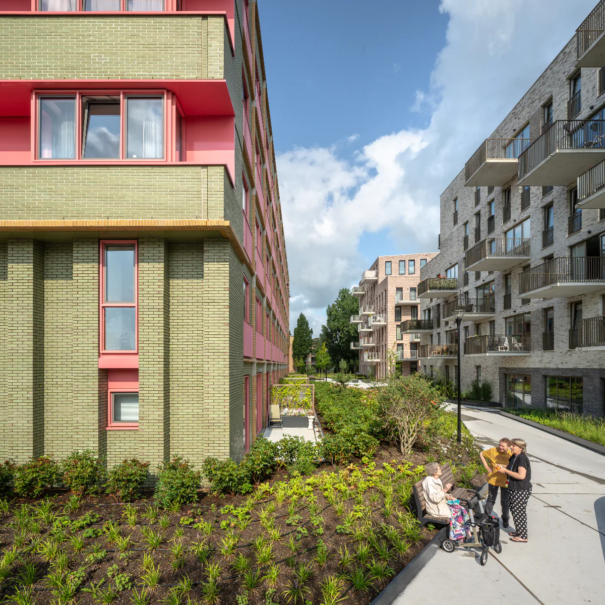Een belangrijk onderdeel van de wijk is de Groene Duin, een buitenruimte die tevens het dak vormt van een ondergrondse parkeervoorziening. Rond deze ruimte staan vijf appartementengebouwen, terwijl bestaande aanleunwoningen behouden zijn gebleven. De gebouwen zijn ontworpen door Monadnock, Zecc, Egm, Inbo en Bybali en verschillen in vorm en uitstraling. Ze zijn ingebed in een landschap met hoogteverschillen en wandelpaden.