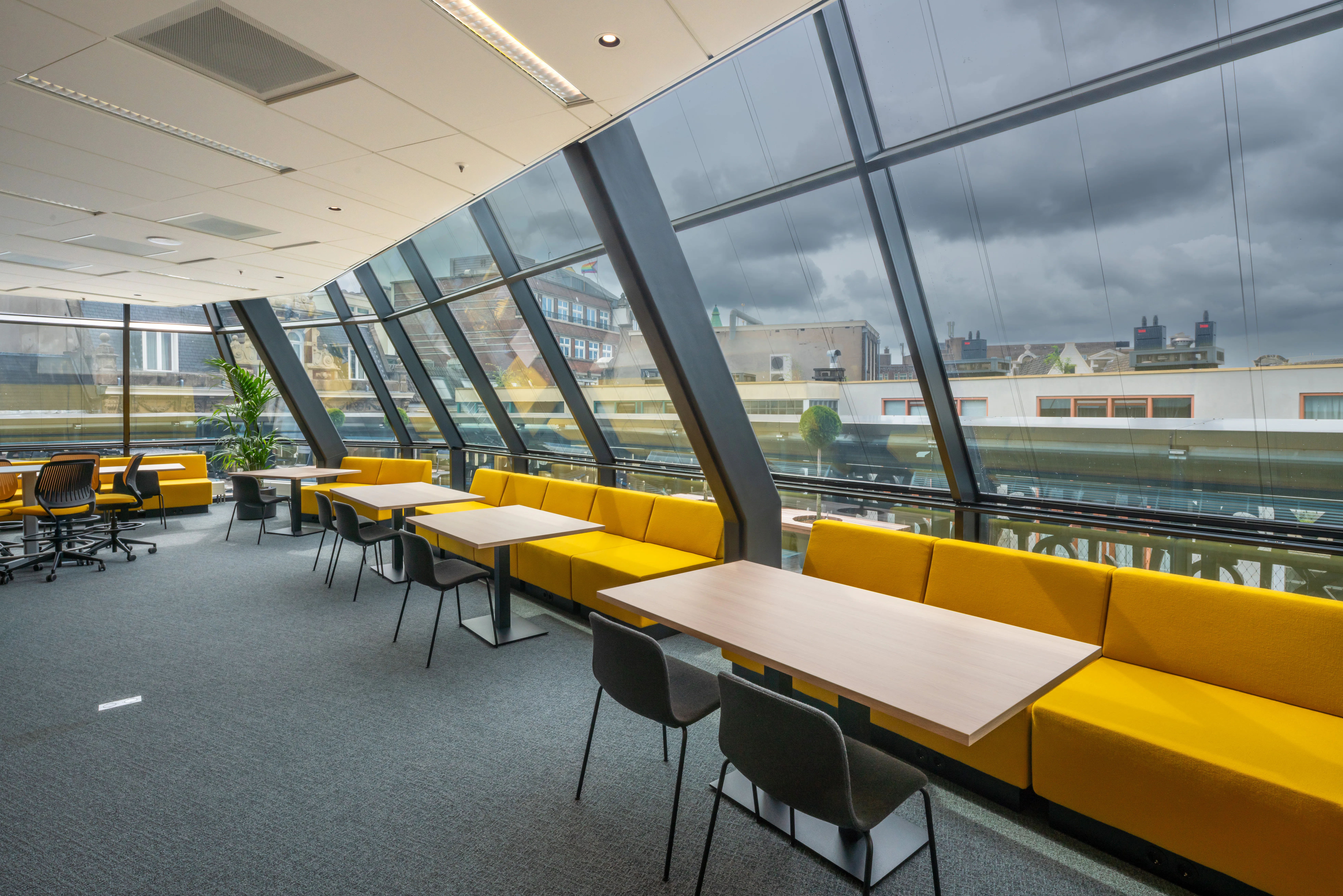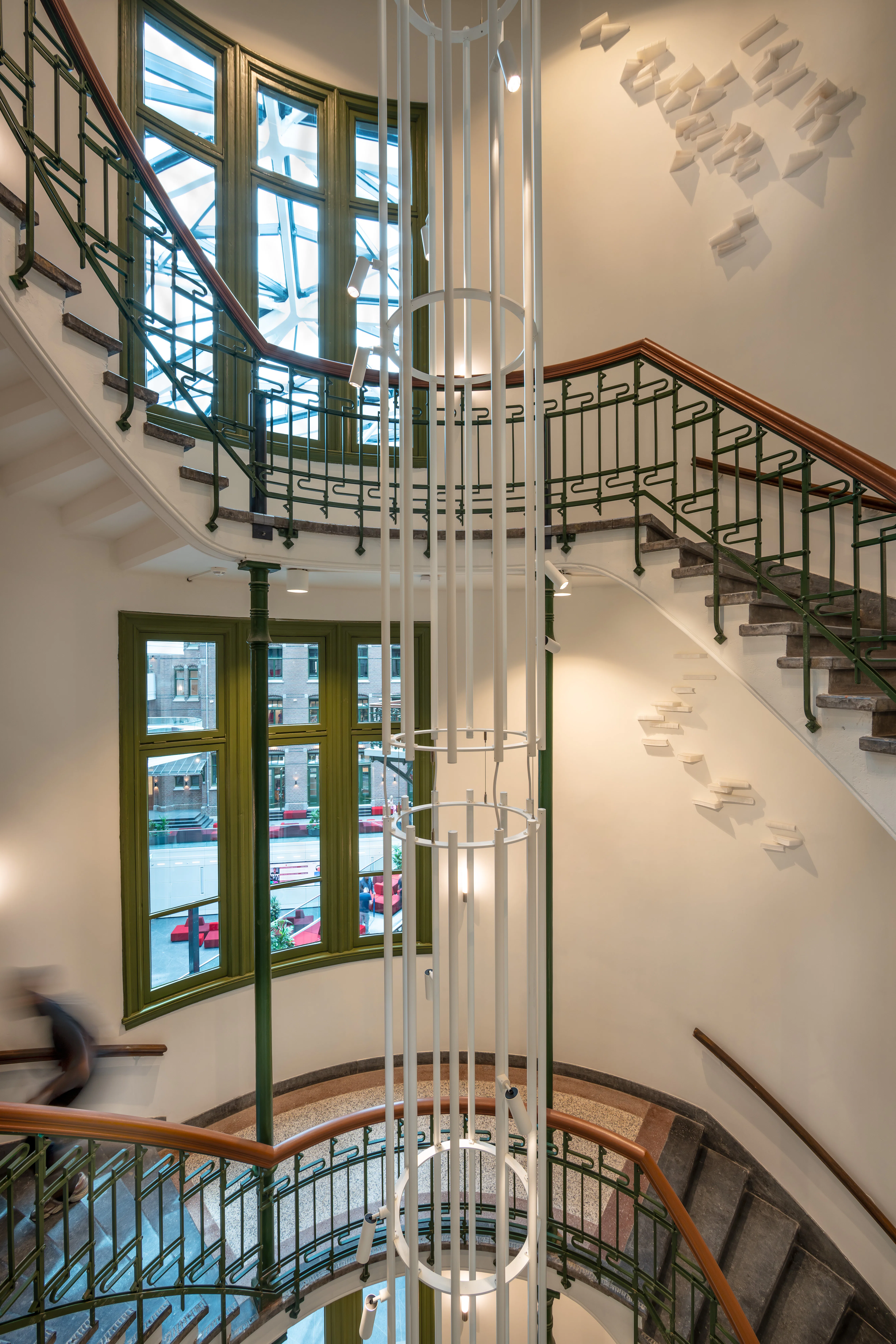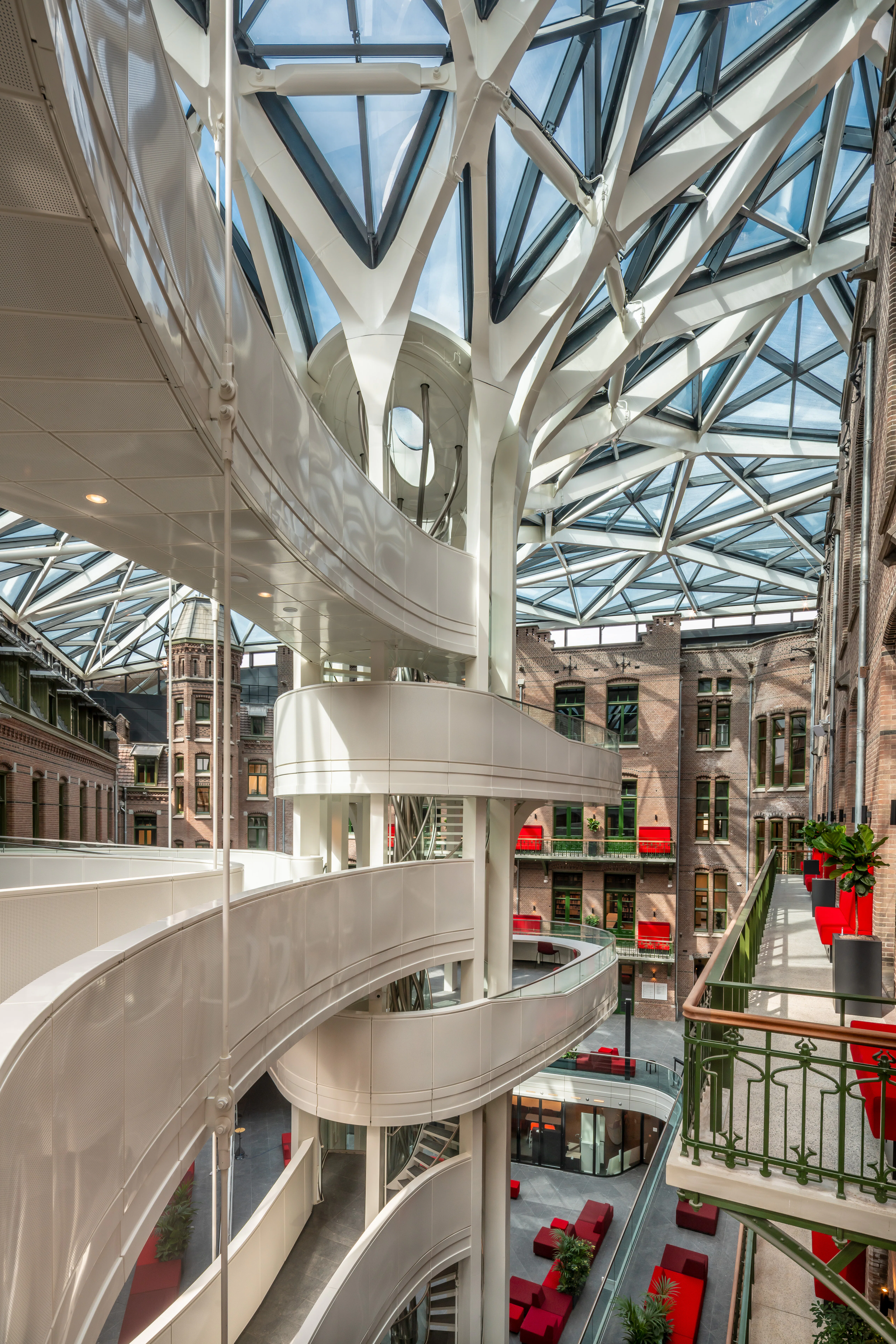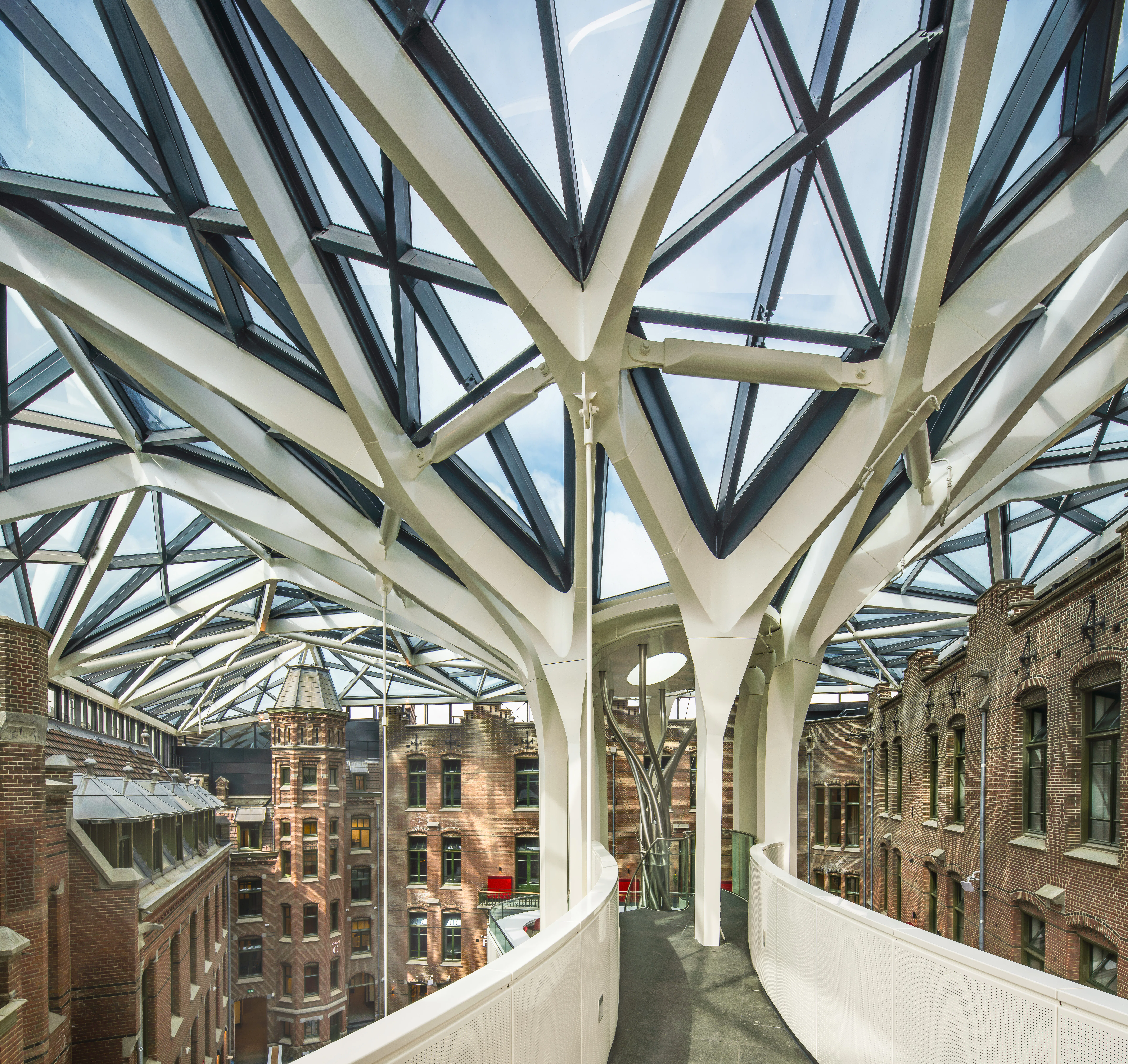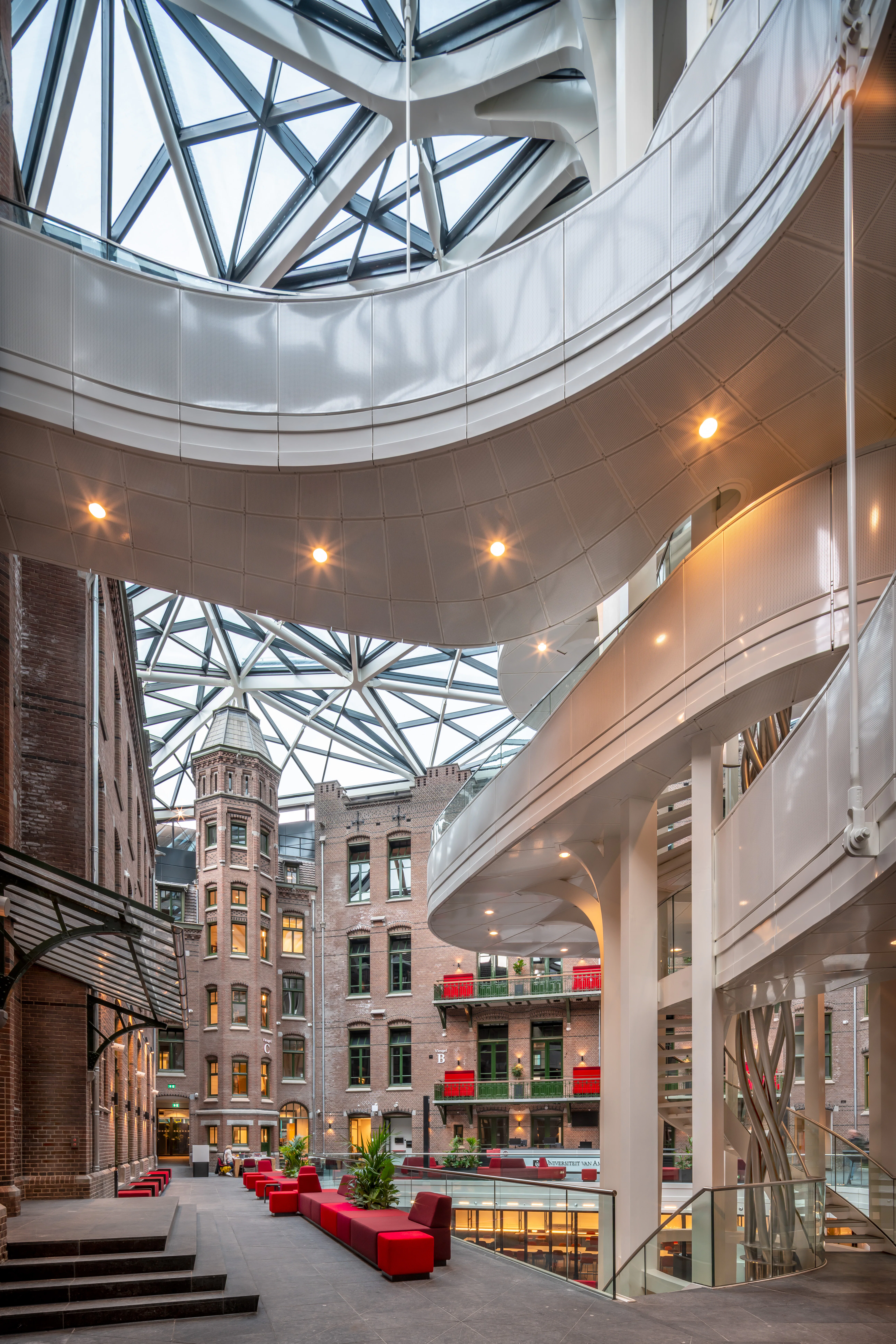 De kern van het vernieuwde complex is een overdekt atrium, dat de vroegere binnentuin beslaat. Het atrium wordt overkapt door een glazen dak, gedragen door een constructie van wit staal. Doordat deze constructie vrijstaat van de bestaande bebouwing, hoefden er geen zware ingrepen in de monumentale oudbouw te worden gedaan. In het atrium bevinden zich een infobalie, studie- en collegezalen en ruimte voor lezingen en tentoonstellingen. In de kelderverdieping zijn een uitleenbalie en een stalling voor 900 fietsen ondergebracht. De oude ziekenzalen van het Zusterhuis zijn omgebouwd tot 1100 studieplekken, aangevuld met projectruimtes en samenwerkruimtes.