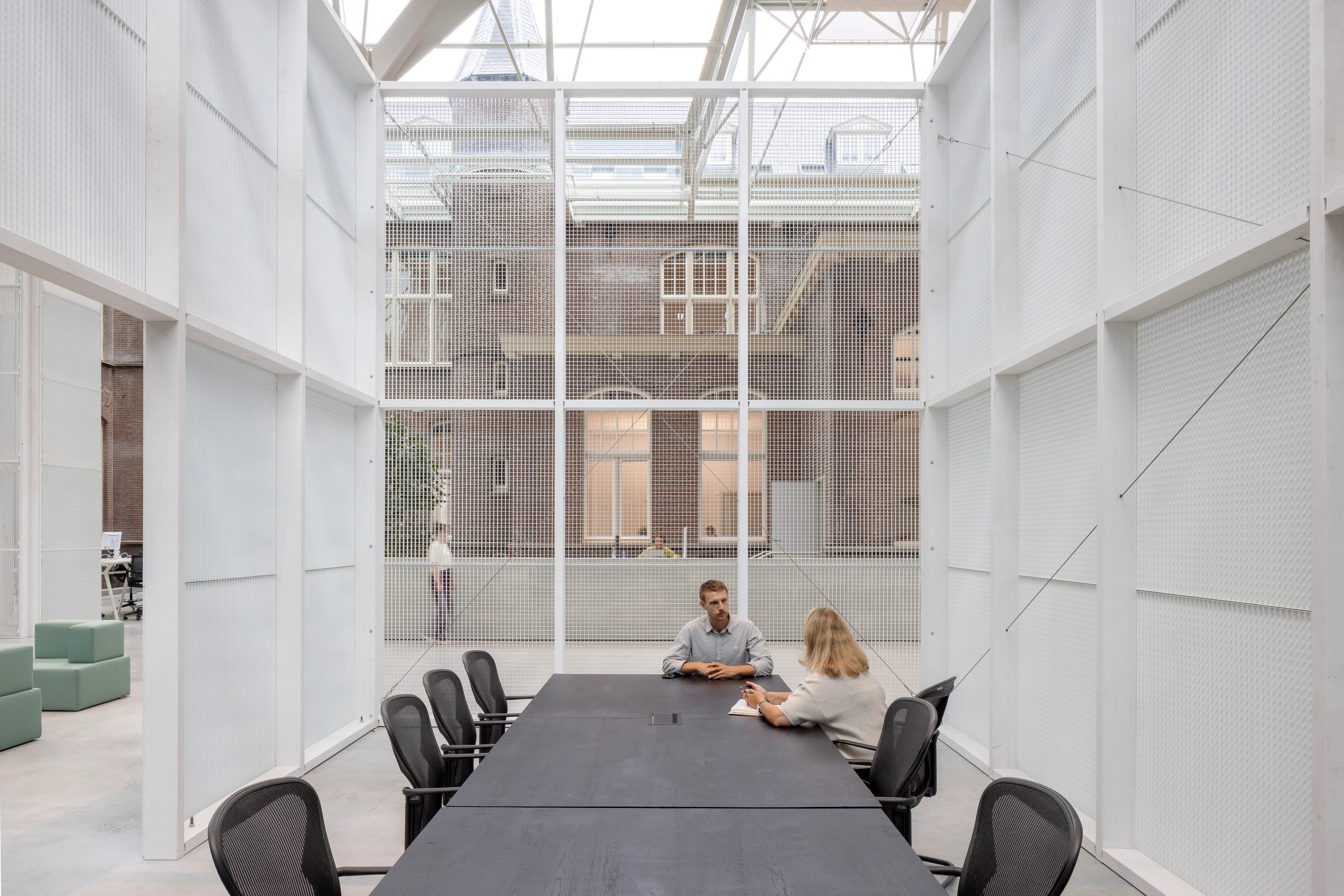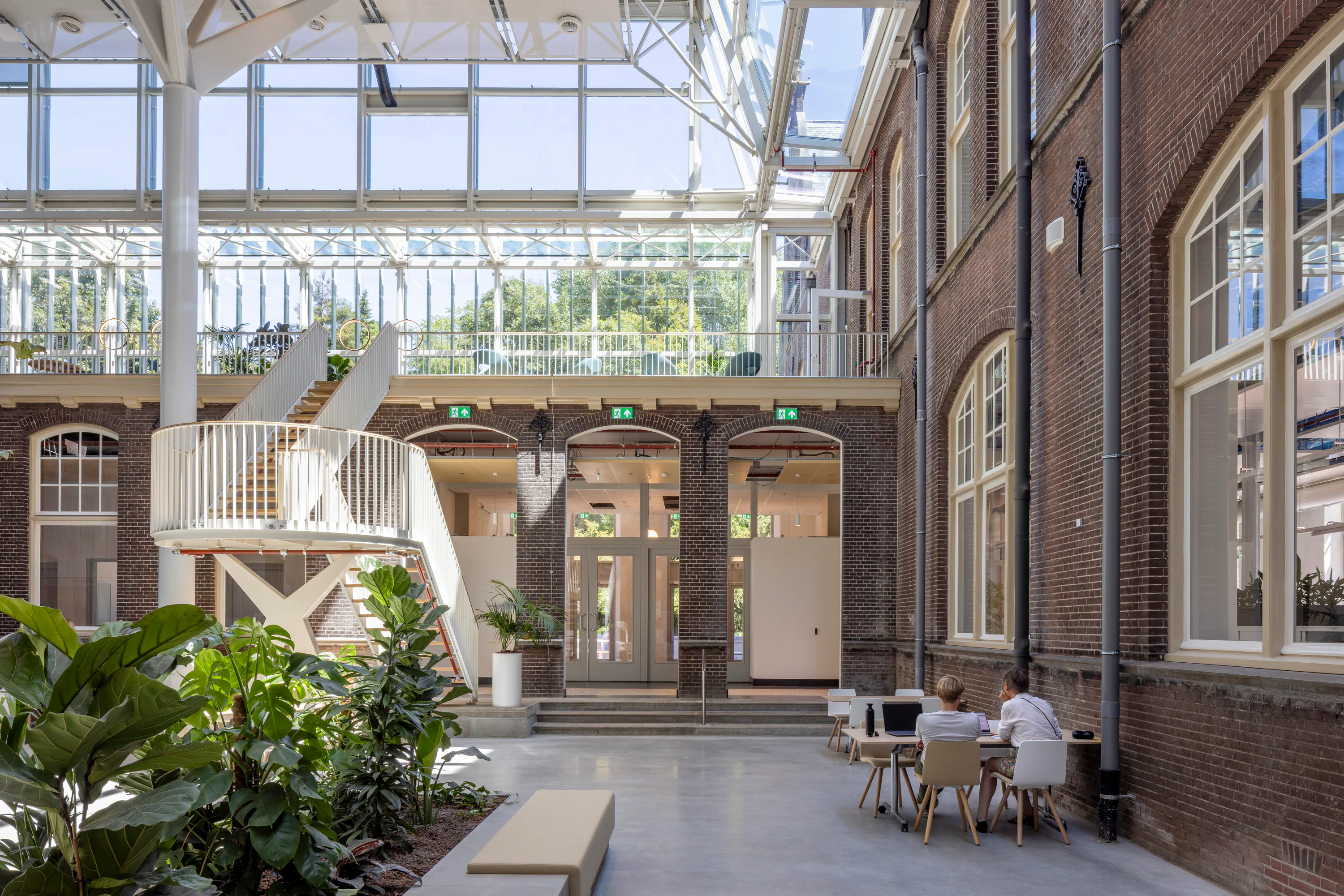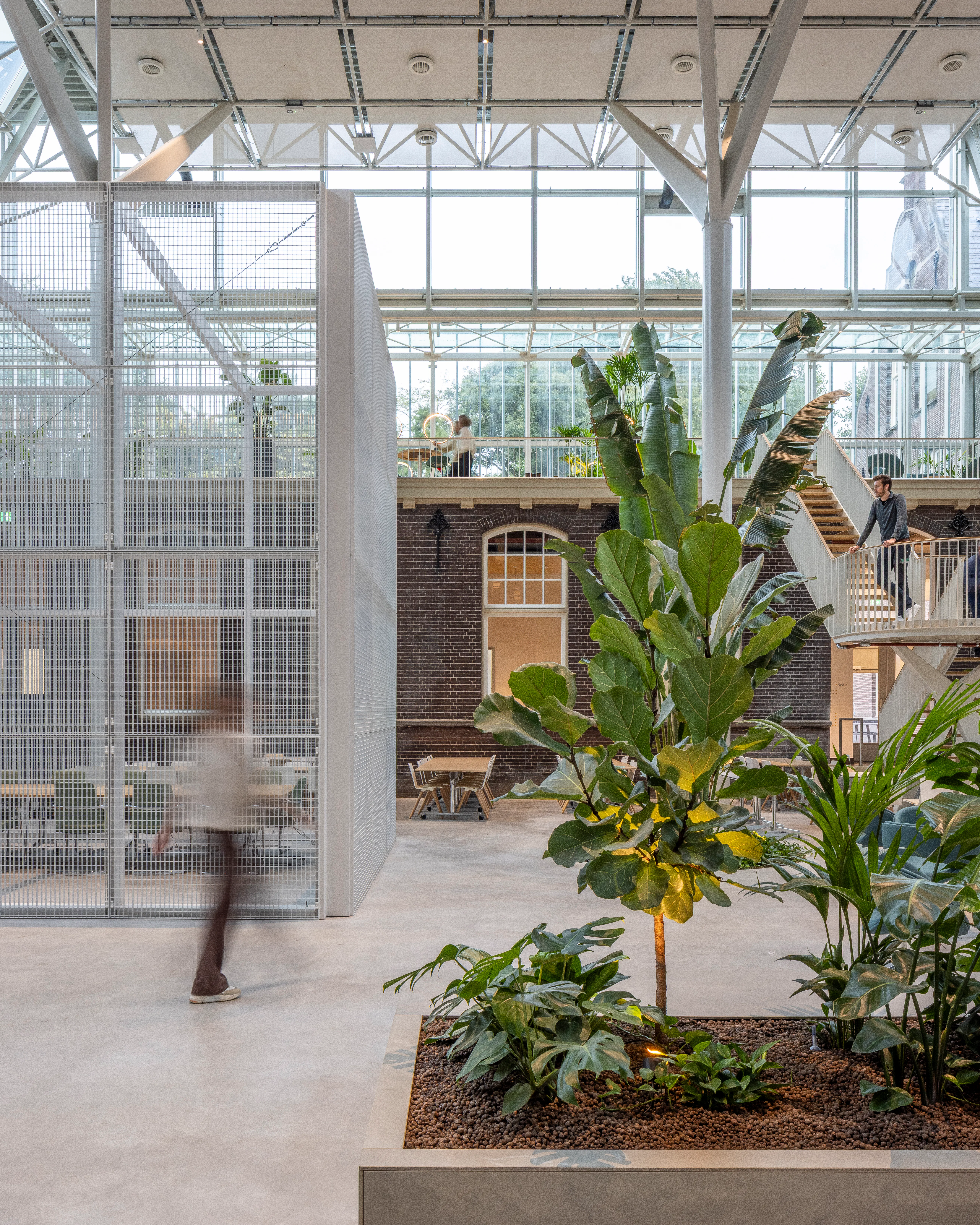Het gebouw kenmerkt zich door een neorenaissance-stijl met een functionele indeling en twee open binnenhoven die oorspronkelijk zorgden voor lichtinval en ventilatie. In de transformatie zijn deze hoven overkapt met transparante glazen daken en omgevormd tot atria, die nu functioneren als het ruimtelijke hart van het kantoor. De overkapping is als zelfstandig element op zolderniveau aangebracht, los van de bestaande constructie, zodat de historische gevels en kapconstructies zichtbaar blijven. Eén atrium is ingericht als sociale hub met eet- en lunchplekken, het andere als werkruimte met flexwerkplekken.