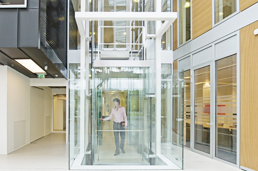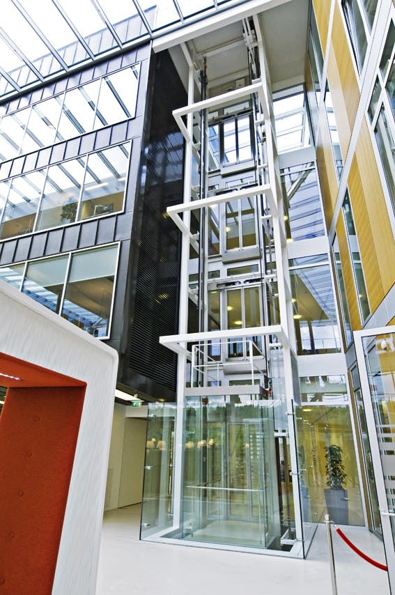 Vanaf de A13 is het pand met de vide en de liften goed zichtbaar. Möhringer is erg trots op dit referentieproject.