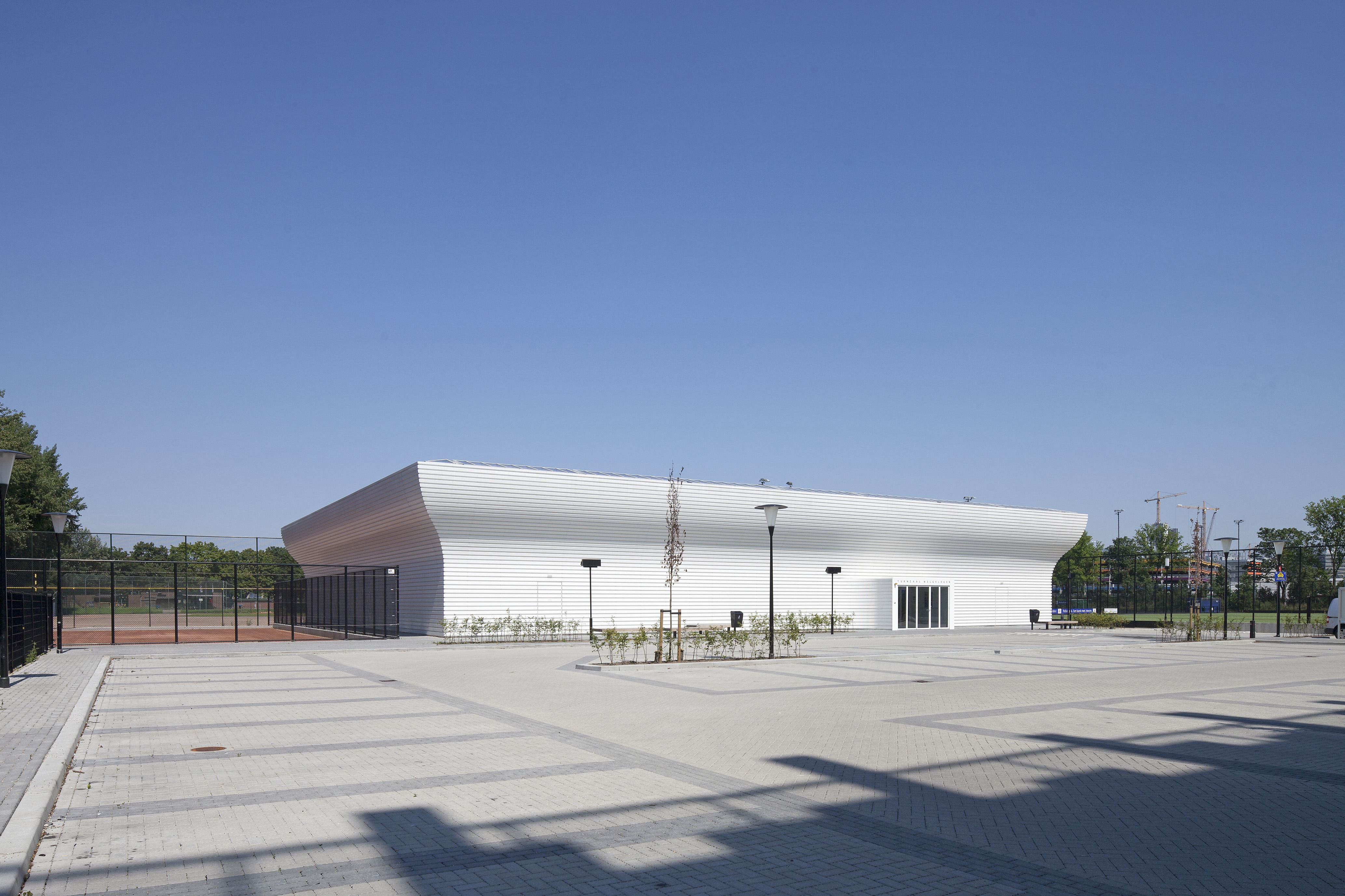 Het eenvoudige plan van NL Architects voor de huisvesting van vier turnverenigingen in Nieuw Welgelegen (TNW) bestaat uit drie zones. Direct aan de entreezijde van het gebouw biedt een smalle gang toegang tot de tweede zone van het gebouw: een facilitair blok van twee verdiepingen. Dit volume, waarin de kleedkamers, de technische ruimtes en opslag een plaats hebben gekregen, vormt de buffer tussen de buitenwereld en de grote en lichte turnzaal.