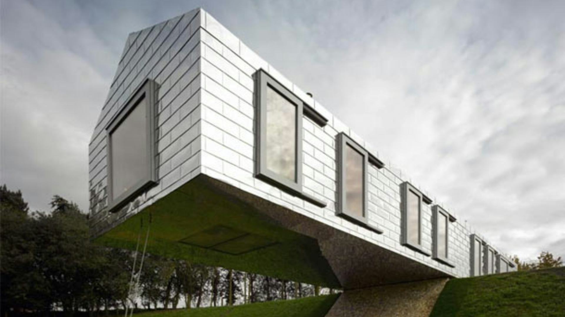 Wie nog een spectaculair vakantieadres zoekt kan vanaf deze maand terecht in de 'Balancing Barn' van MVRDV in het Engelse Suffolk. De voor de helft uitkragende woning ligt bij een meertje in de buurt van Thorington. Het huis houdt zichzelf in balans, waardoor het hangende gedeelte volledig vrij is. De 'schuur' is 41 meter lang en 5,5 meter breed en heeft 8 slaapplaatsen.