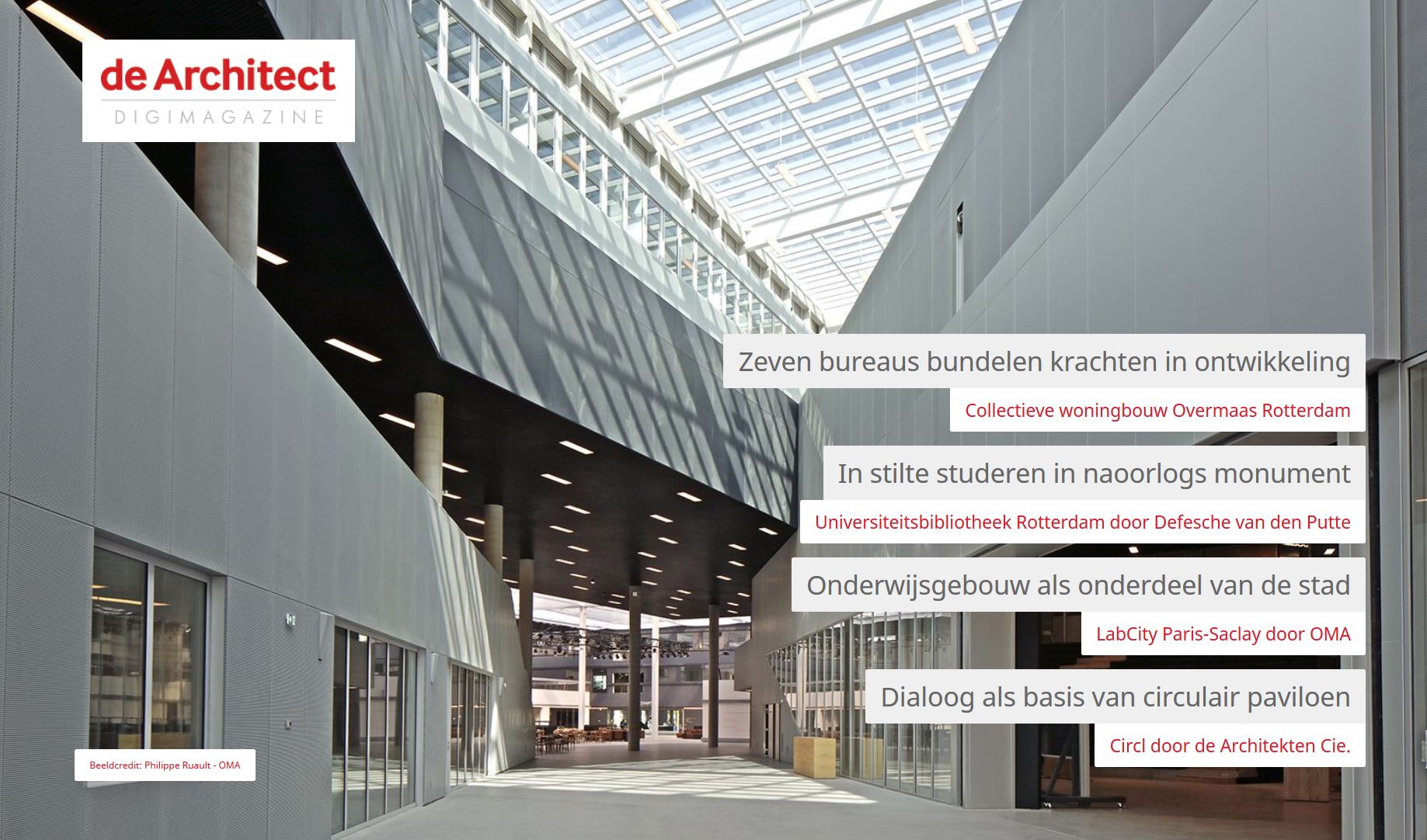 Het vak van architecten is in beweging, zo blijkt uit het nieuwe Digimagazine van de Architect. Natuurlijk blijven architecten gebouwen ontwerpen, maar de manier waarop ze dit doen en de rollen die ze daarbij op zich nemen zijn voortdurend aan verandering onderhevig.