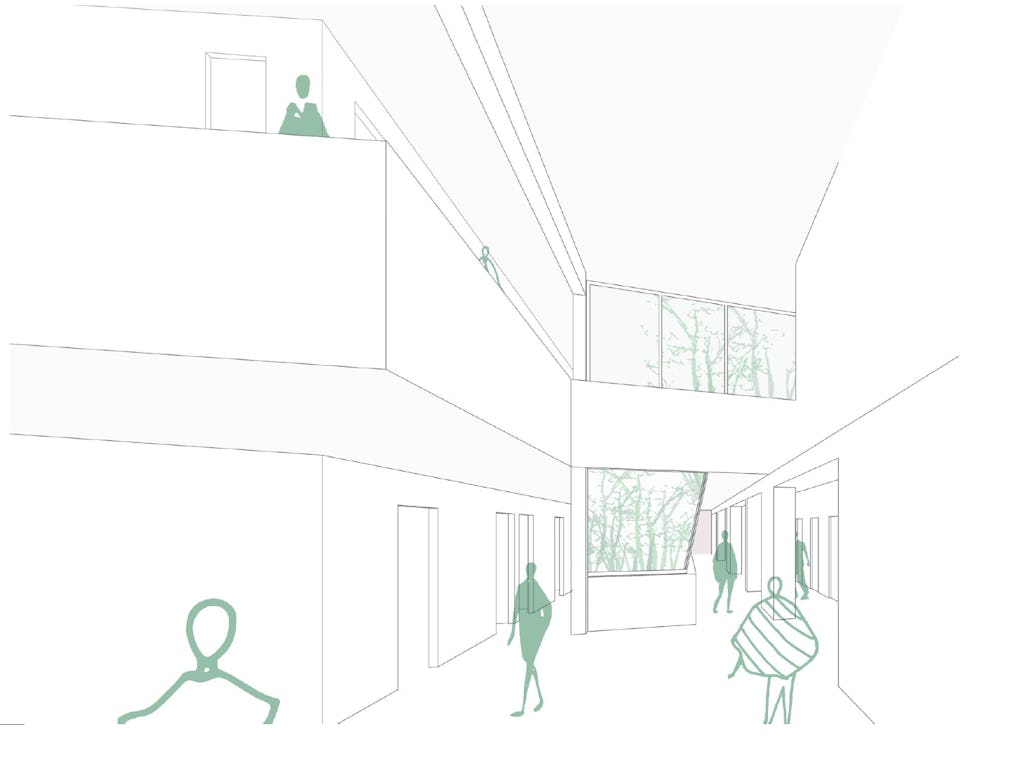 In de ontwerpstudie Duvel sociale ruimte onderzoekt AWAA de ruimtelijke mogelijkheden om binnen de nieuwe richtlijnen elkaar te ontmoeten en uit te wisselen. Centraal in het voorstel staat de manier waarop mensen circuleren via ruimtes die een sterke architectonische ervaring bieden.