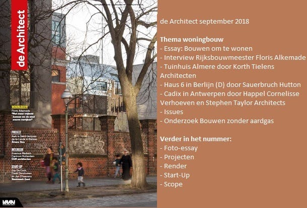 Vandaag verschijnt de Architect van september 2018 met daarin Woningbouw als centraal thema. In dit nummer besteden we ruim aandacht aan de woningopgave en de rol van architecten hierbij.