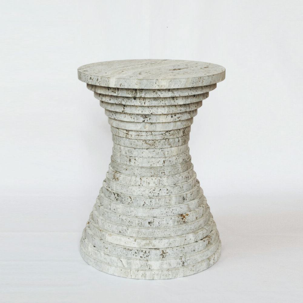 in 2017 ontwikkelde ik een techniek waarmee ik op duurzame wijze plaatmateriaal kon omzetten tot holle, maar massief oogende objecten met een minimale afvalverspilling en maximale materiaal benutting. Vanuit deze techniek ontwierp ik een reeks sculpturale objecten die samen de collectie 'Stratum Series' vormen, waarbij Stratum staat voor de typerende gelaagdheid.