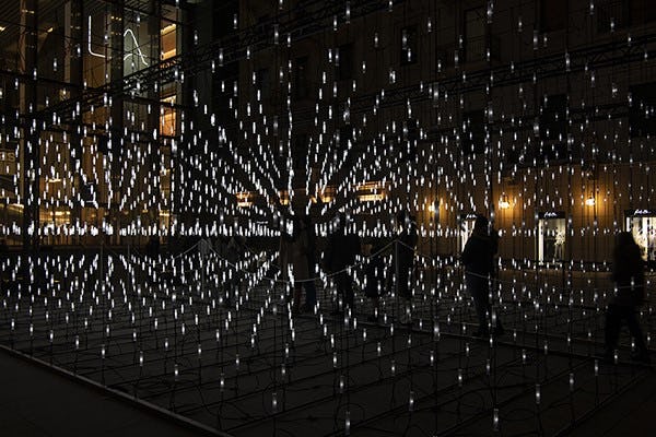 Daan Roosegaarde raakte geïnspireerd door het magische licht van vuurvliegjes en de wens om de traditie van vuurwerk te moderniseren. Het resultaat is SPARK Bilbao, een poëtische voorstelling van duizenden, biologisch afbreekbare licht sparks die organisch door de lucht zweven.