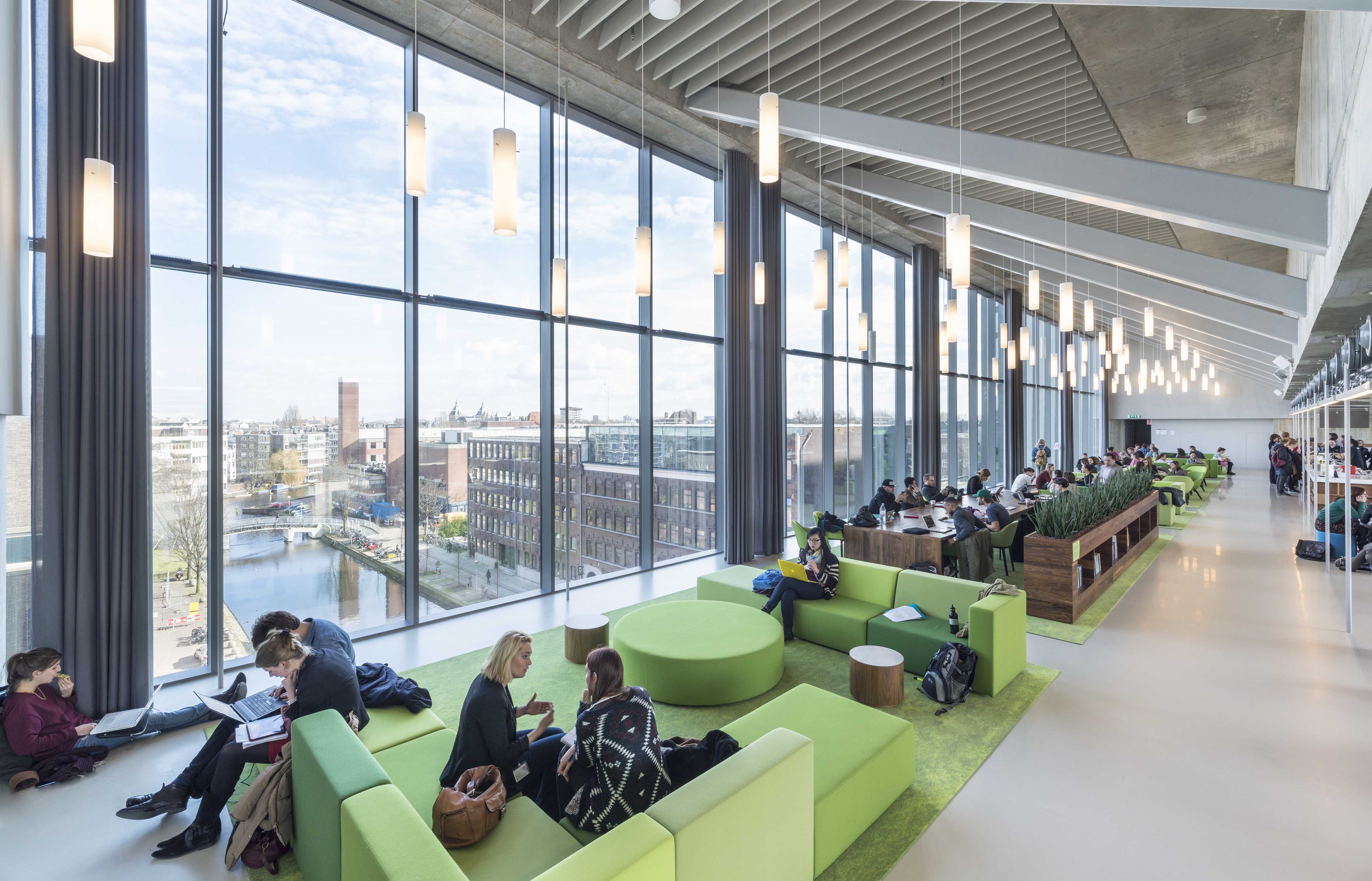 Interieur BRUG restaurant voor de UvA door PUUR interieurarchitecten