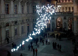 Lichtsculptuur 'Bourrasque' in Lyon