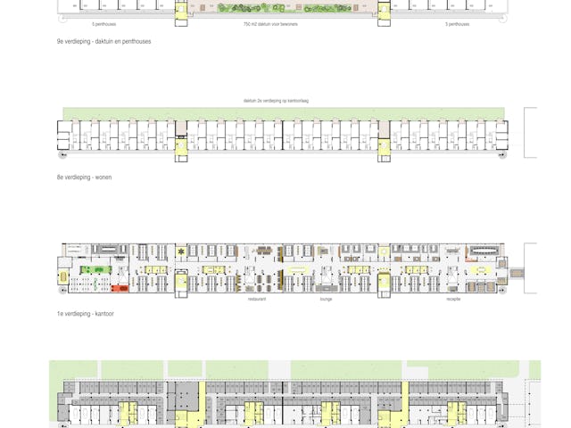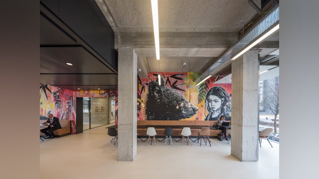 In het centraal gelegen restaurant bracht het Nederlands kunstenaarsduo Pipsqueak was here!!! een grote muurschildering aan die goed past bij de stoer-nonchalante sfeer van het gebouw. De samenhang in opwaardering van het flatgebouw en interieurontwerp zorgen voor een toekomstbestendige nieuwe kwaliteit voor dit bestaande woon- werkgebouw.