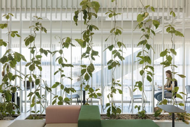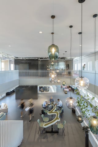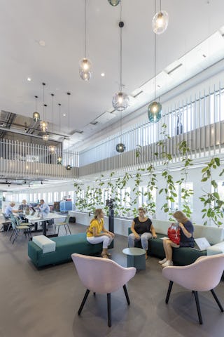Door het spelen met de positionering van diverse gedeelde functies en individuele plekken is in het gebouw een interessant ‘magnetisch veld’ gecreëerd, Strategisch programmeren en zorgvuldig positioneren zorgt voor verwachte en onverwachte ontmoetingen, zo belangrijk voor innovatie.