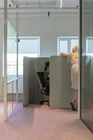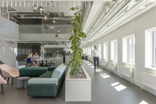 De bedrijvigheid rondom de vides staat in contrast met de rust en privacy op de aangrenzende werkvloeren. Die zijn met verschillende plekken gericht op verschillende vormen van werken, individueel of in kleine teams.