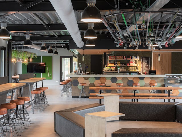 Het gebouw heeft geen gasaansluiting, een cradle to cradle gecertificeerde gevelbekleding van hout en waterloze wc’s. De zonnepanelen op het dak en de warmtepompen zorgen ervoor dat het gebouw meer energie opwekt dan het gebruikt. Het hoofdveld heeft LED verlichting, als binnenkort ook de traditionele verlichting van de overige velden wordt vervangen door LED is de verwachting dat het hele complex energieneutraal wordt.