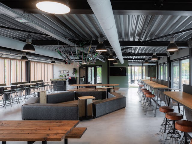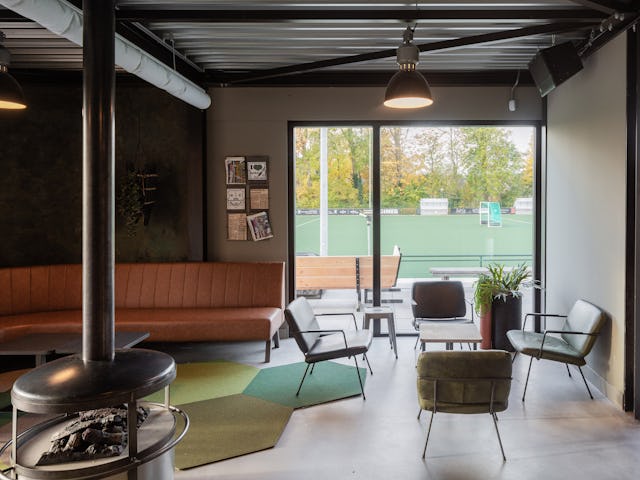 De indeling van het clubhuis is opgedeeld in verschillende plekken die open en dicht gezet kunnen worden al naar gelang het gebruik daar om vraagt. Zo is de indeling flexibel en voor verschillende manieren van gebruik en aantal aanwezige mensen geschikt. Het interieur werd in samenspraak met de leden ontworpen door Karakter Interieurontwerp.