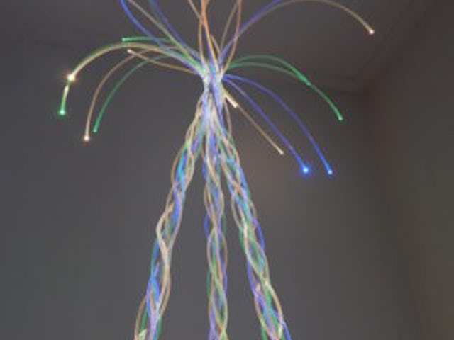 Toelichting door Light fiber art - Nostalgie: als tiener knoopte ik van touw plantenhangers. Nu maak ik hetzelfde, maar dan van licht!