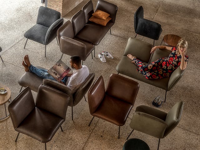 Robert Bronwasser: “Jess vroeg mij om verbreding en vernieuwing. Een totaalpakket van banken, fauteuils, stoelen en tafels, passend bij Jess, maar wel grensverleggend. Een leuke uitdaging! Ik heb me laten inspireren door de pure materialen, die een nonchalance en stoerheid in zich hebben. Daar heb ik mijn signature aan toegevoegd: vriendelijke, afgeronde hoeken, heldere lijnen en een functionele twist. De kern van deze collectie is namelijk dat je op twee manieren op een meubel kunt zitten: zo’n dubbele functie is nooit eerder vertoond. De meubelstukken zijn hierdoor los en in combinatie op verschillende manieren te gebruiken. Dat maakt het leuk voor thuis, maar vooral ook voor hotellobby’s, restaurants en ontvangsthallen. Dat speelse is kenmerkend voor het ontwerp, dat wij de naam Shuffle hebben meegegeven.”