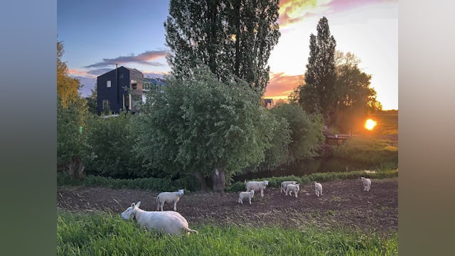 Kortom, de uitbouw vormt een knipoog naar de traditionele schuren en door de vorm gaat het een verbinding aan met zijn natuurlijke en cultuurlijke omgeving. Als een organisme op vier poten kijkt het uit over de voorbijstromende rivier, de flora en de fauna in de uiterwaarden.